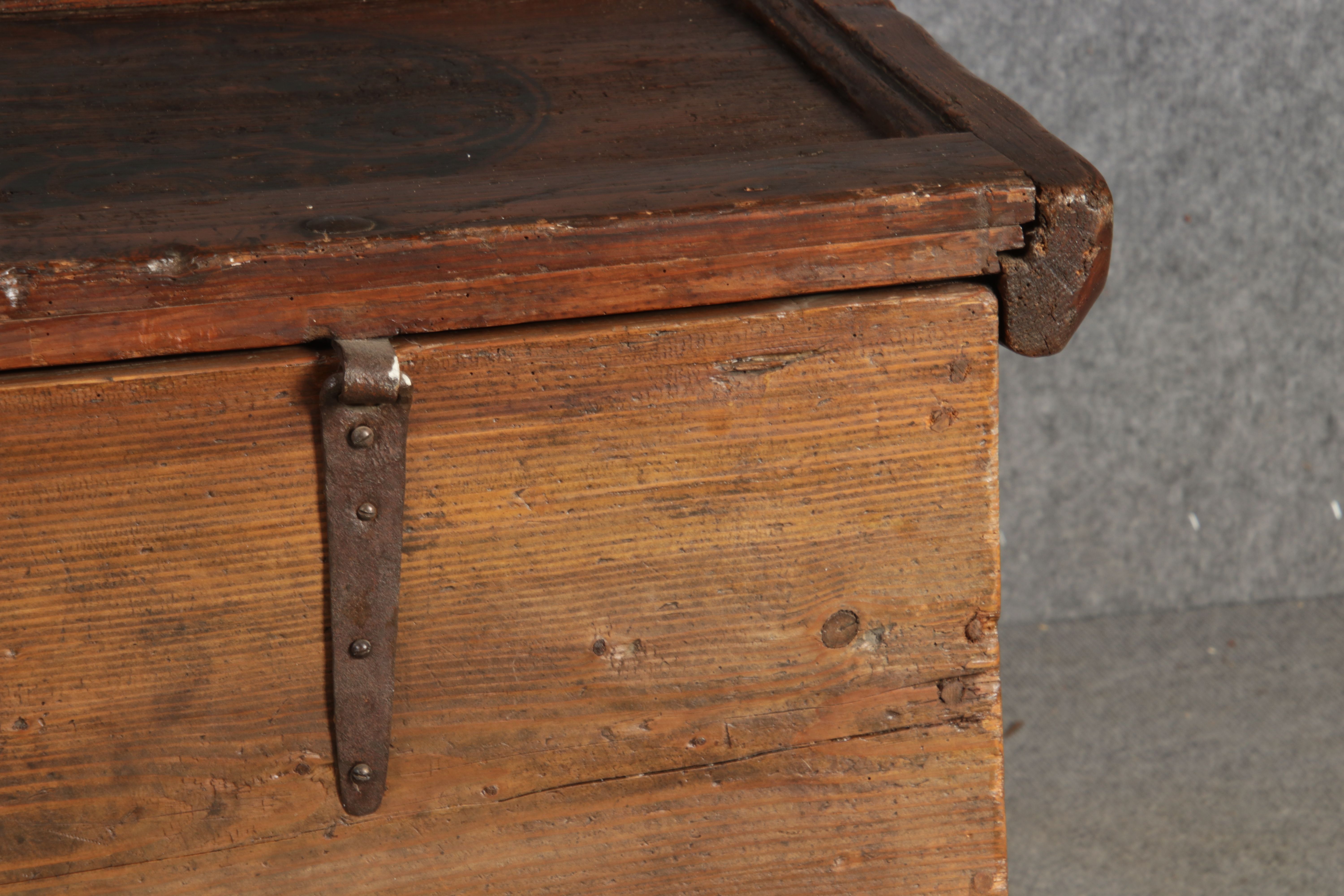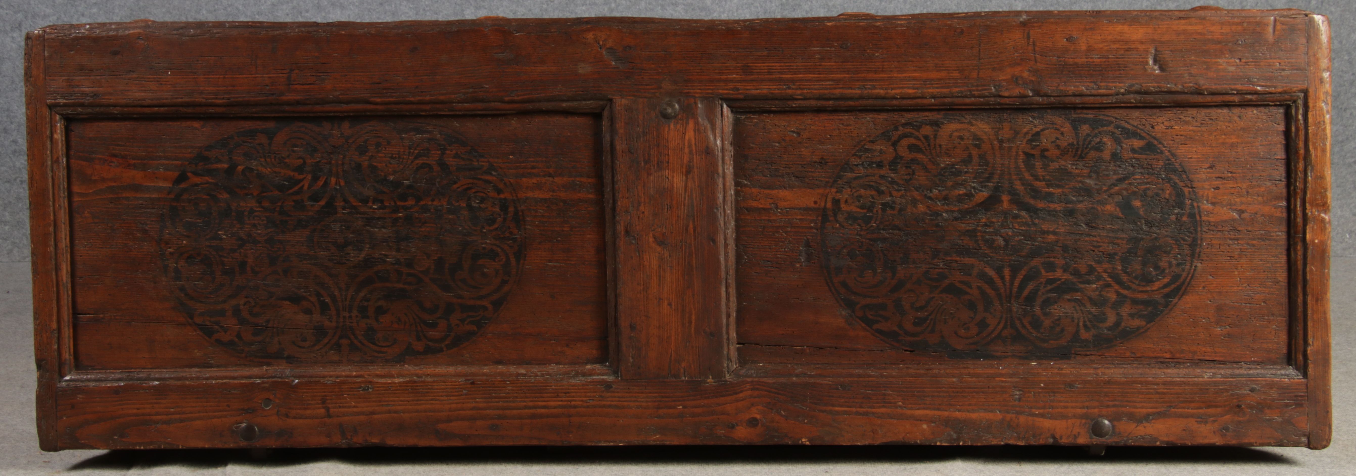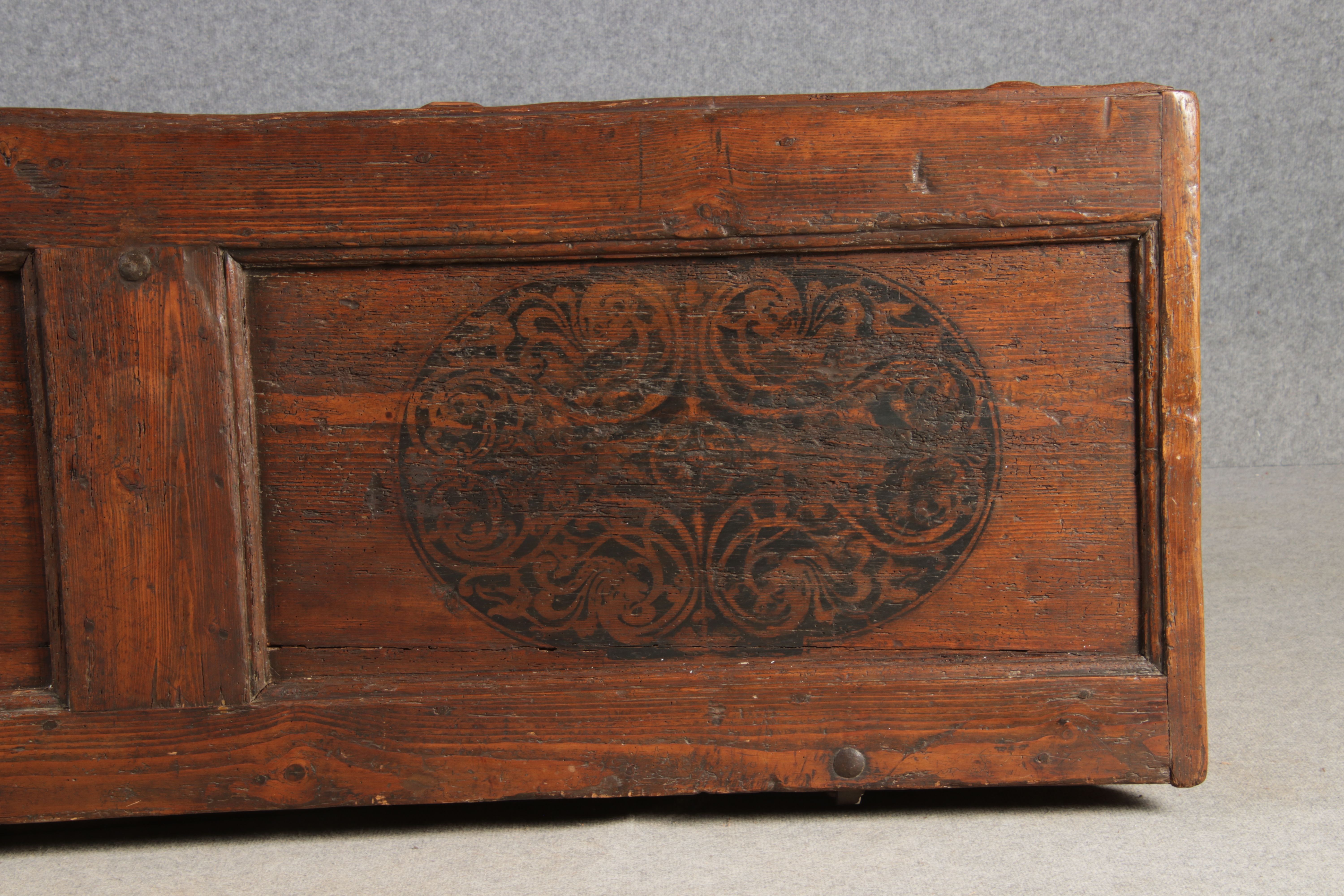 Antike 2 m lange Spät Renaissance früh Barock Truhe 17 Jh. Schwarz Malerei Eisenschloss |