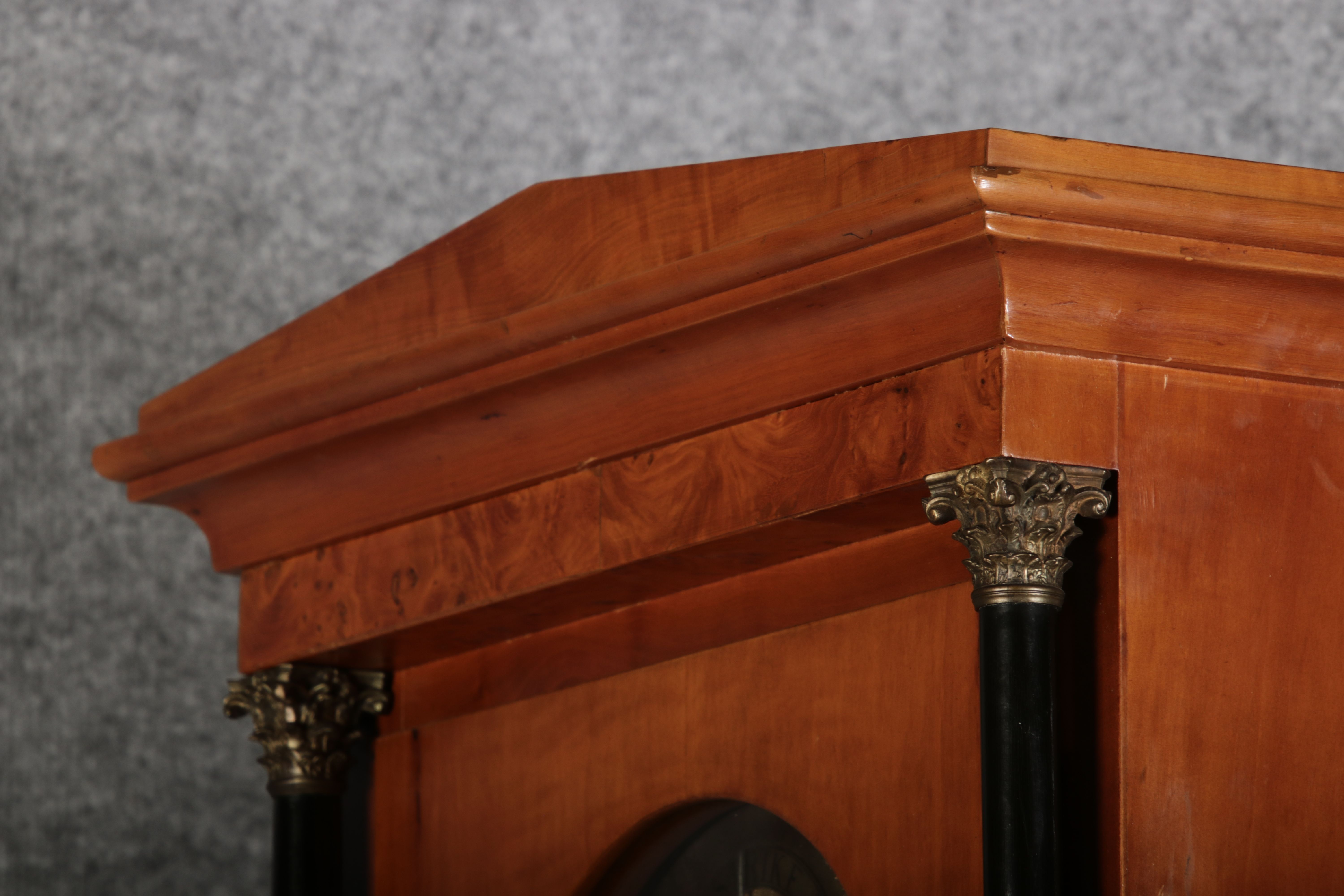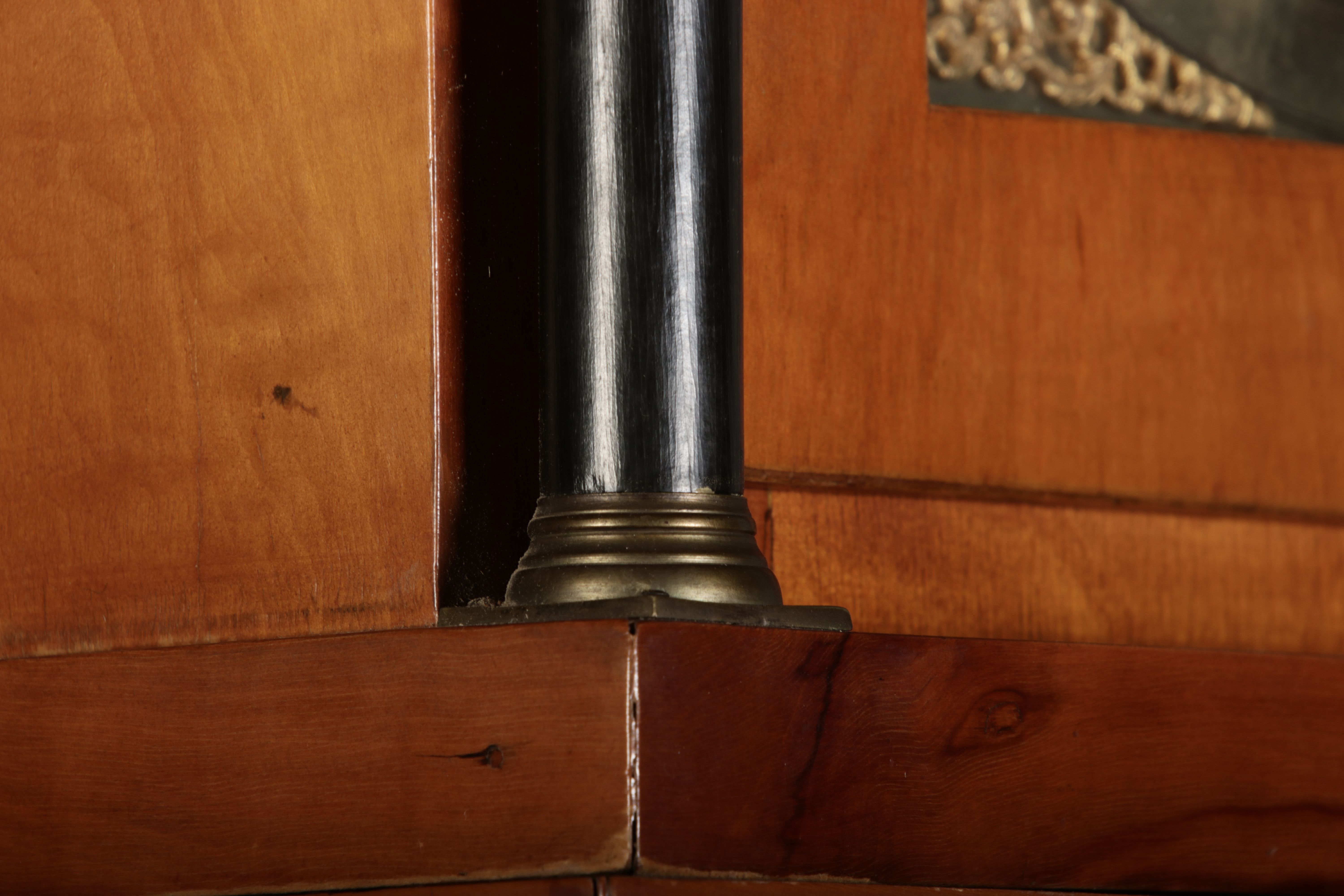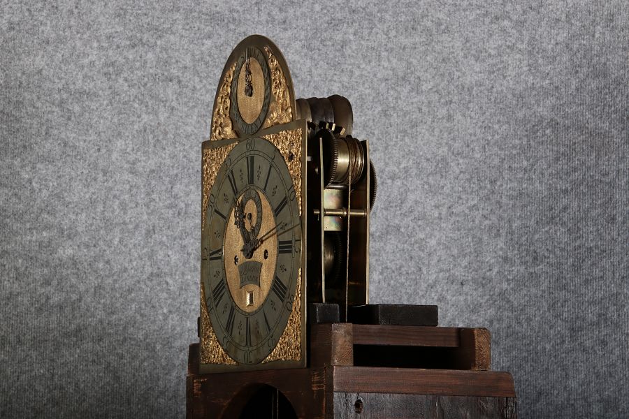 | Für XXL Bild hier klicken43 Antike Standuhr Glockenspiel Kirschbaum Anfang 19 Jh. Diese eindrucksvolle Standuhr mit Glockenspiel aus dem 19 Jh. ist ein hochwertiges antikes Möbelstück, das nicht nur als Zeitmesser, sondern auch als dekoratives Element dient. Sie besteht aus einem eleganten Holzgehäuse mit warmem, natürlichem Finish, das ihre klassische Optik unterstreicht. Der schlichte, geradlinige Korpus und das hohe Gehäuse verleihen der Uhr eine imposante Prämie. Zusätzlich zur optischen und klanglichen Schönheit bietet diese Standuhr einen faszinierenden Einblick in die traditionelle Uhrmacherkunst. Der mechanische Antrieb, sichtbar im Detail der Zahnräder und des Seilzugs, ist ein Meisterwerk der Präzision, das eine gleichmäßige und zuverlässige Zeitanzeige gewährleistet. Das Uhrwerk muss regelmäßig per Hand aufgezogen werden, was den Besitzer an die Sorgfalt und Hingabe erinnert, die mit einem solchen historischen Uhr verbunden ist. Das Uhrwerk zeigt die präzise Handwerkskunst und technische Raffinesse einer mechanischen Uhr, die über ein integriertes Glockenspiel, einen Sekundenzeiger und eine Datumsanzeige verfügt. Es handelt sich um ein massives Uhrwerk aus Messing, das für seine Langlebigkeit und Zuverlässigkeit bekannt ist. Die Kombination aus diesen Funktionen macht dieses Uhrwerk zu einem komplexen und wertvollen Stück, das weit über eine einfache Zeitmessung hinausgeht. |