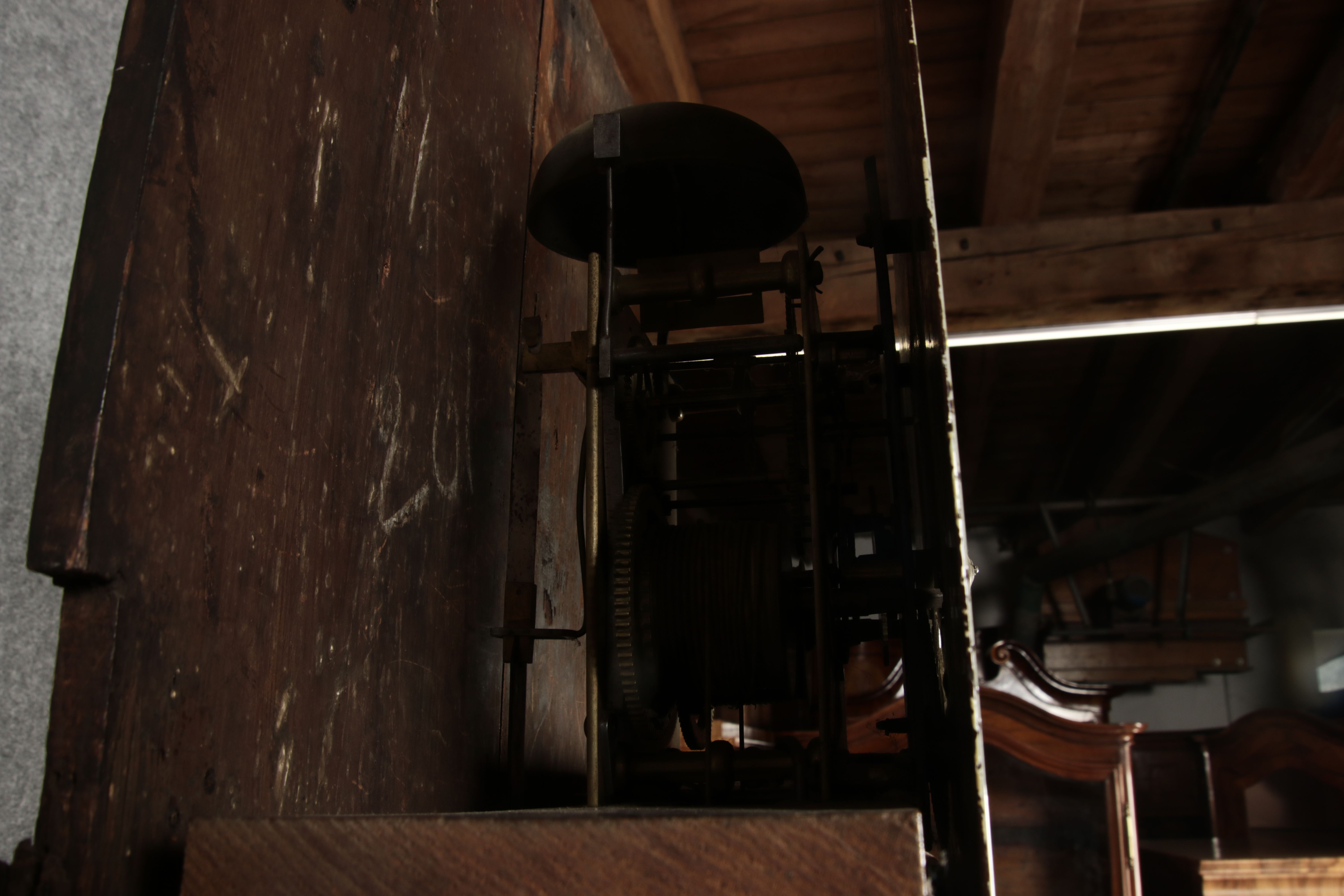 Für XXL Bild hier klicken1 Uhren Spezifikationen Art der Uhr Standuhr mit Glocken Alter Wahrscheinlich um 1850 Gehäuse Material Mahagoni Eiche Bandintarsien Masse Höhe ca. 225 cm, Breite ca. 50 cm, Tiefe ca. 25 cm Material Uhrwerk Messing Eisen Aufhängung und Gewichte Pendelfeder mit zwei Gewichten Hemmung Ankerhemmung Stundenschlag auf Glocke Komplikationen Sekundenzeiger Datum Zustand Gehäuse Guter Zustand mit Gebrauchsspuren, teilweise ergänzt, beschädigt, mit Fehlstellen, Schwundrissen, alt restauriert siehe Bilder. Bilder sind Bestandteil der Auktion. Zustand Uhrwerk Guter Zustand mit Gebrauchsspuren. Uhrwerk läuft an und ist nicht geprüft auf Funktion, keine Garantie das die Uhr läuft. Kann aber gerne von meinem Uhrmacher überholt werden. Preis und dauer der Überholung auf Anfrage. Bilder sind Bestandteil der Auktion. |