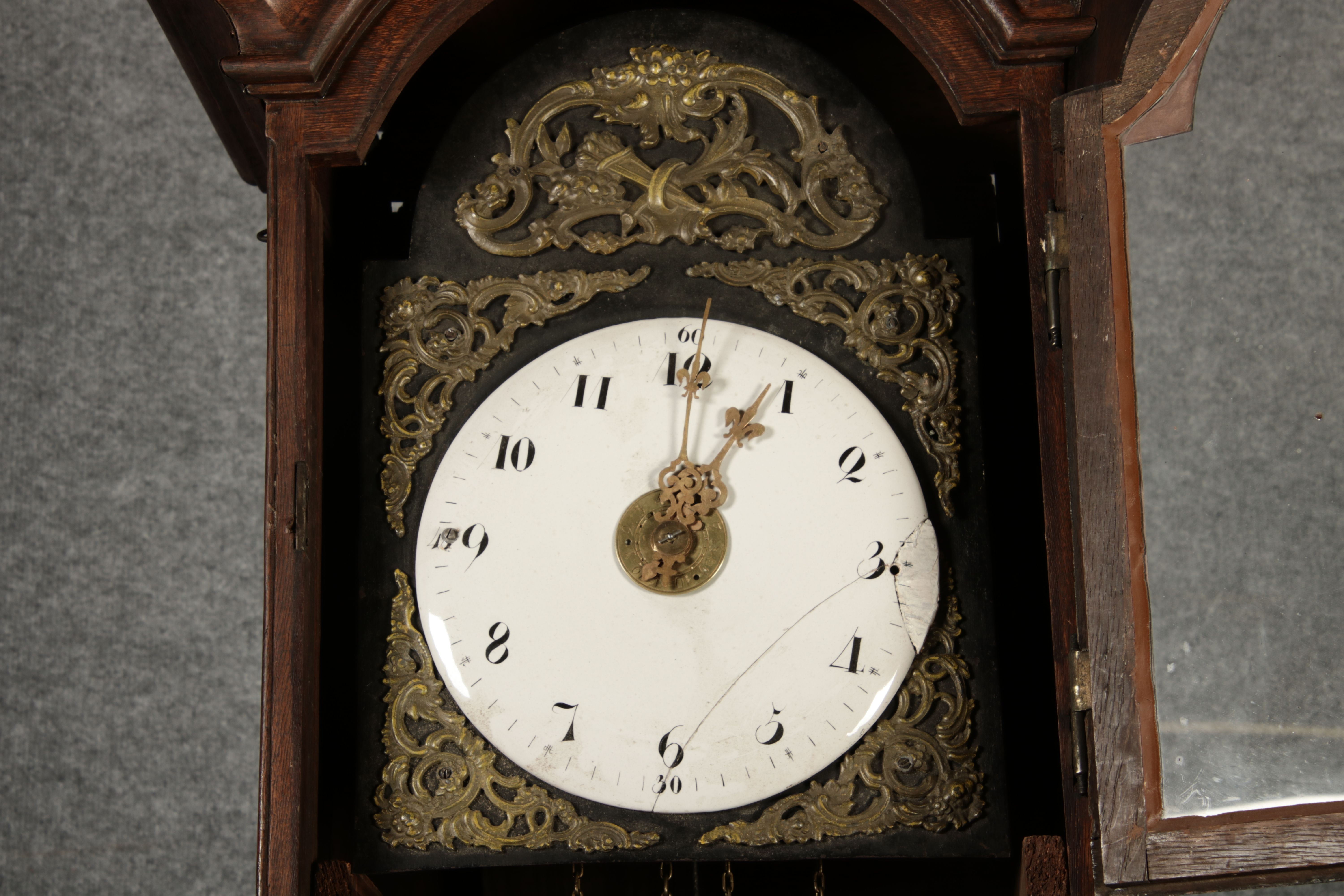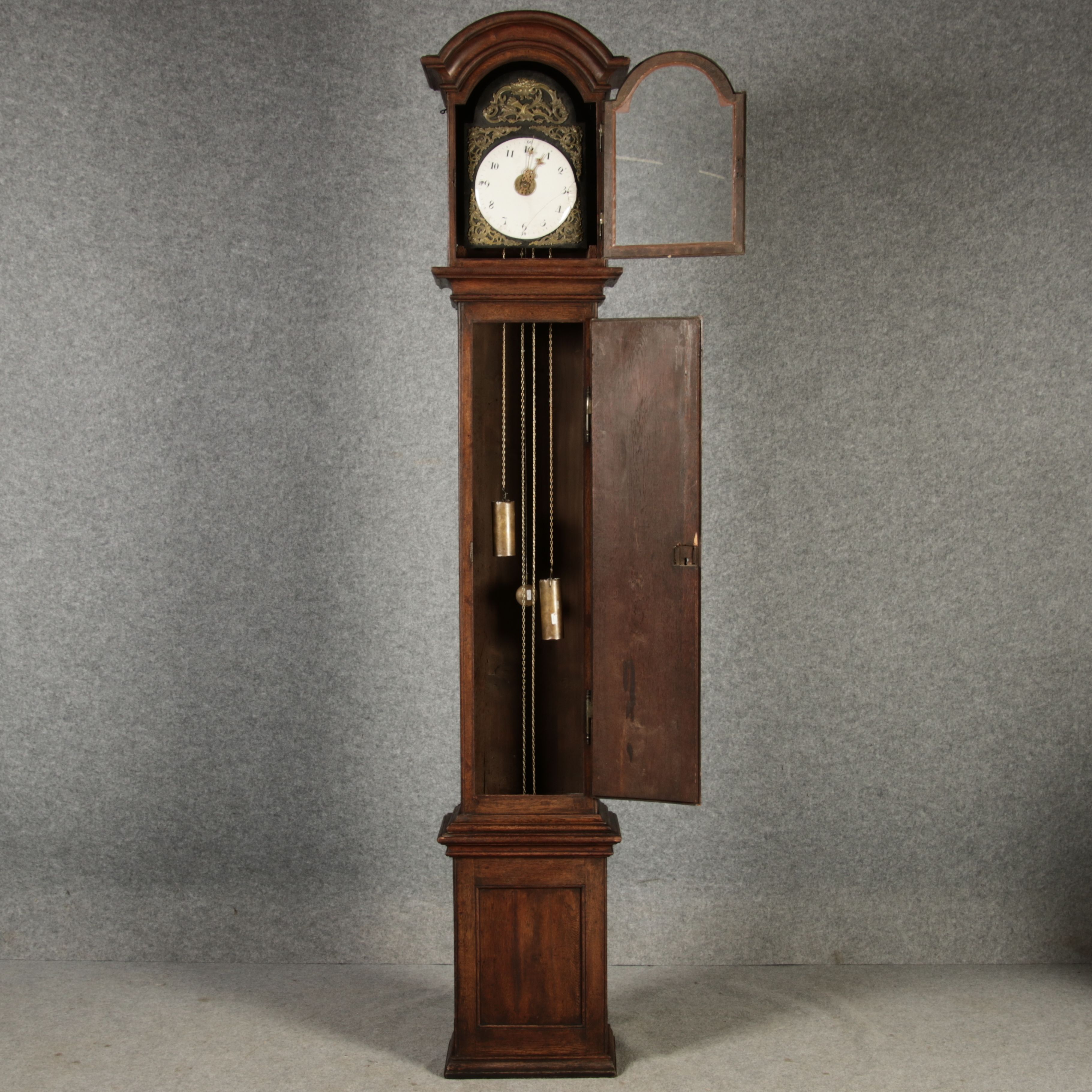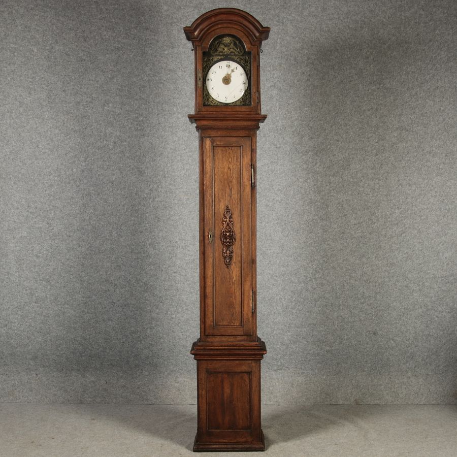 | Antiker sehr große 263 cm hohe Barock Standuhr Eiche 18 Jh. |
