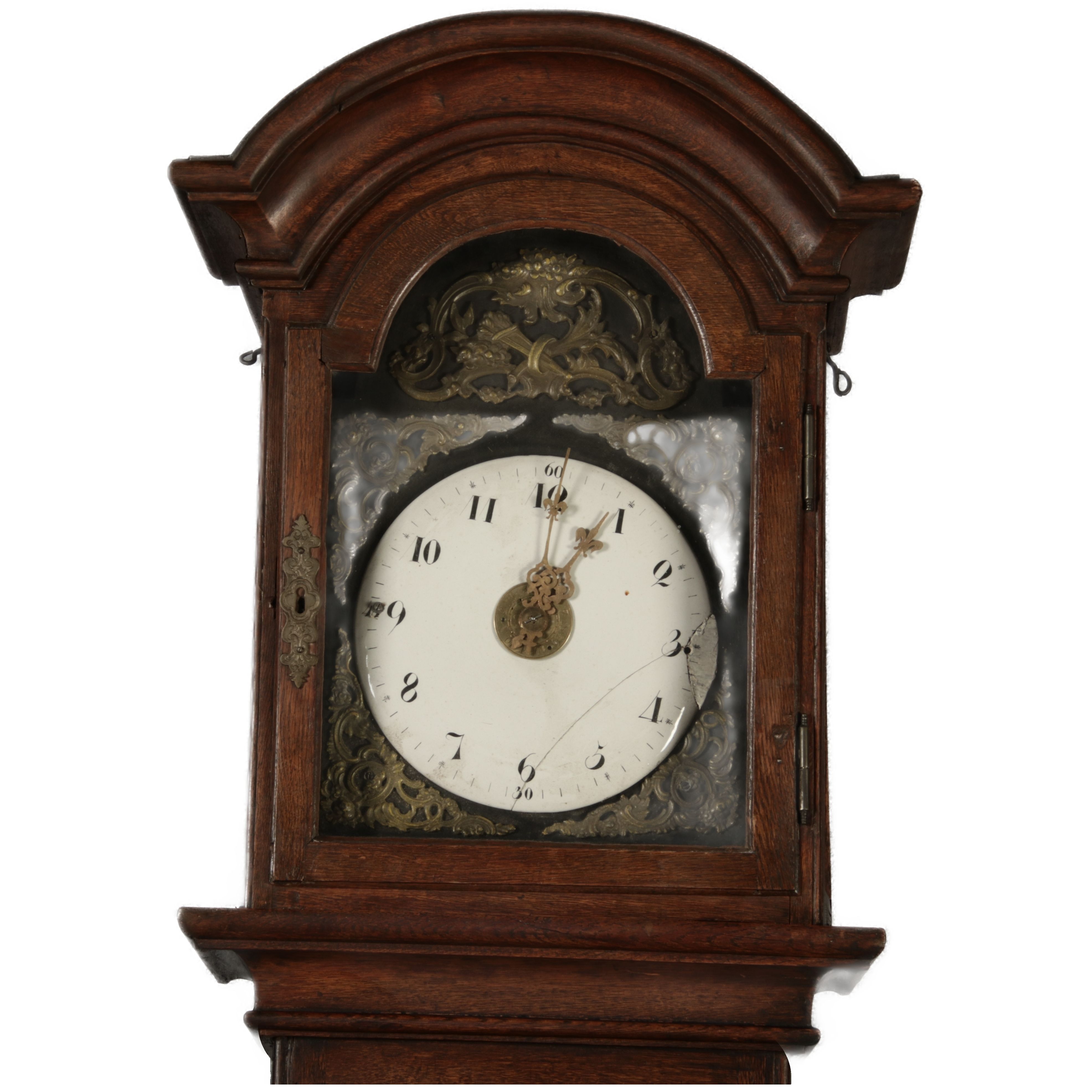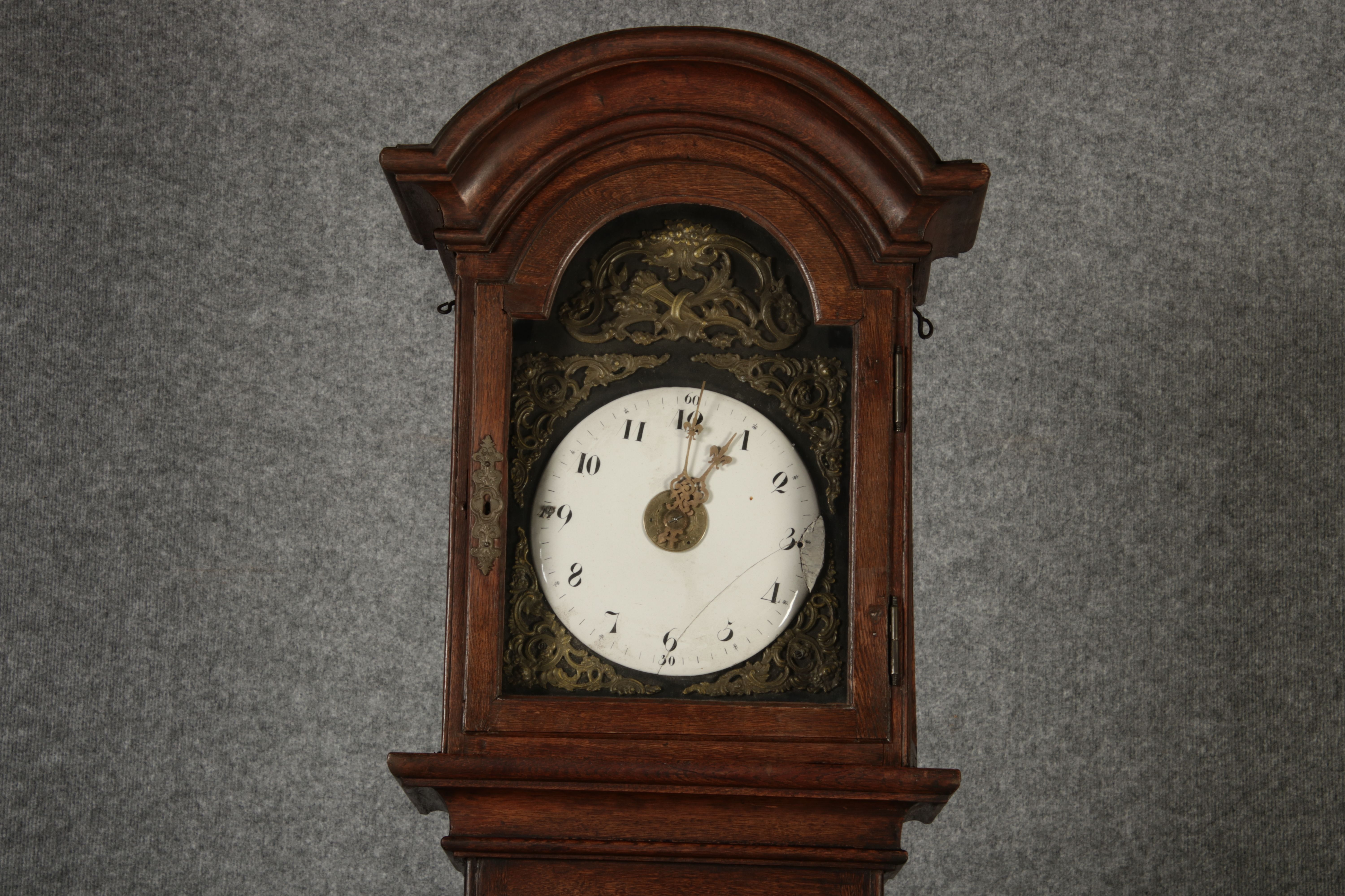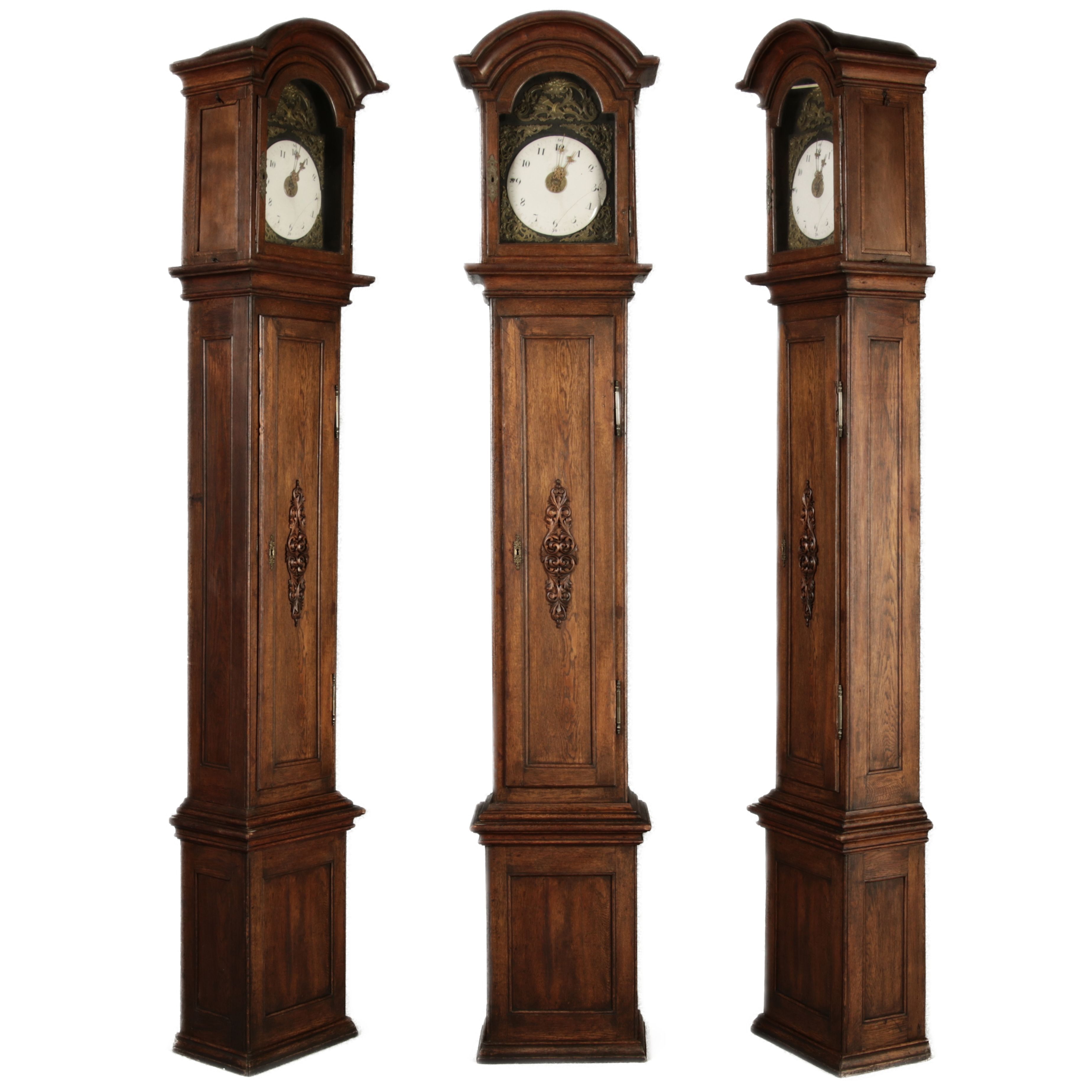 | Antiker sehr große 263 cm hohe Barock Standuhr Eiche 18 Jh. |