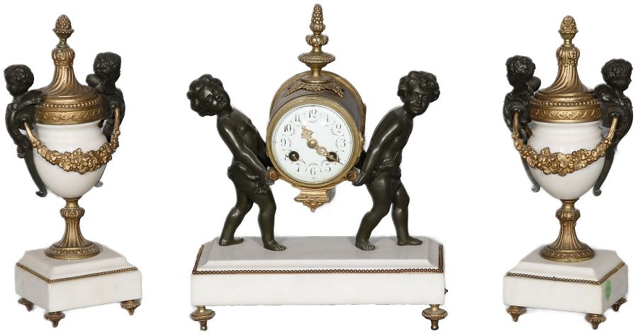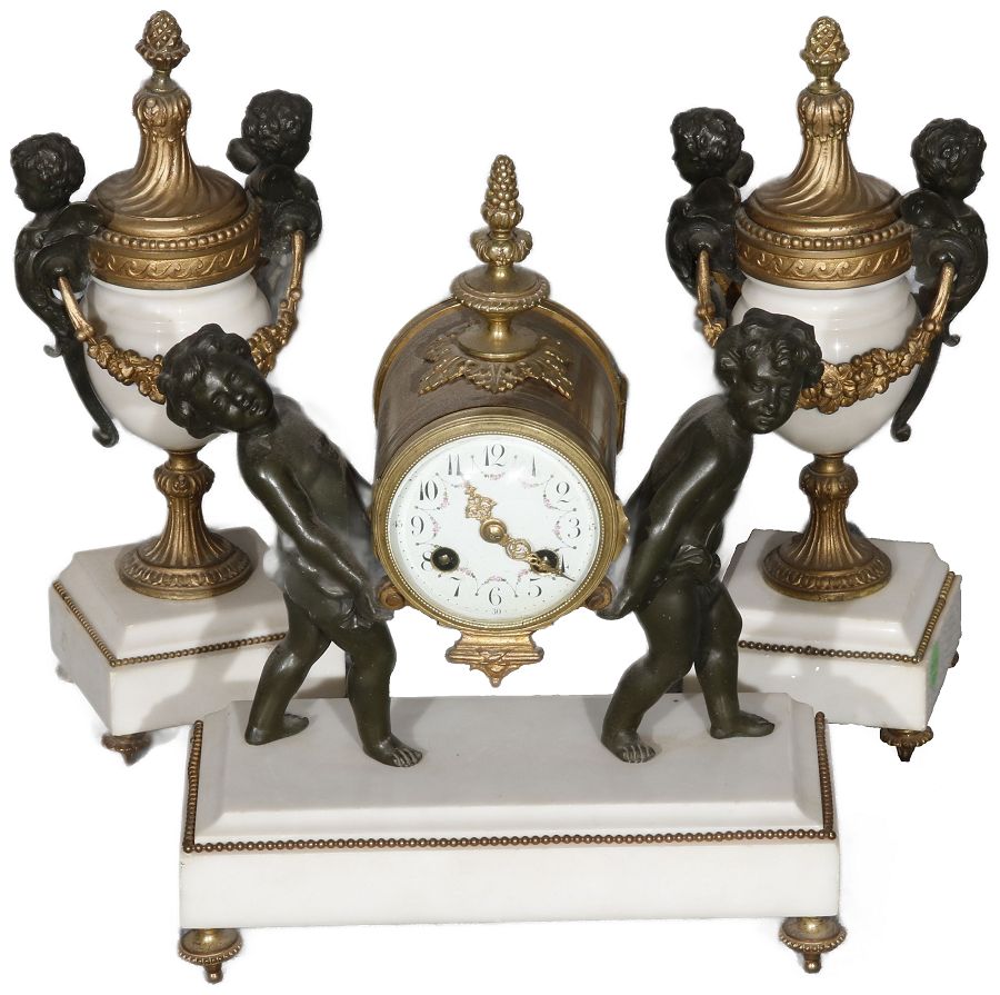 Werk Japy Frères & Cie., Medaille d’Honneur, mit zwei Ziervasen, Marmor