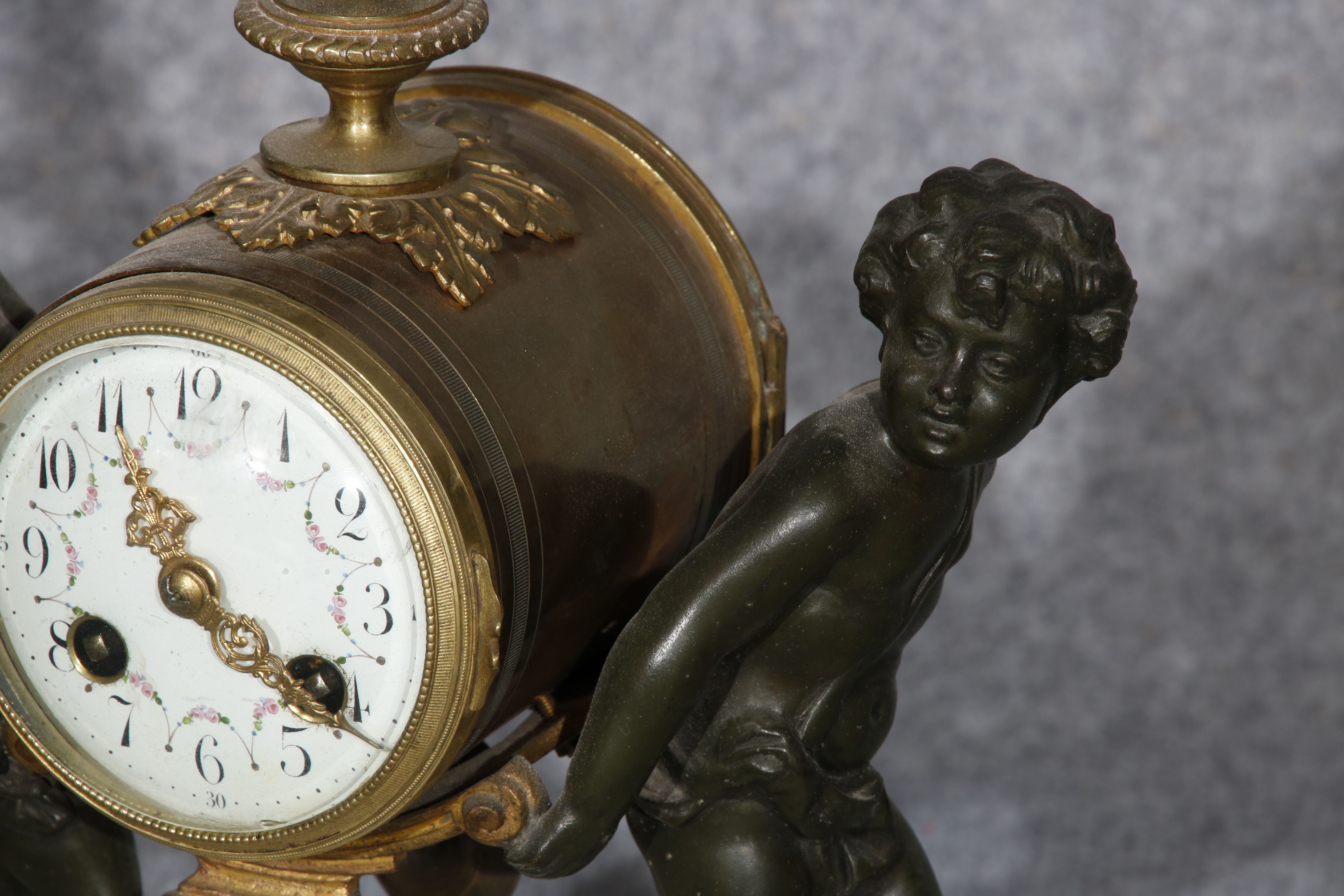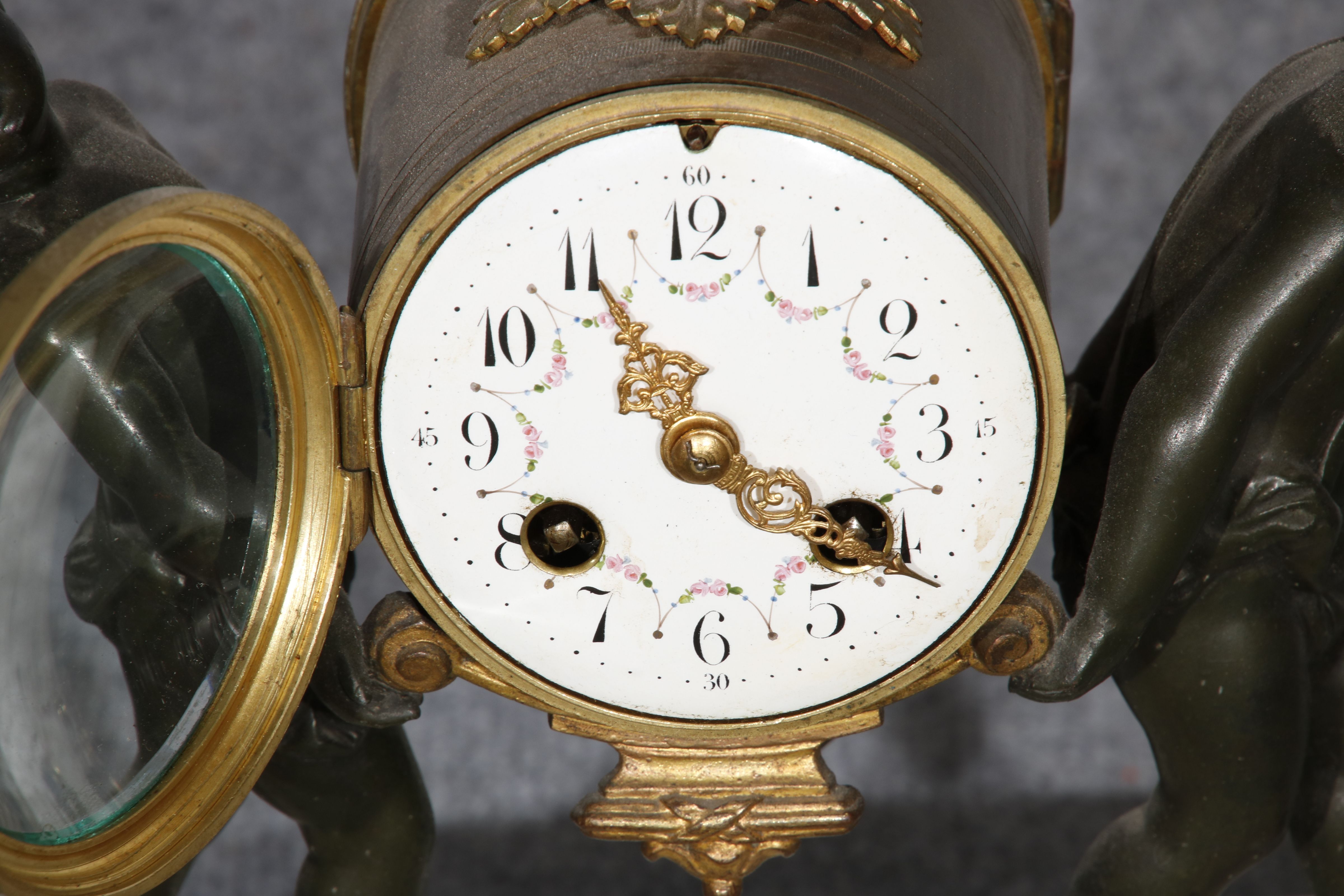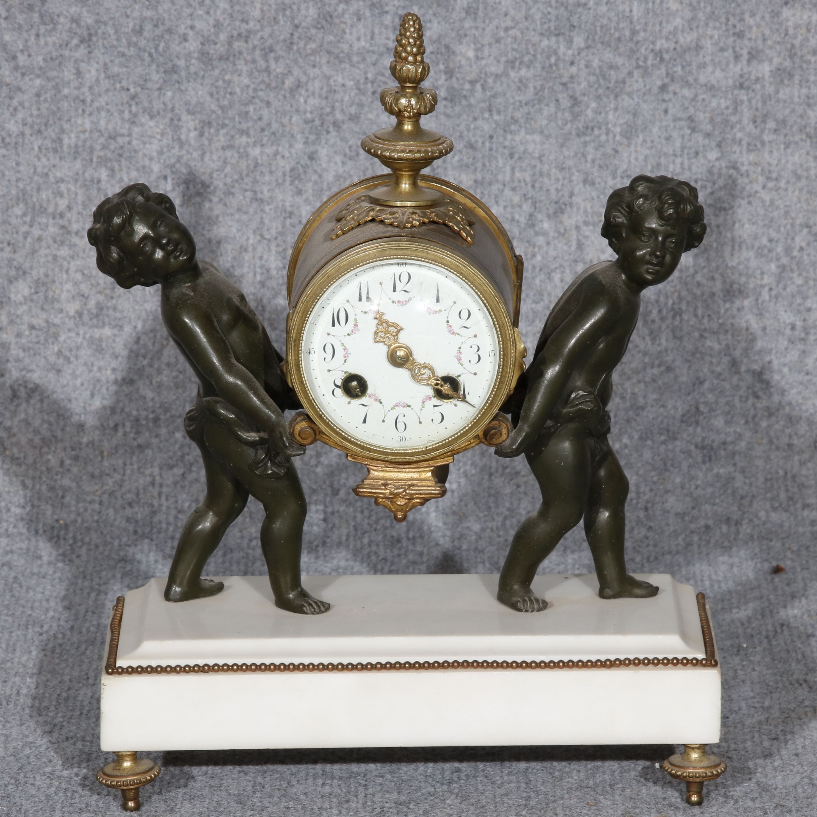 Für XXL Bild hier klicken1 Uhren Spezifikationen Art der Uhr Kamin- Uhr Tisch- Uhr mit Beistellern Alter und Herkunft Alter Wahrscheinlich Mitte 19 Jh. und die Herkunft ist wahrscheinlich Frankreich Gehäuse Material Messing Bronze Mamor Masse Uhr Höhe ca. 33 cm, Breite ca. 26 cm Masse Beisteller Höhe ca. 31 cm, Breite ca. 13 cm Material Uhrwerk Messing Eisen Pendel- Aufhängung Pendelfeder Hemmung Ankerhemmung Schlagwerk 1/2 Stunden und volle Stunden Schlag auf Glocke Zustand Gehäuse Guter Zustand mit Gebrauchsspuren, Bilder sind Bestandteil der Auktion. Zustand Uhrwerk Guter Zustand mit Gebrauchsspuren. Uhrwerk ist vor ca. 3 Jahren überholt worden und läuft einwandfrei. Bilder sind Bestandteil der Auktion. |