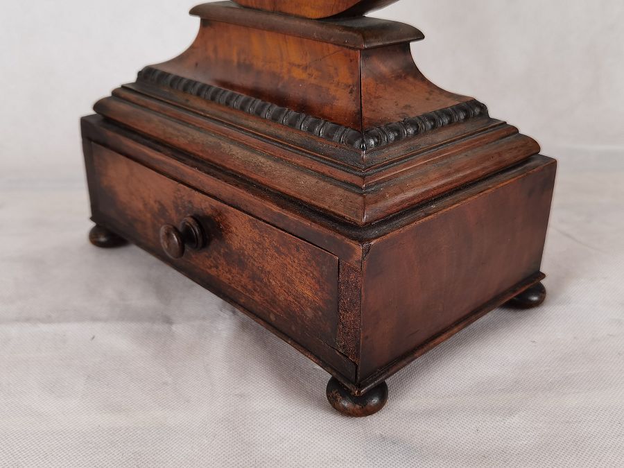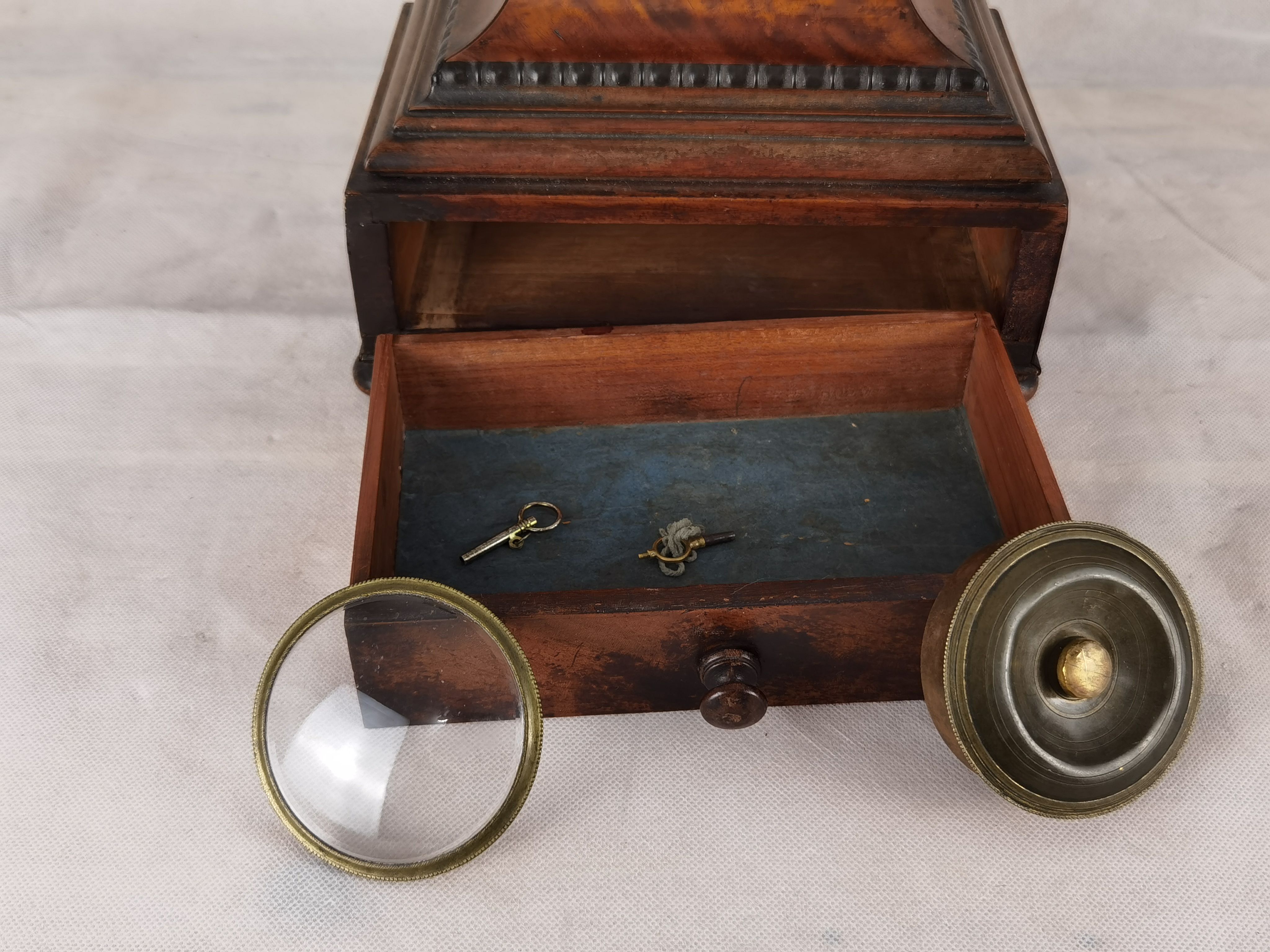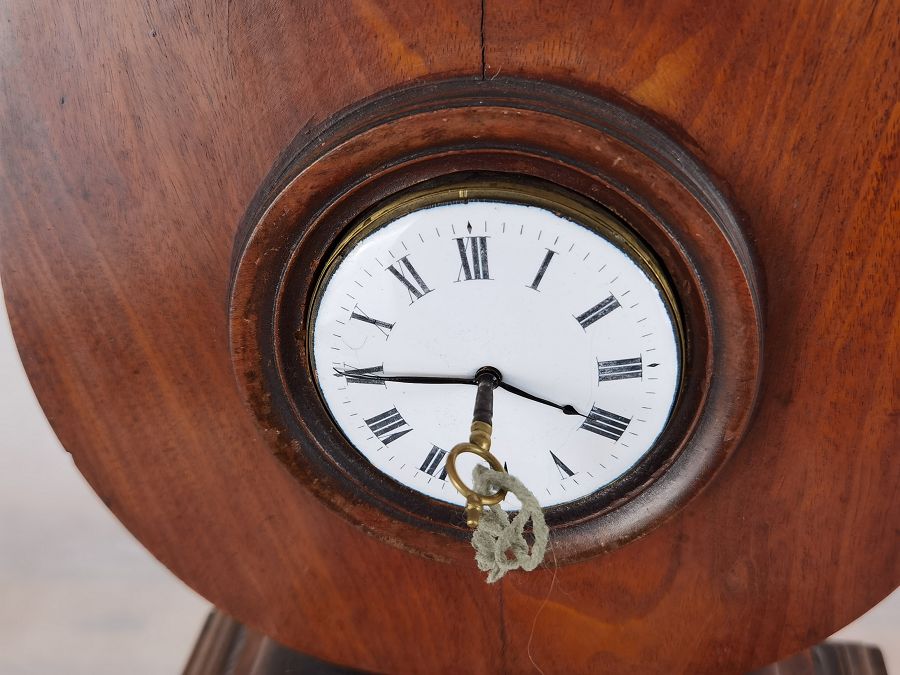 Für XXL Bild hier klicken1 Uhren Spezifikationen Art der Uhr Kaminuhr Tisch- Uhr Alter und Herkunft Alter Wahrscheinlich um 1800, läst sich nicht genau bestimmen und die Herkunft ist England London Gehäuse Material Mahagoni Masse Uhr Höhe ca. 52 cm, Breite ca. 24,5 cm, Tiefe ca. 15,5 cm Zustand Gehäuse Guter Zustand mit Gebrauchsspuren, teilweise ergänzt, beschädigt, mit Fehlstellen, Schwundrissen, alt restauriert siehe Bilder. Bilder sind Bestandteil der Auktion. Zustand Uhrwerk Guter Zustand mit Gebrauchsspuren. Uhrwerk läuft einwandfrei, 1 Tage Werk. Bilder sind Bestandteil der Auktion. |