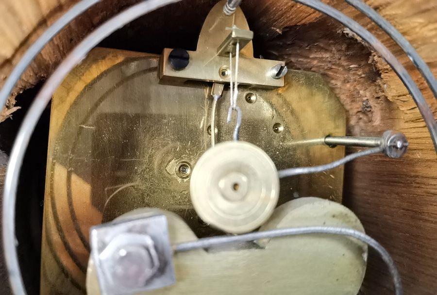 Blumenkörbchen auf dem Gehäuse. Das Uhrwerk hat Fadenaufhängung. |