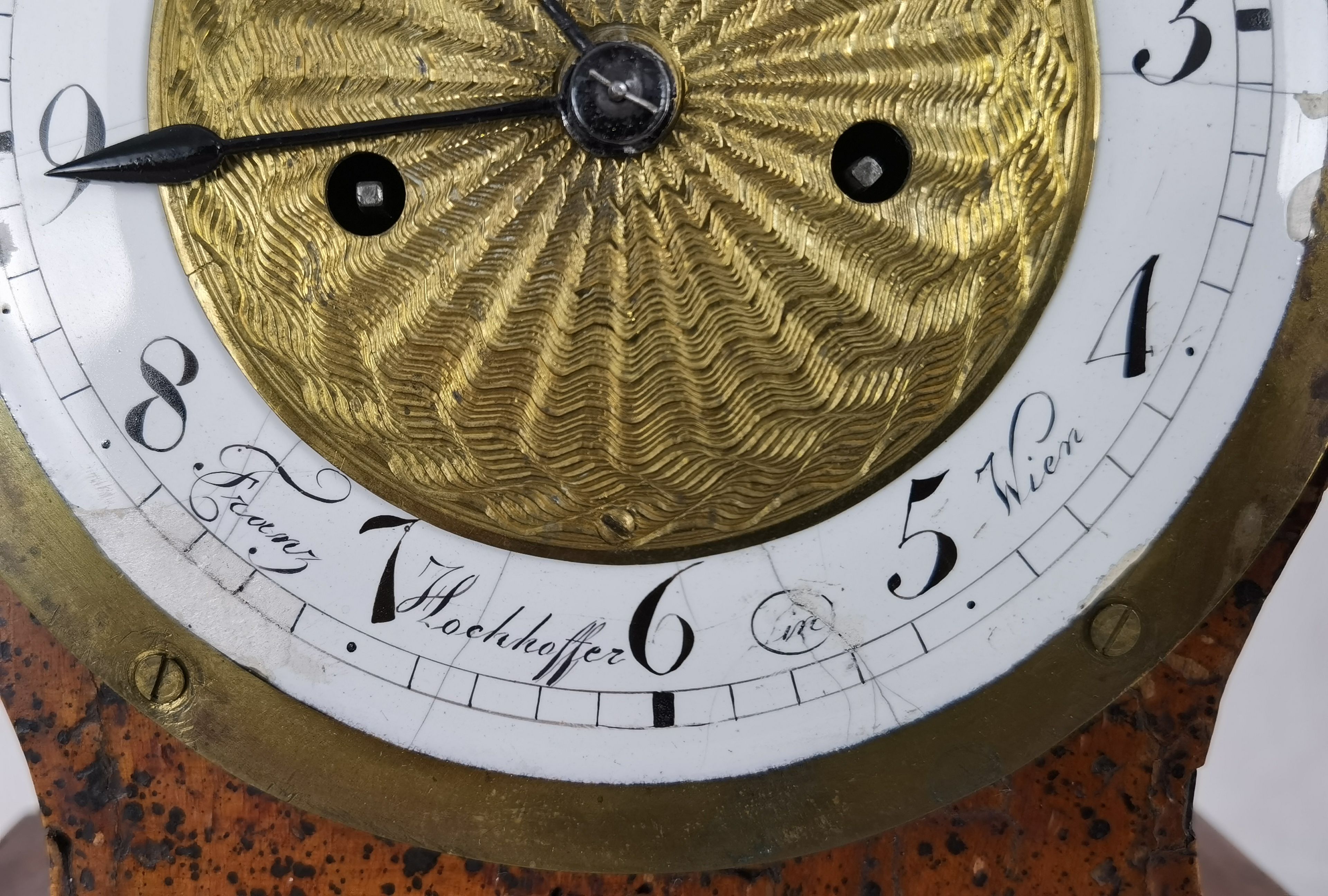 Antike Uhr Wien Biedermeier signiert um 1820. Das Ziffernblatt