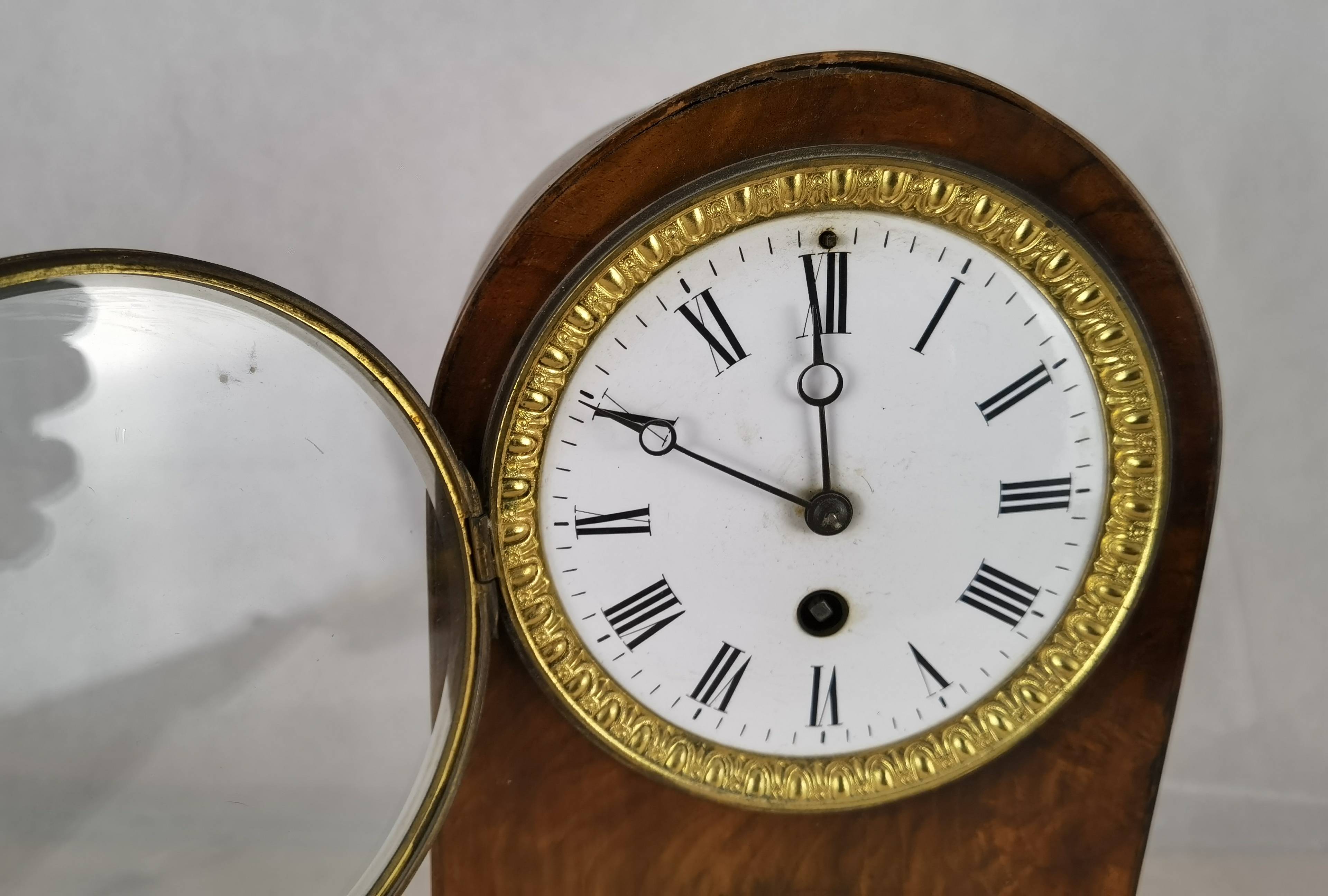 | Antike Pendeluhr Kaminuhr um 1900 Nussbaum |
