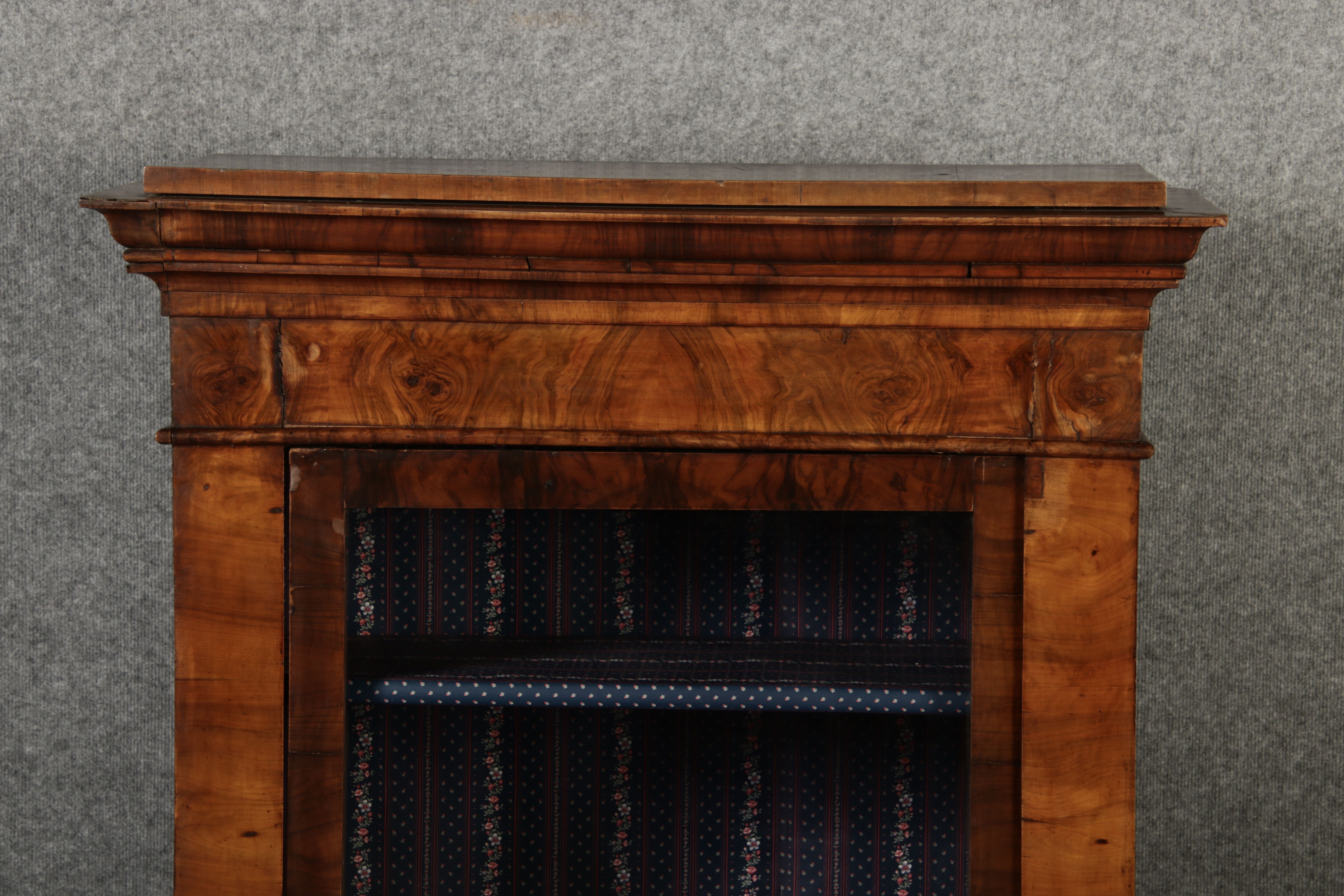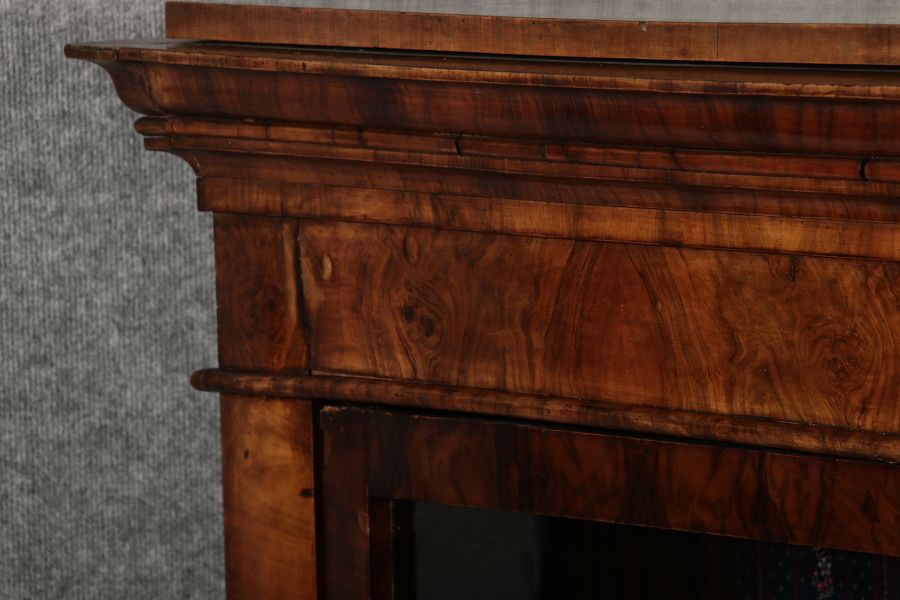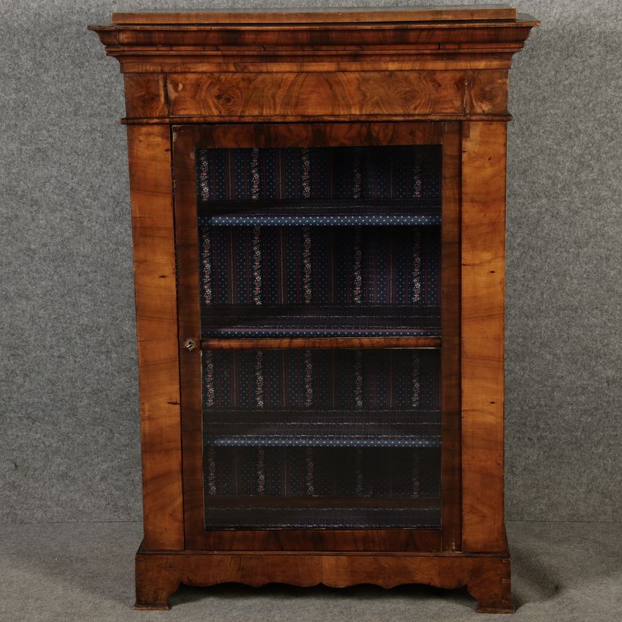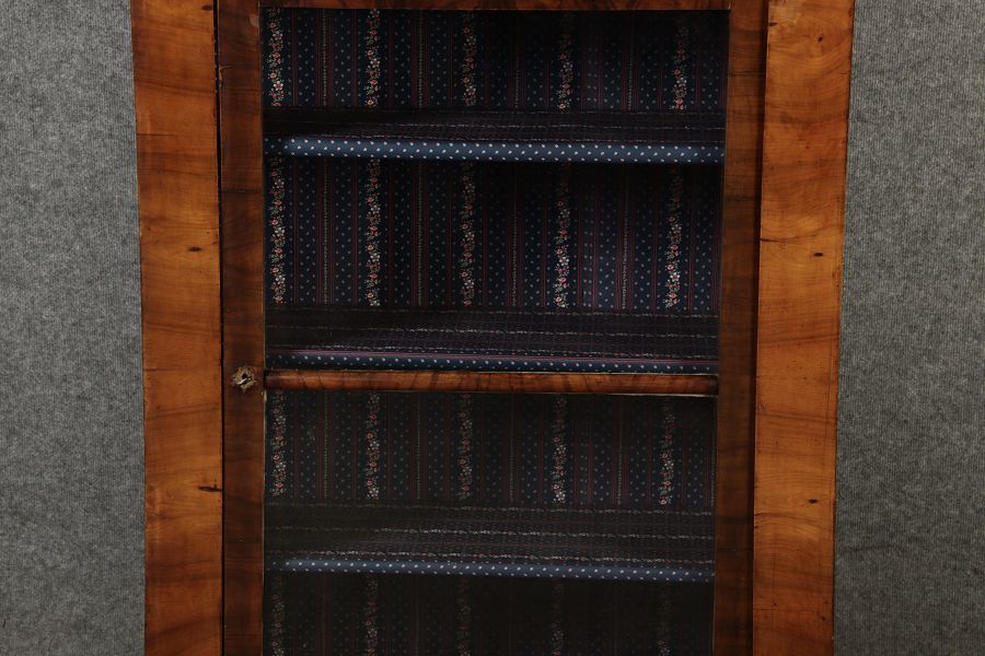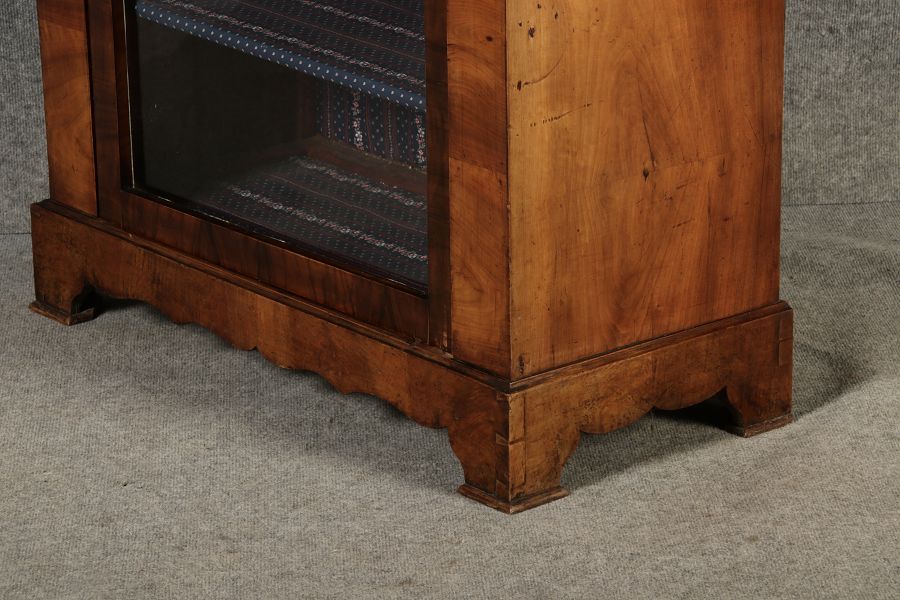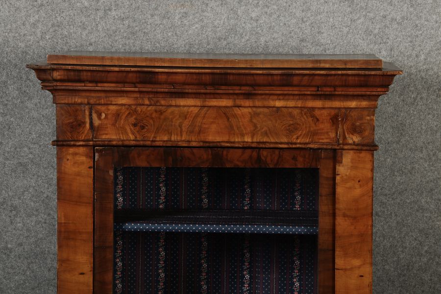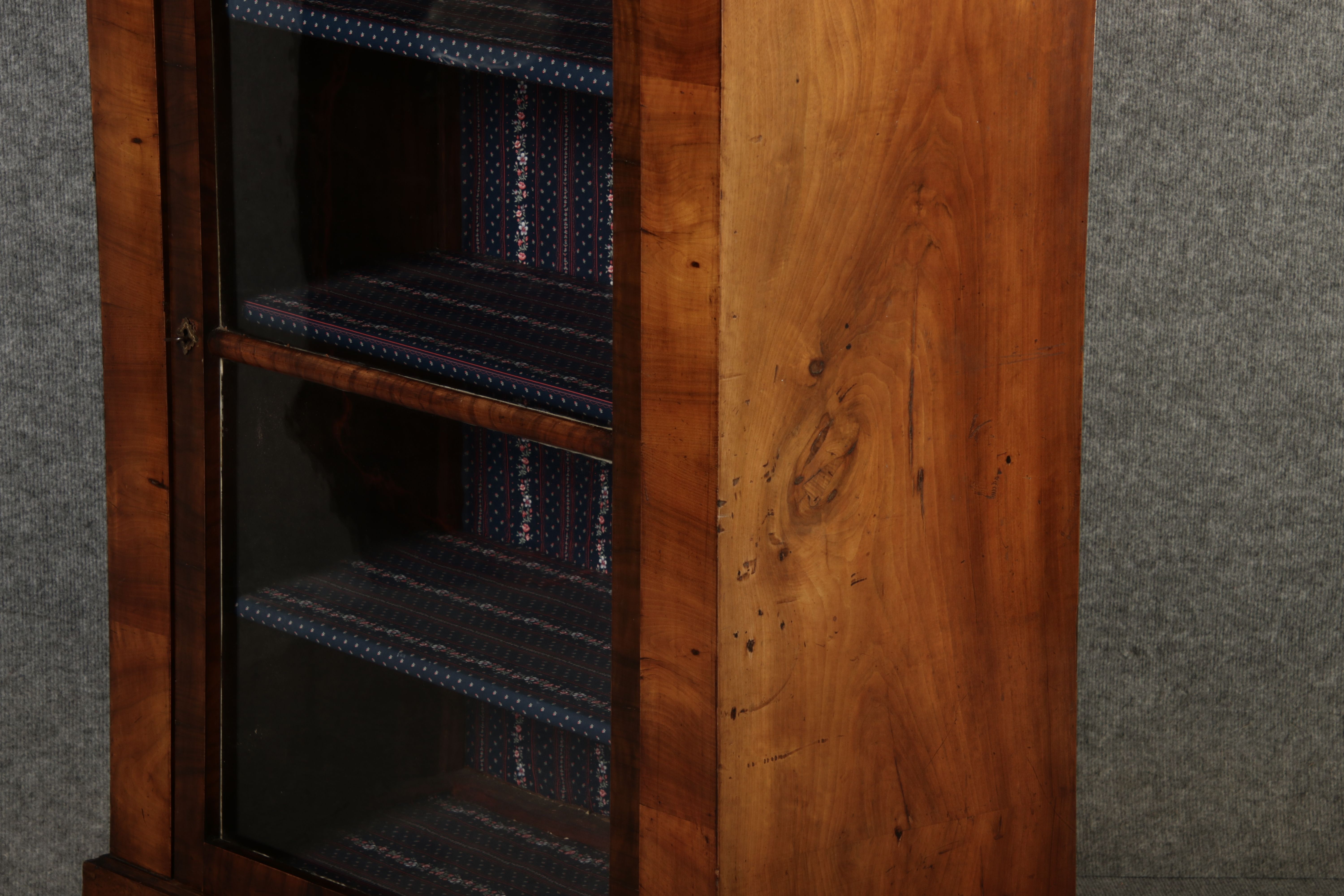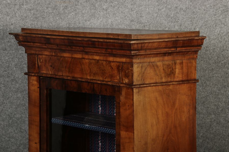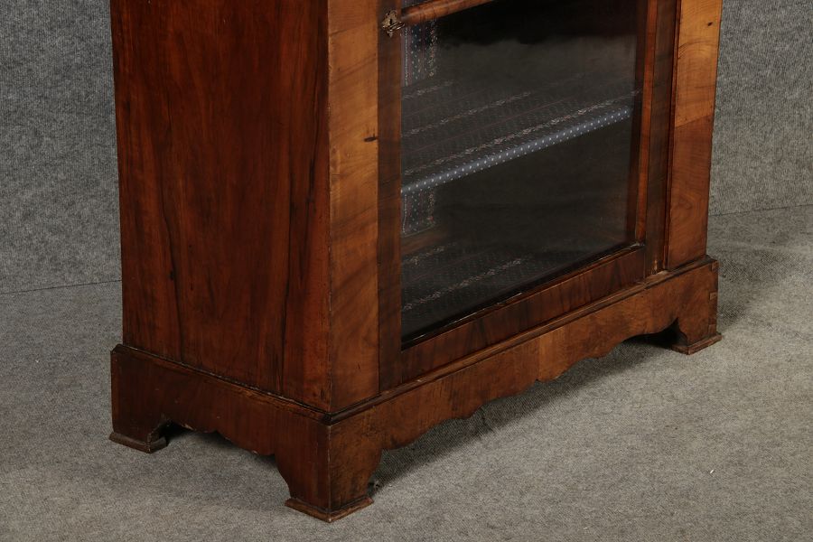 | Antike Kleine 143 cm hohe Biedermeiervitrine um 1830-40 Nussbaum | ||