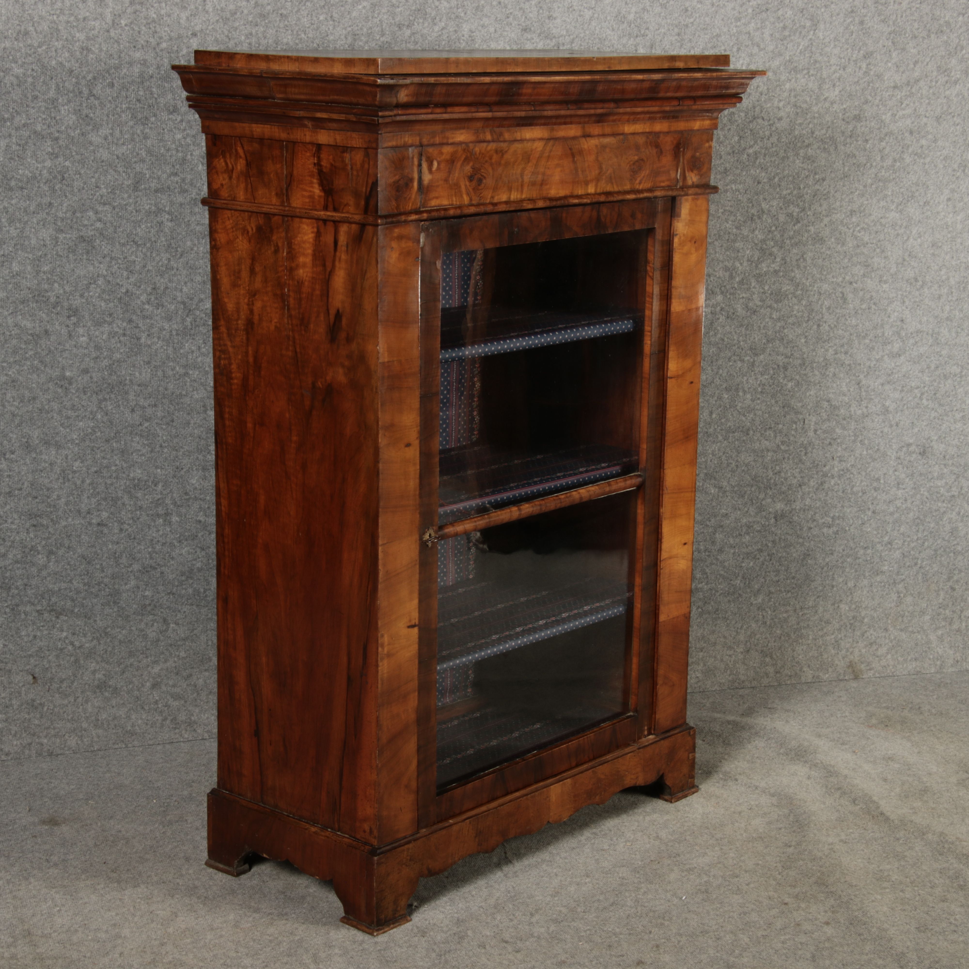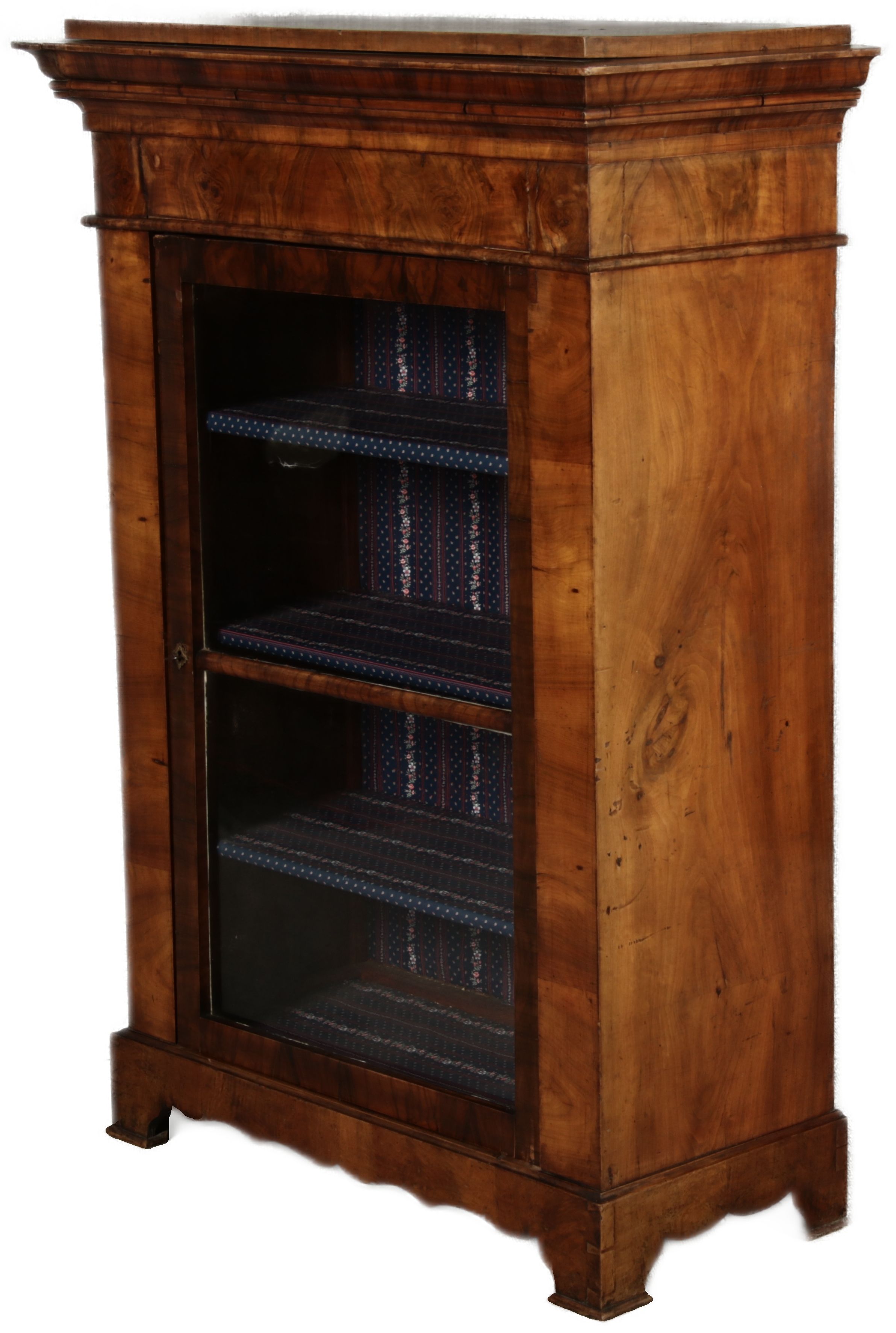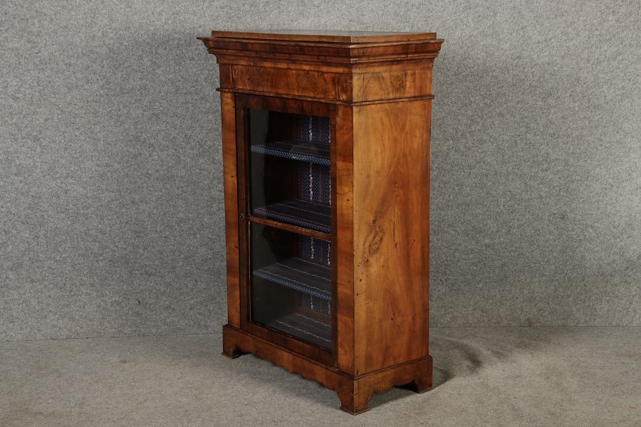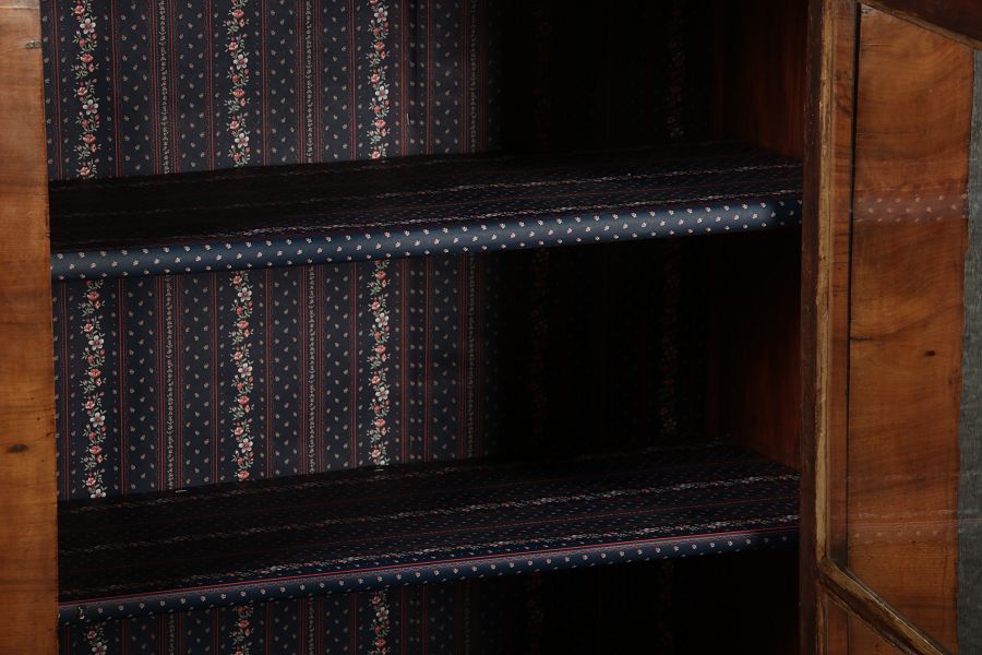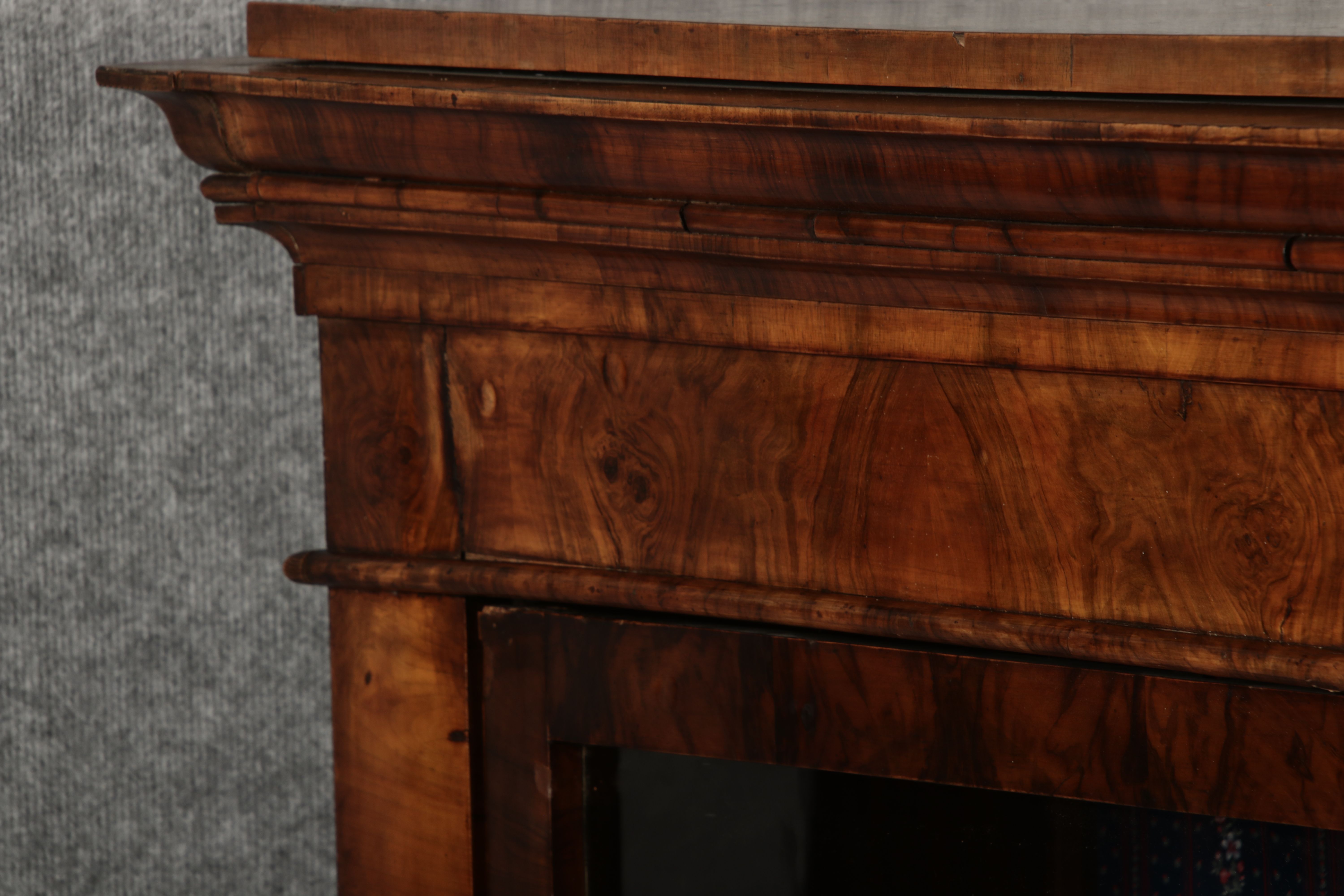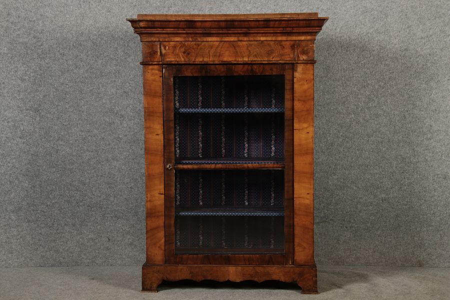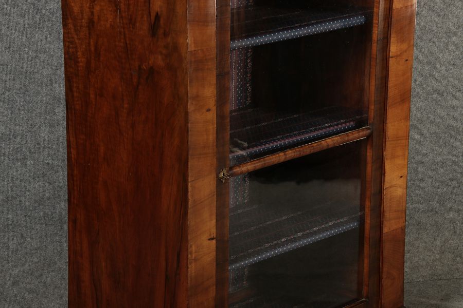 | Antike Kleine 143 cm hohe Biedermeiervitrine um 1830-40 Nussbaum | ||