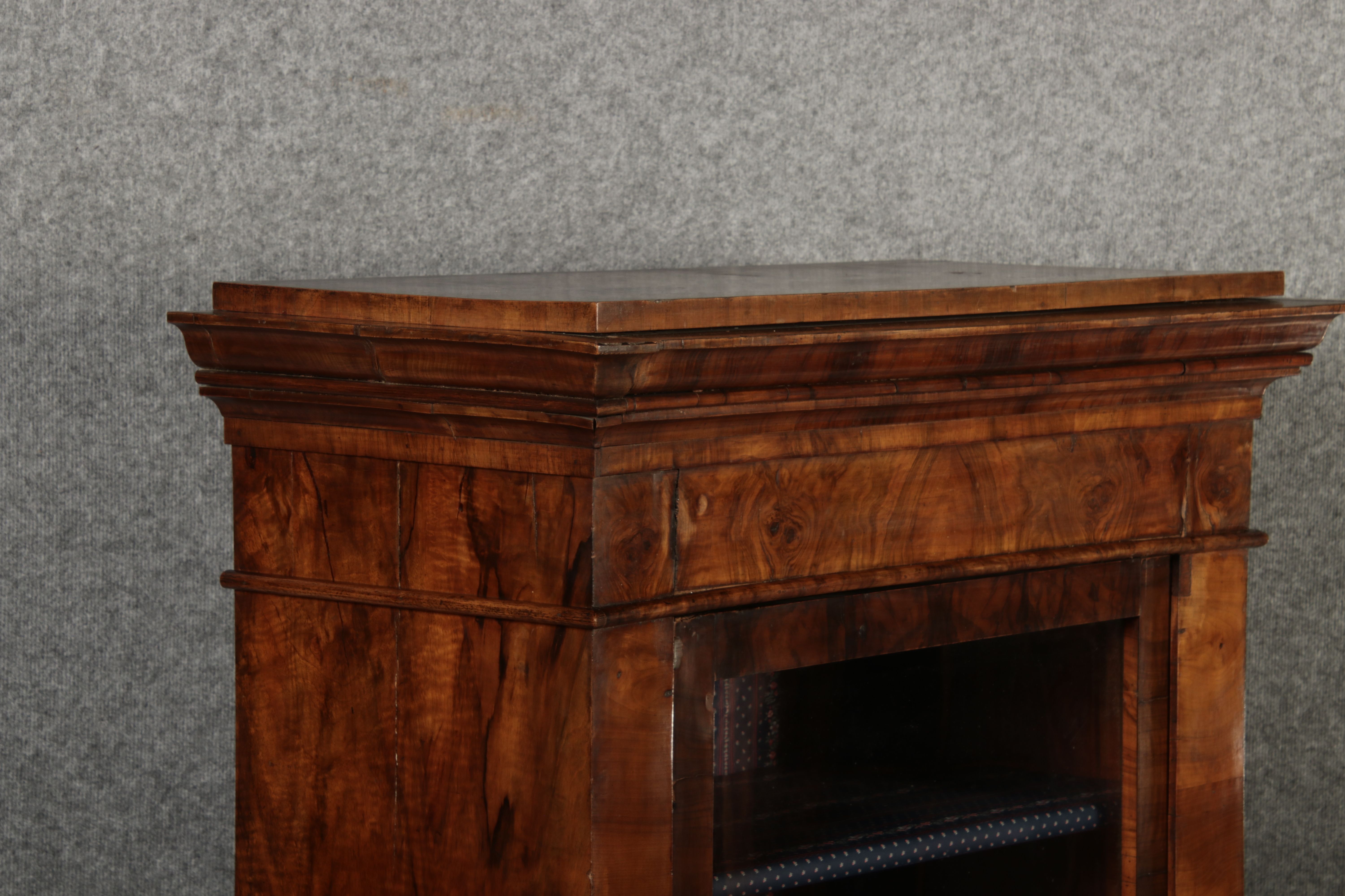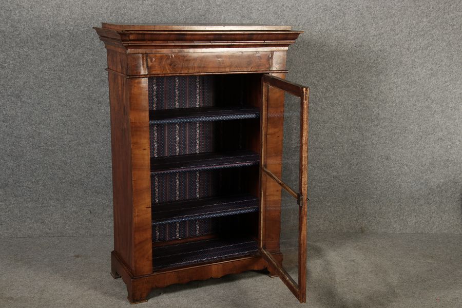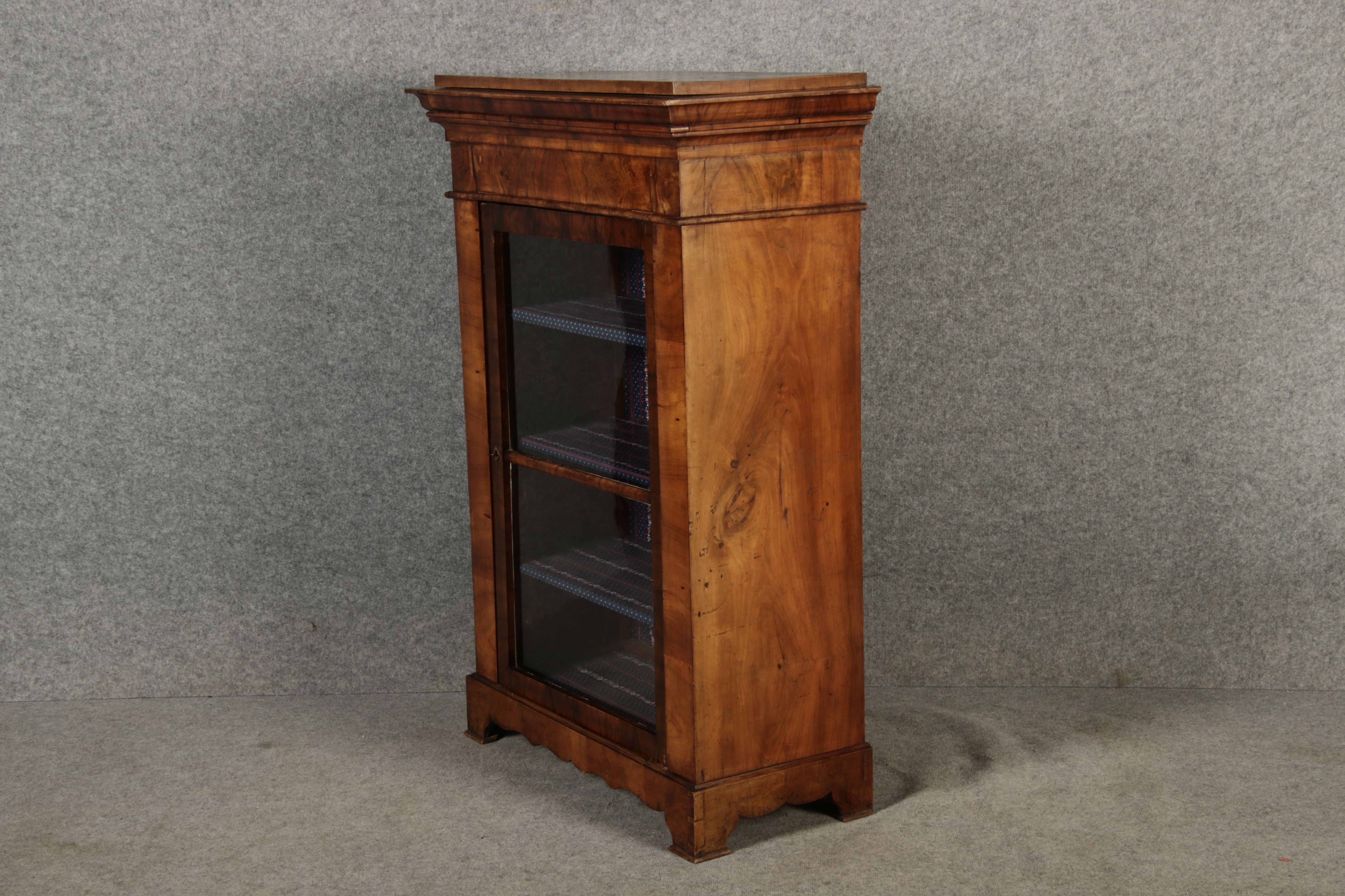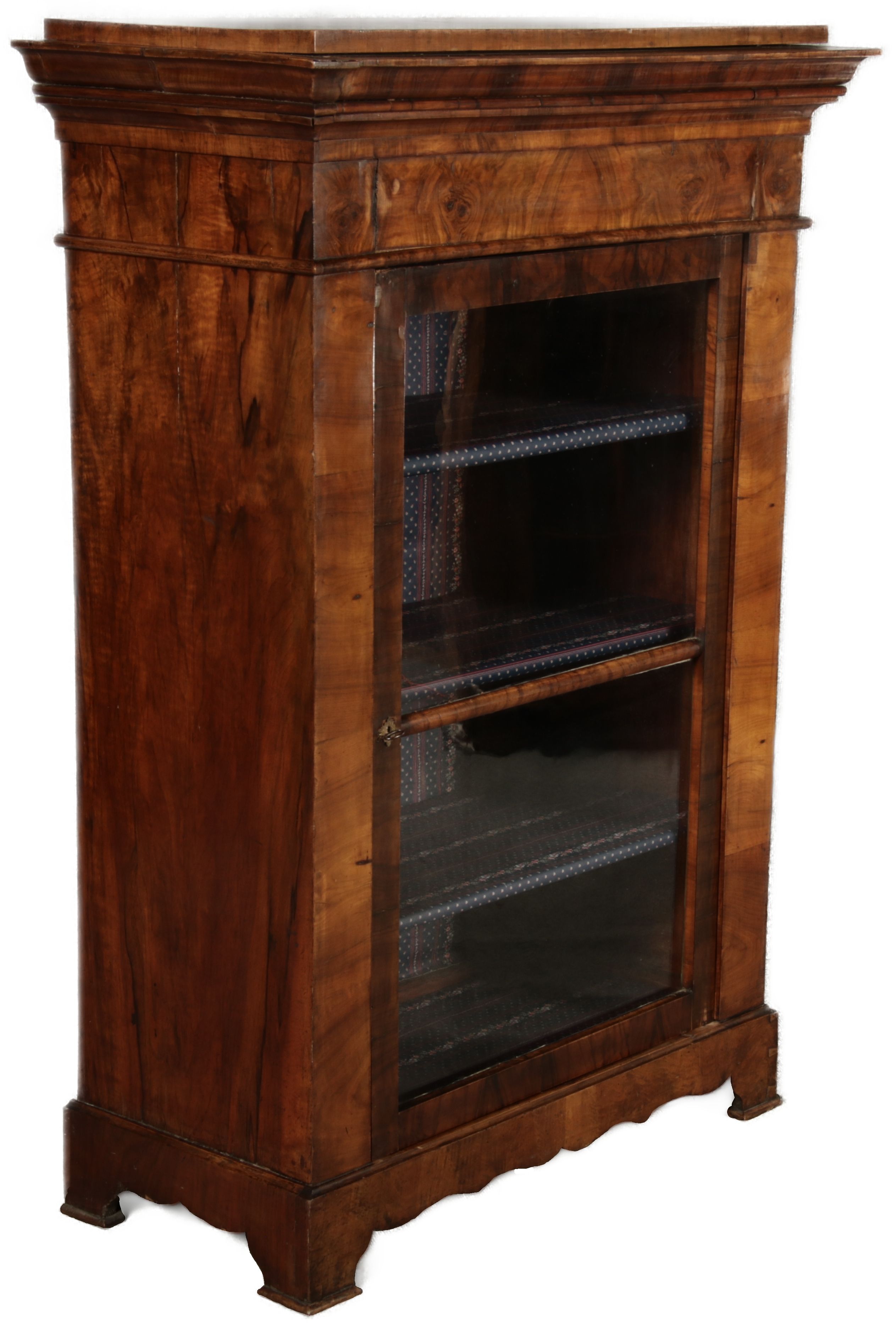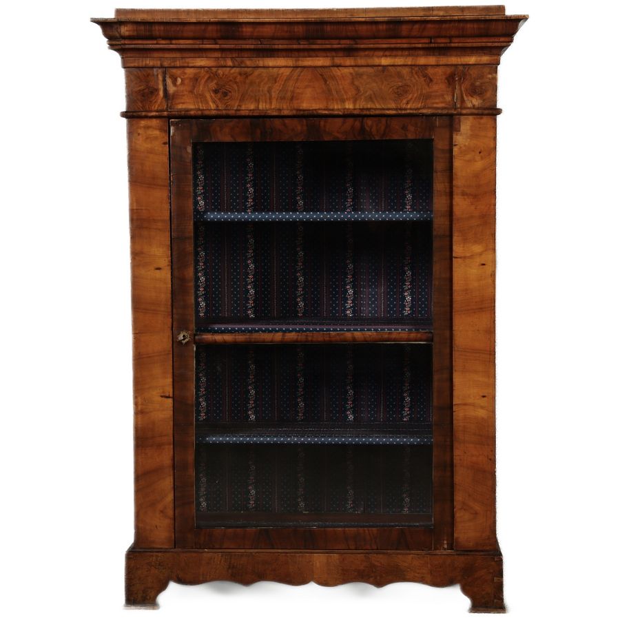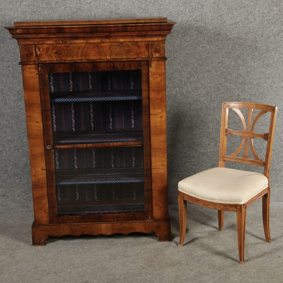 | Antike Kleine 143 cm hohe Biedermeiervitrine um 1830-40 Nussbaum | ||