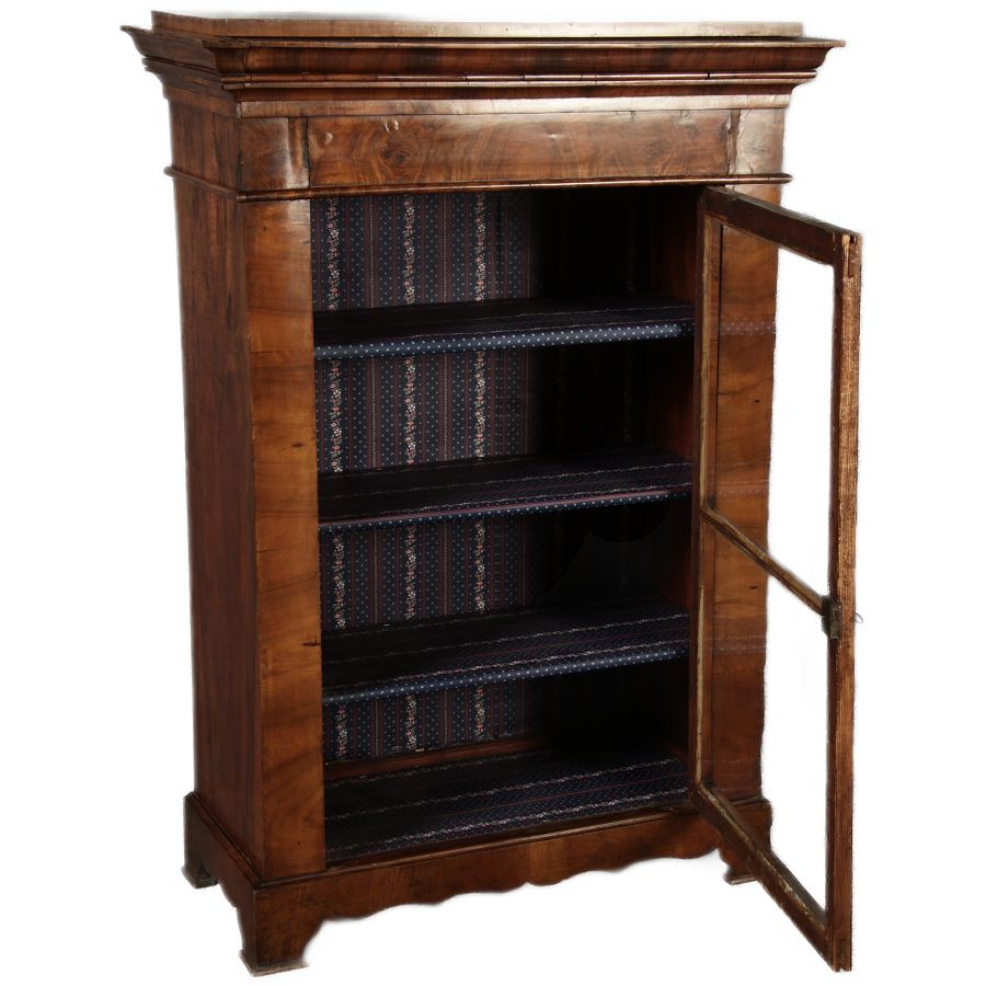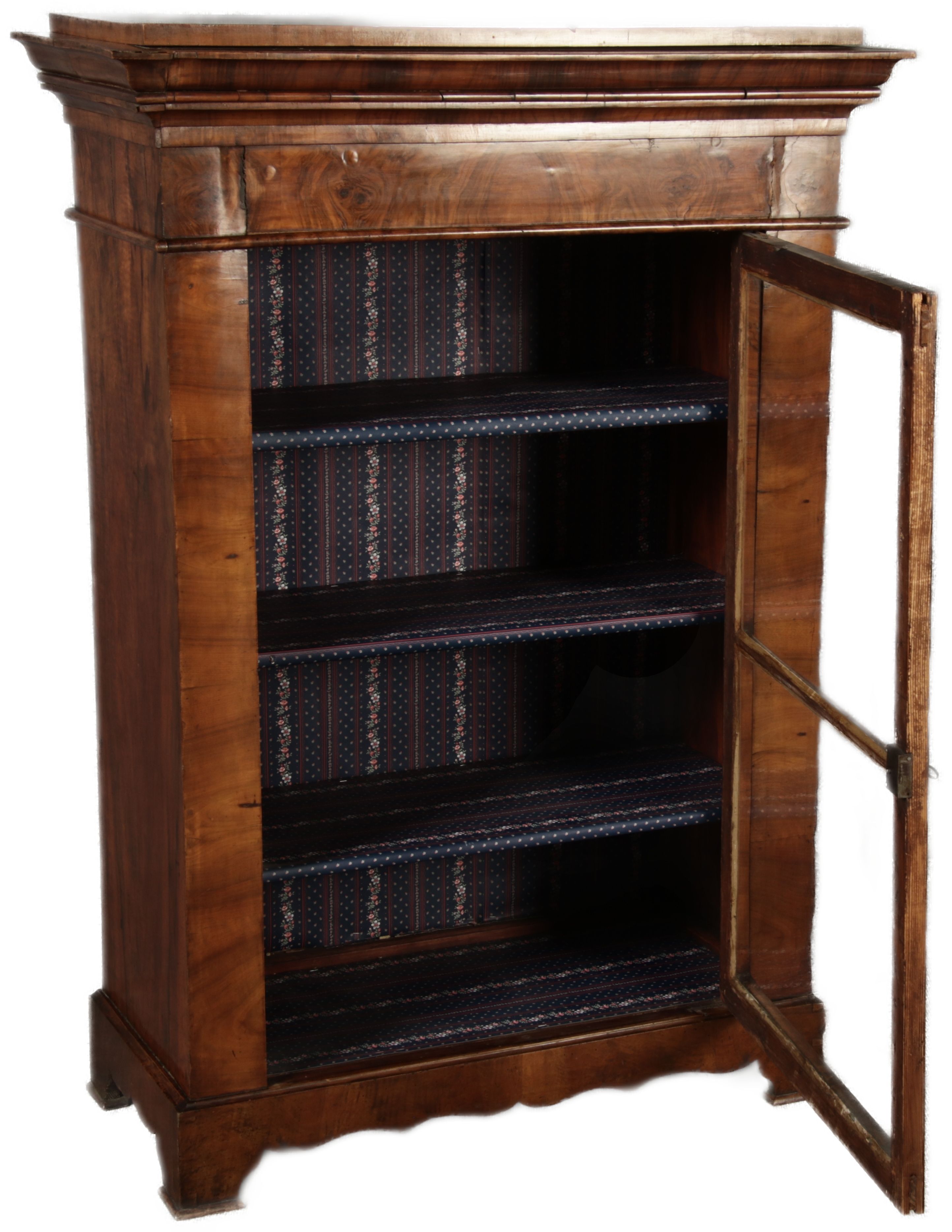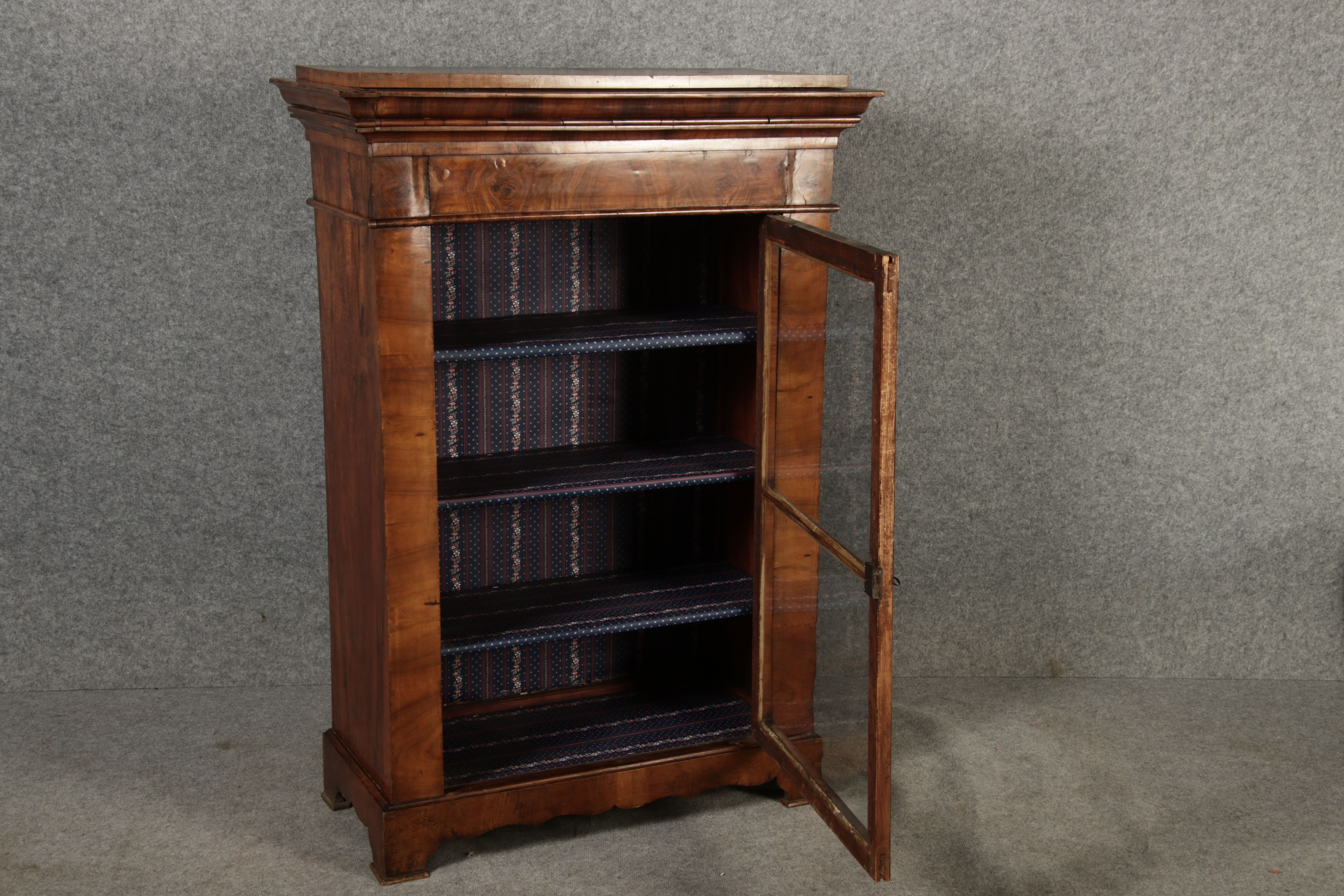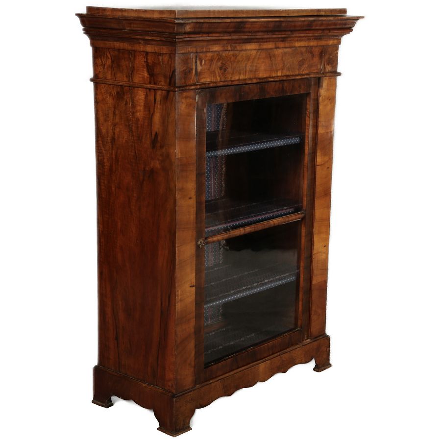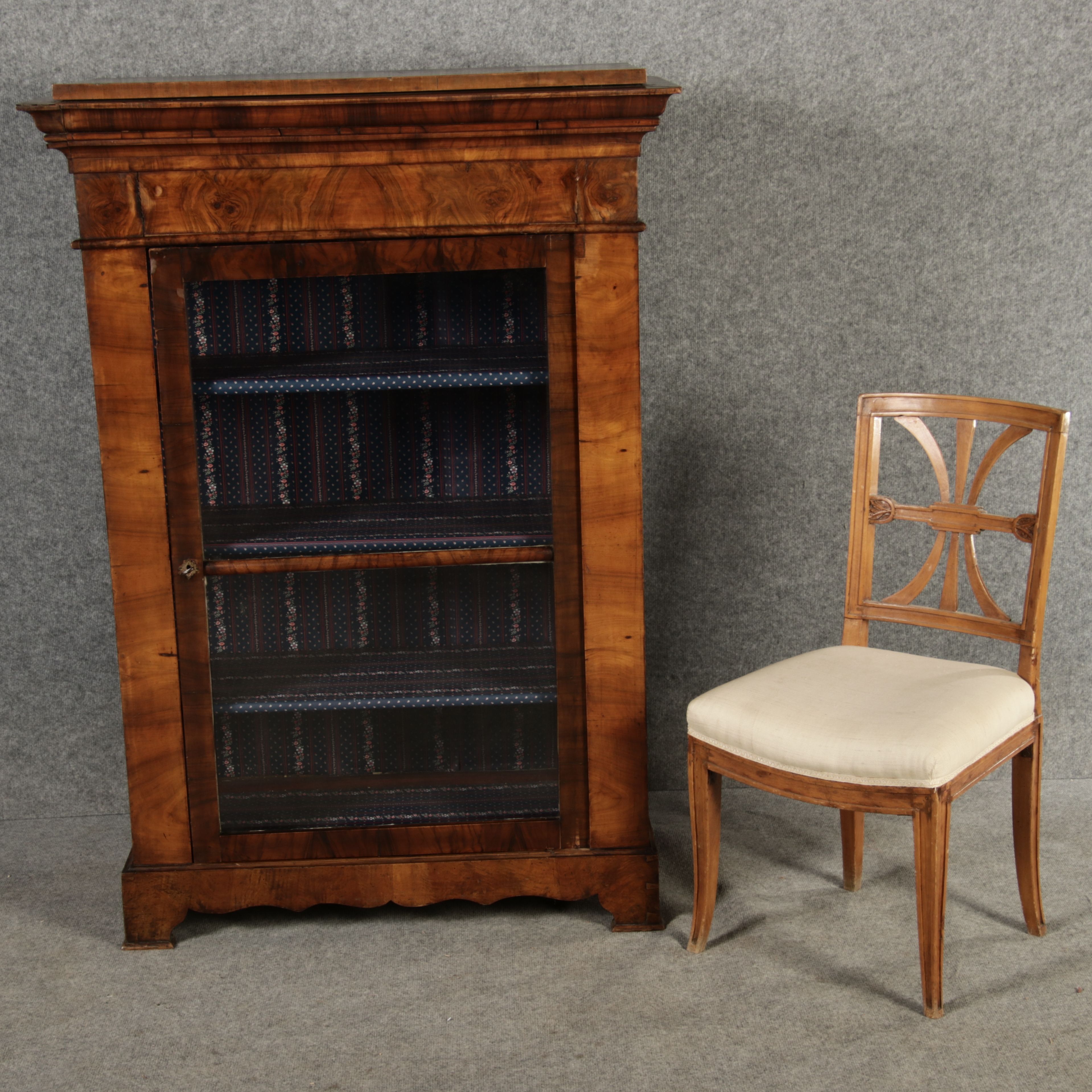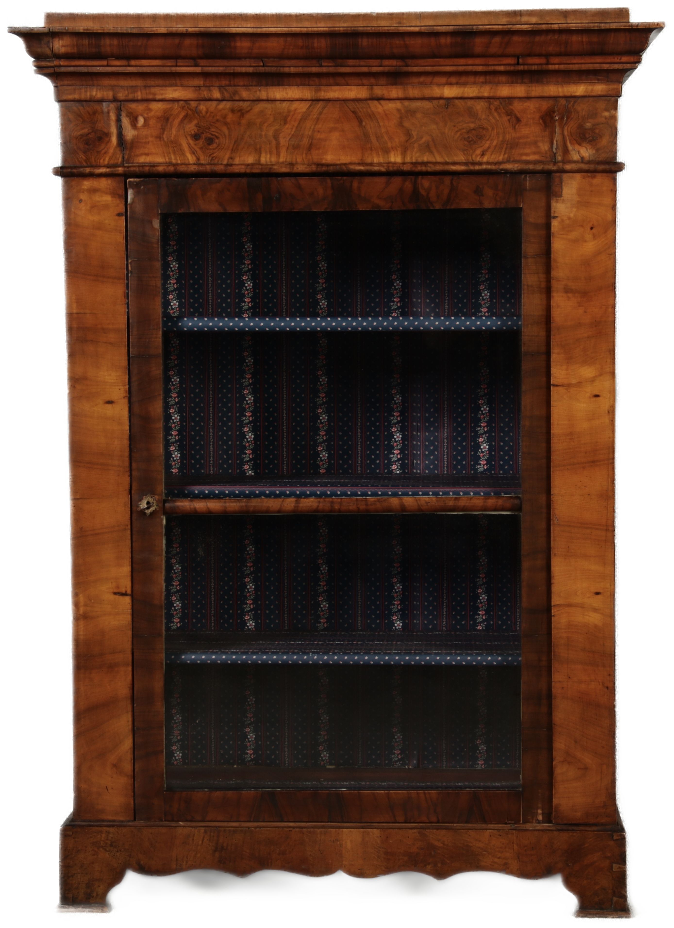 | Antike Kleine 143 cm hohe Biedermeiervitrine um 1830-40 Nussbaum | ||