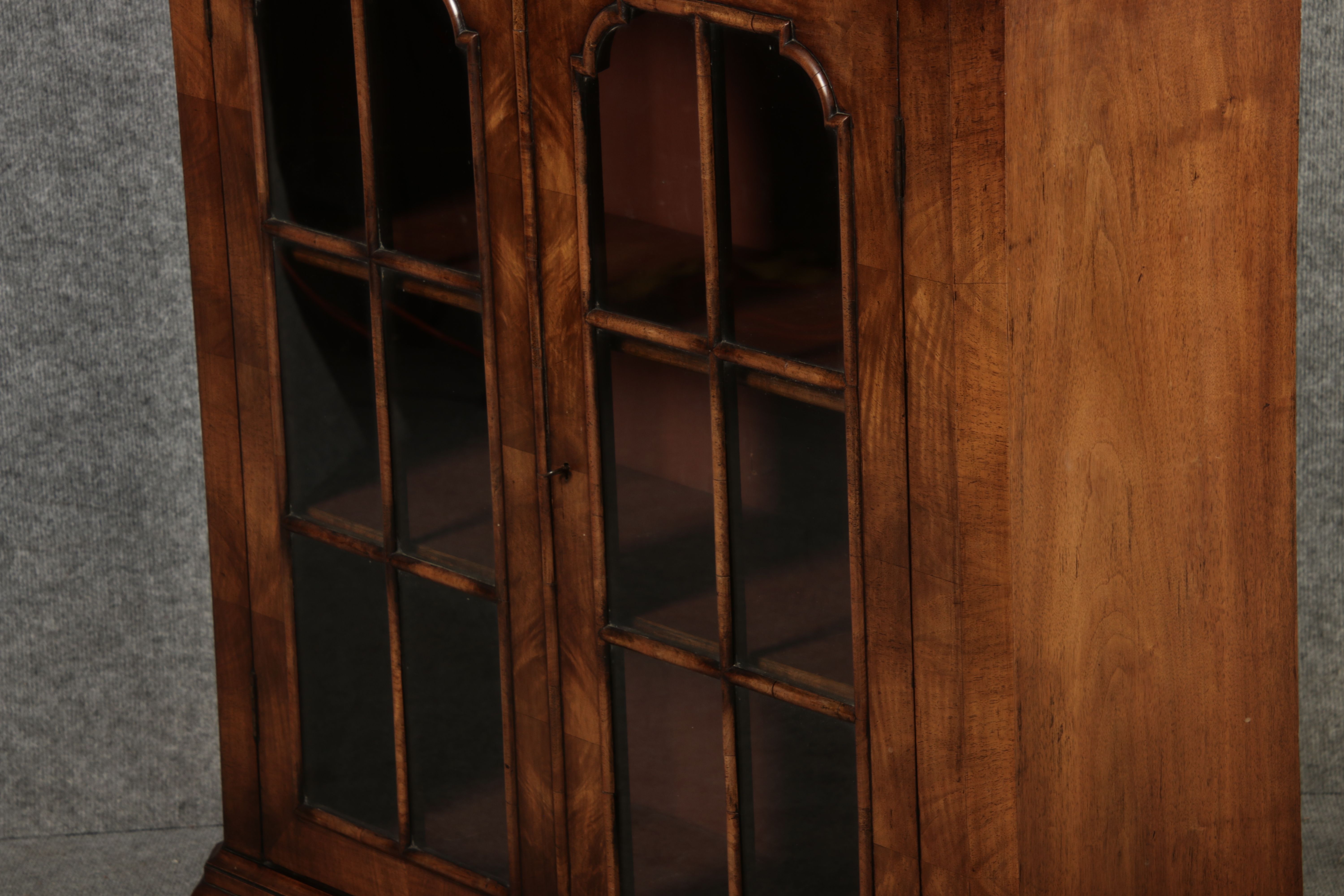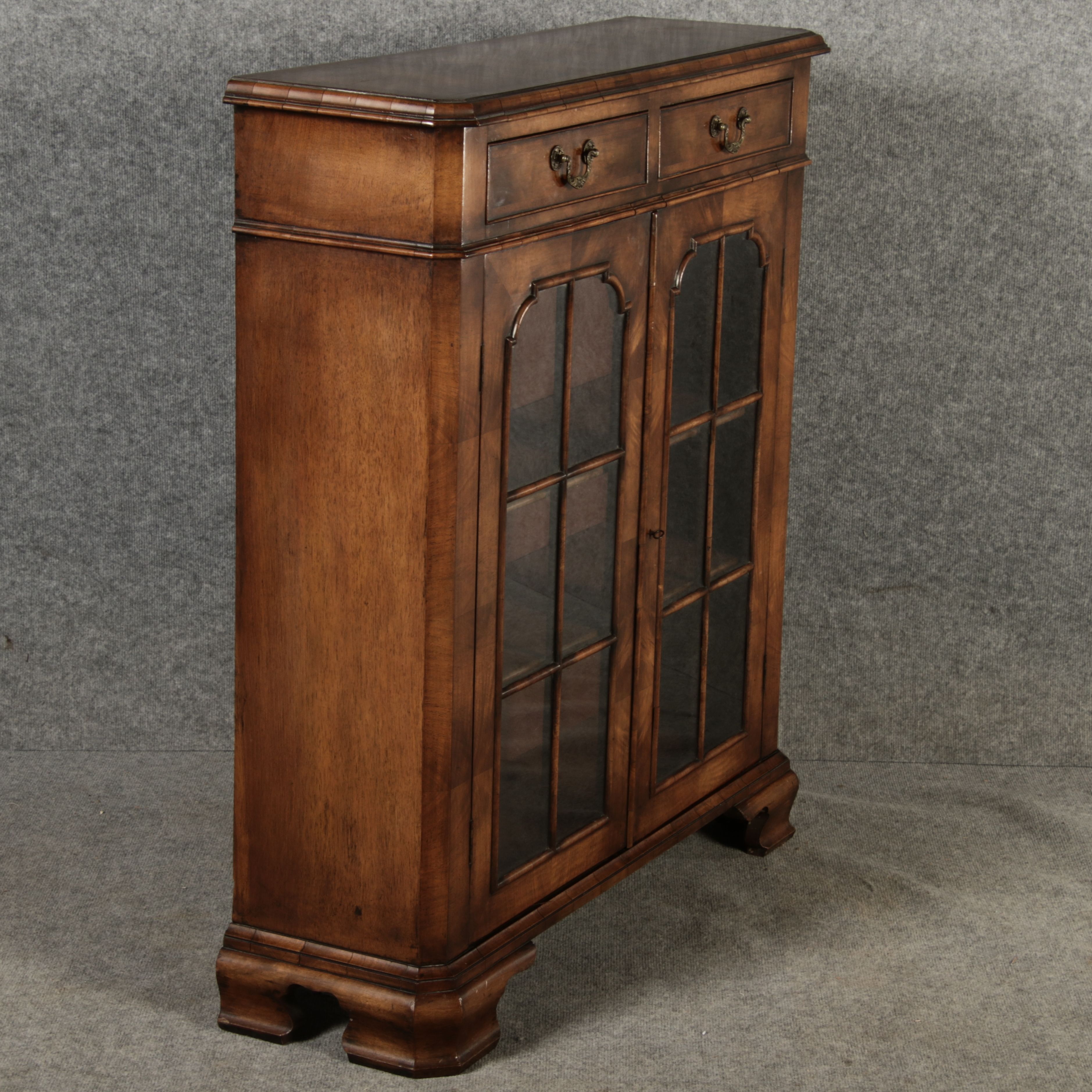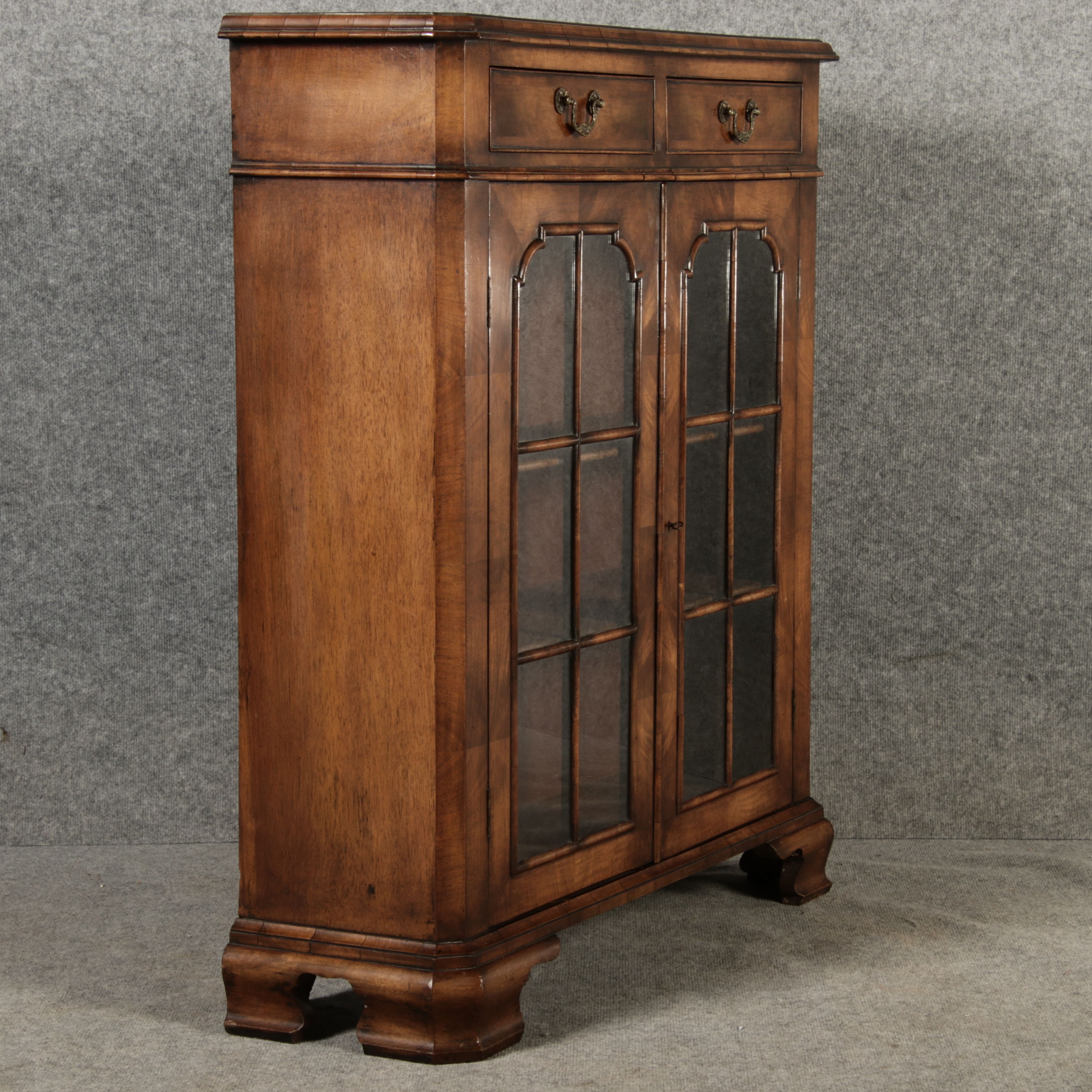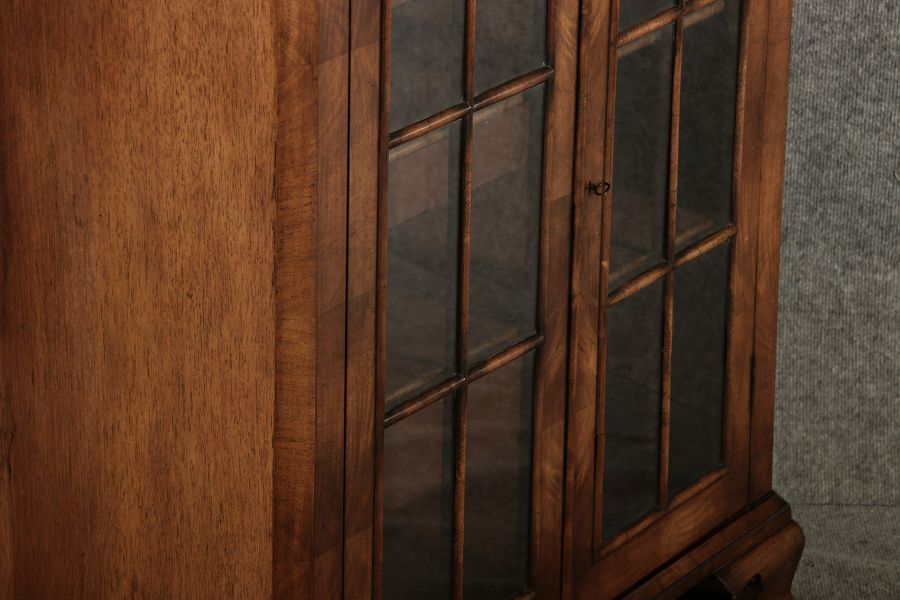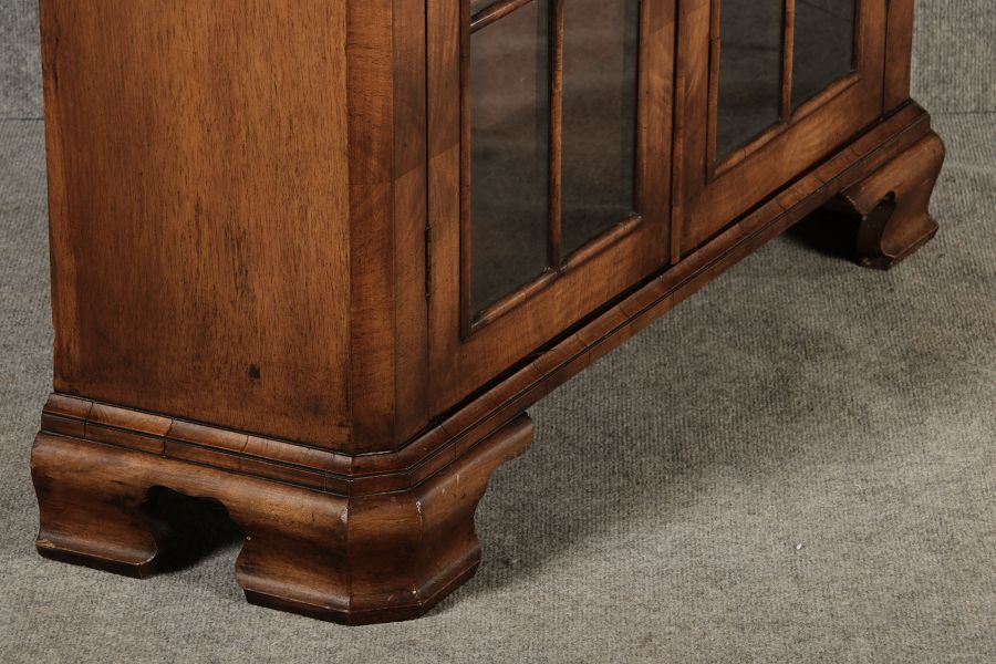 Beschreibung/description: Antike kleine Viktorianische Vitrine / Bücherschrank aus dem 19 Jh. Nussbaum furniert auf Eiche. Ideal für den Flur nur 30 cm Tief. ArtikelNummer /number: vi126
