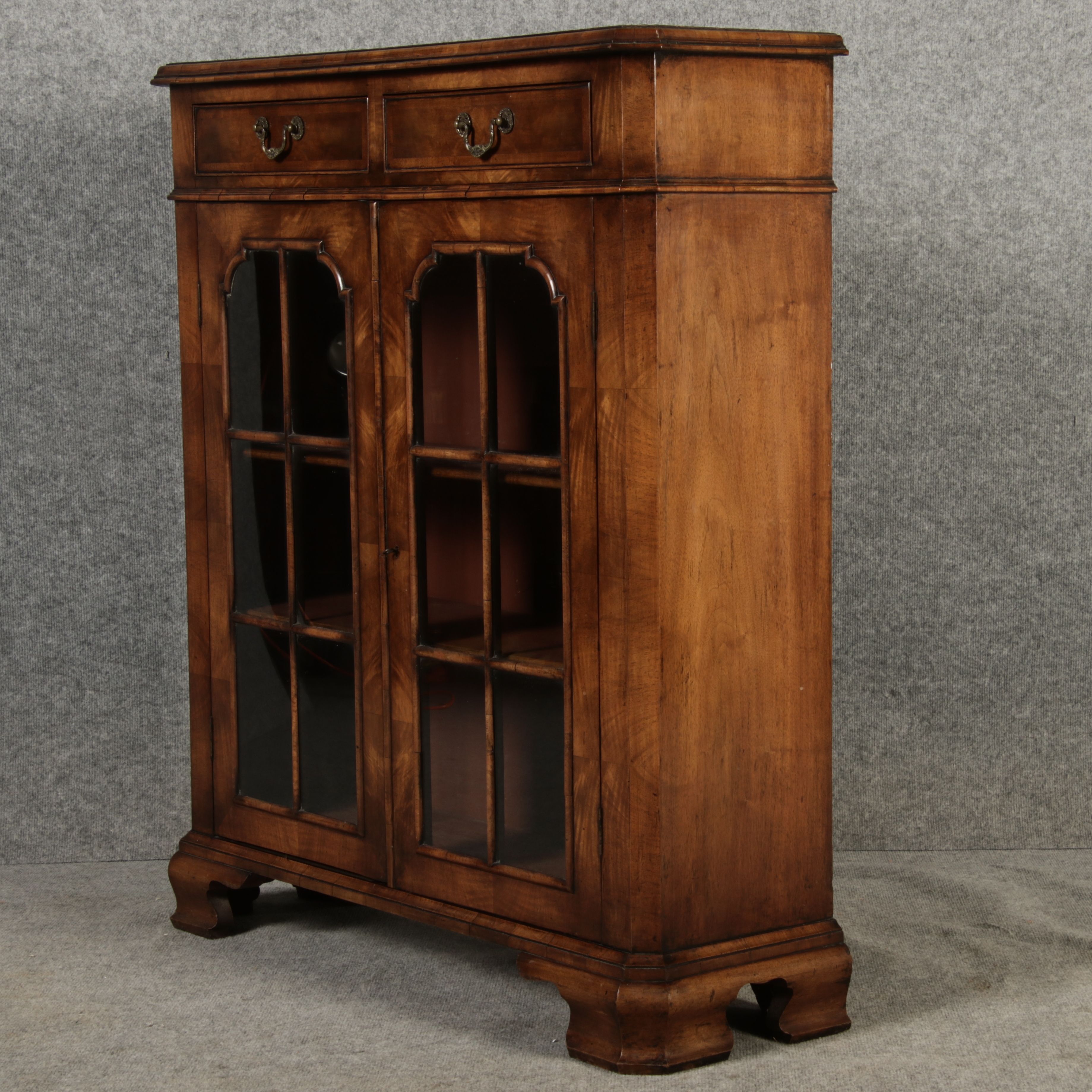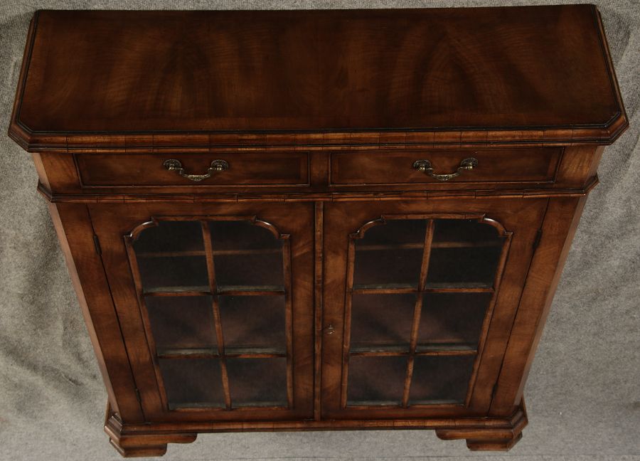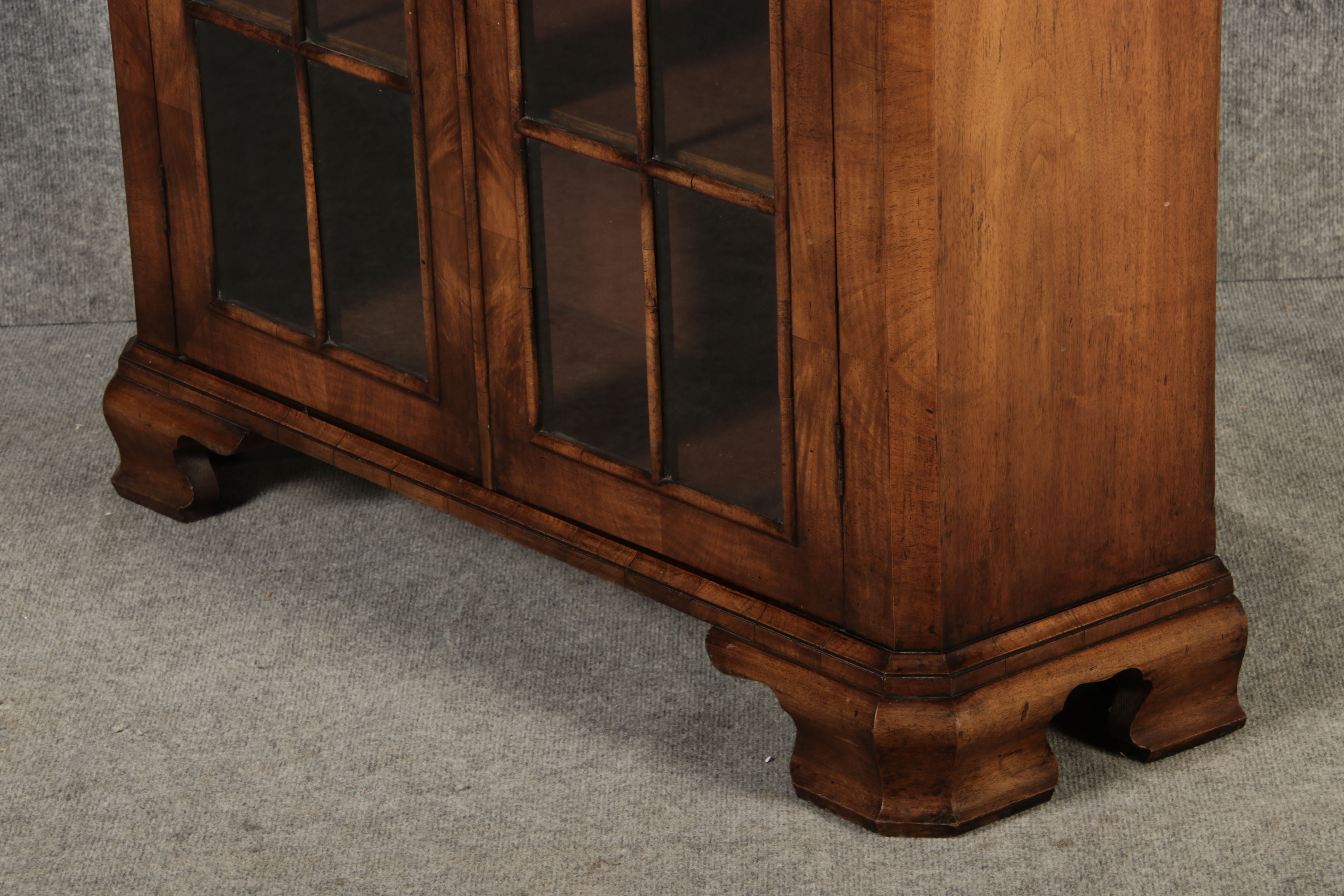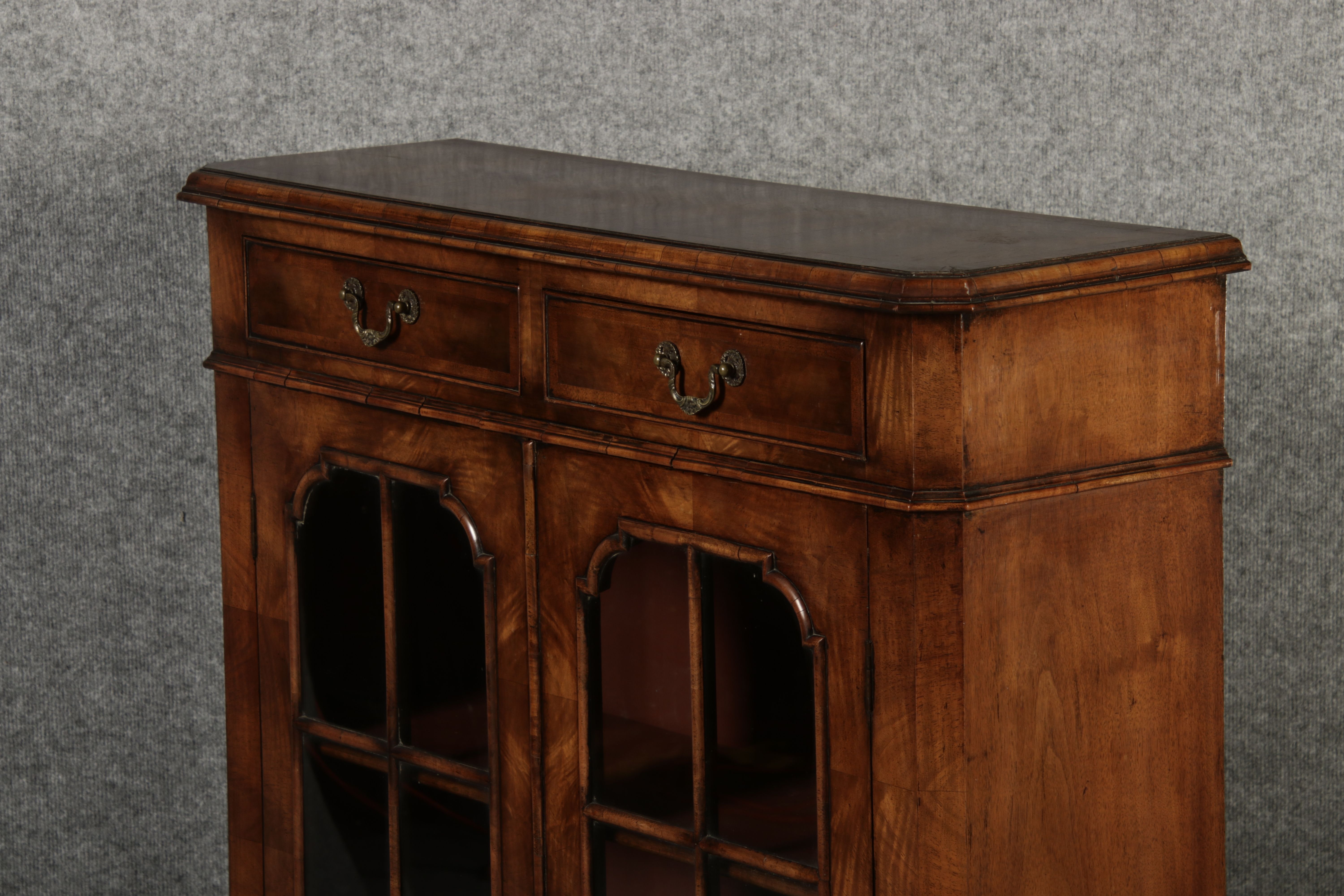 Beschreibung/description: Antike kleine Viktorianische Vitrine / Bücherschrank aus dem 19 Jh. Nussbaum furniert auf Eiche. Ideal für den Flur nur 30 cm Tief. ArtikelNummer /number: vi126