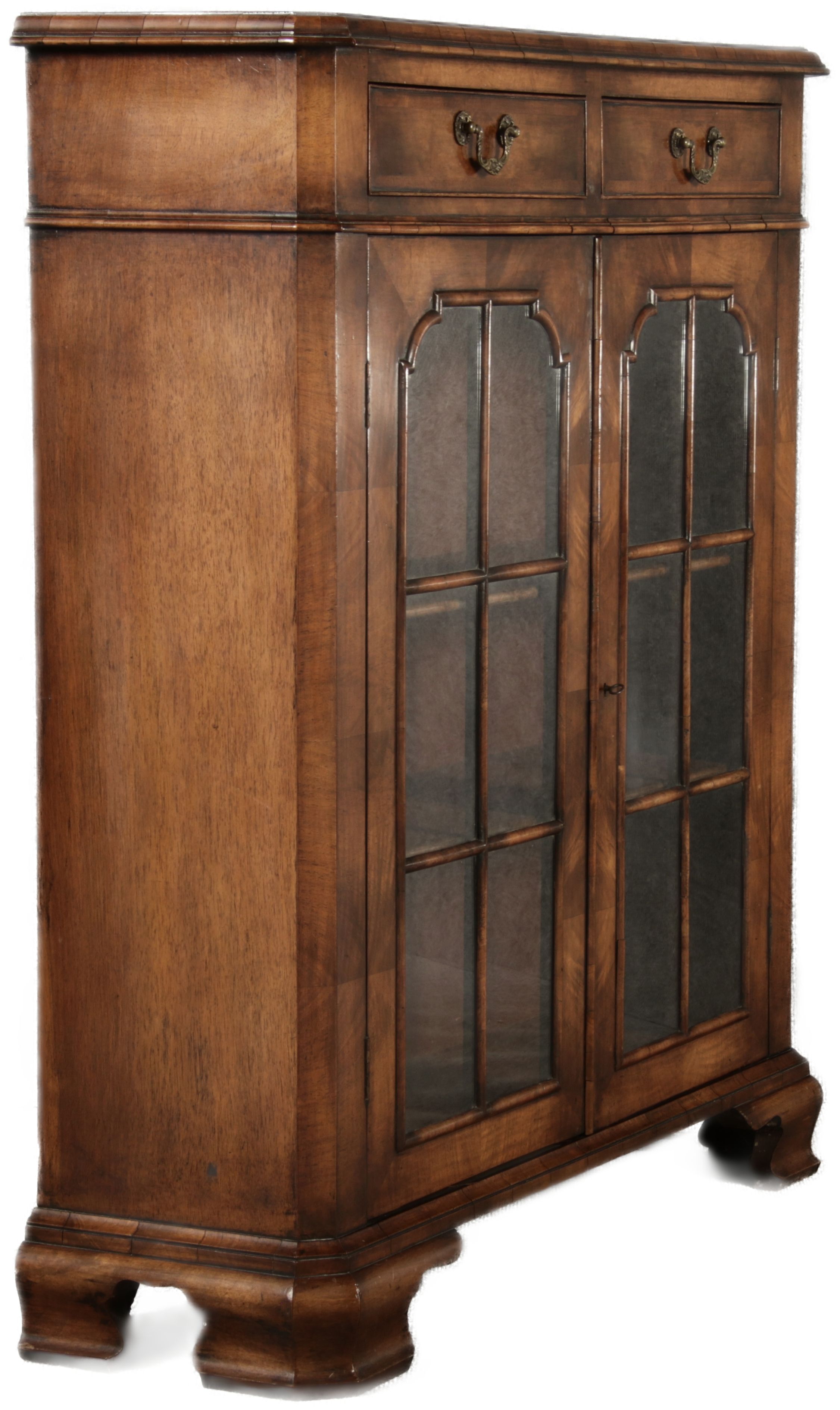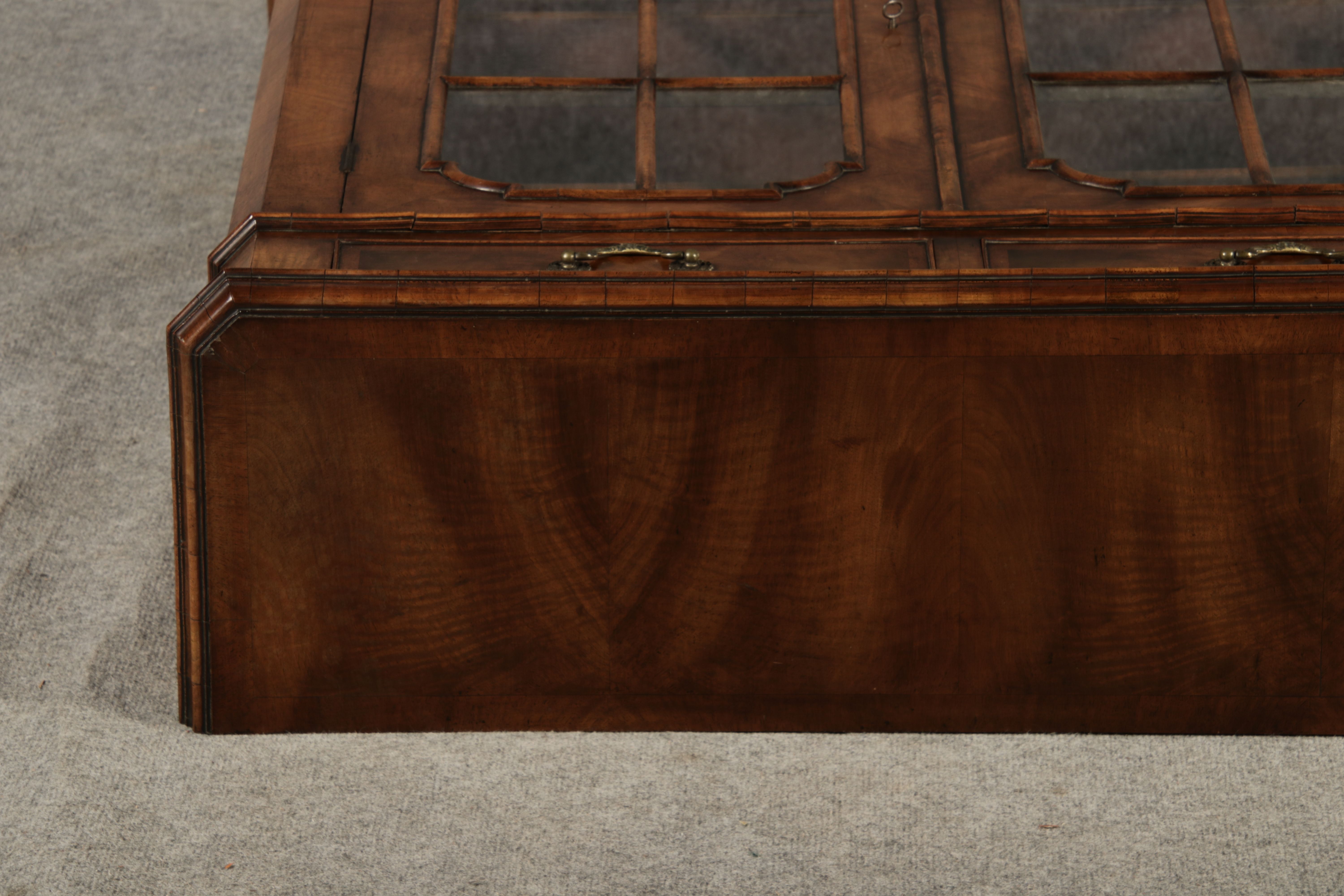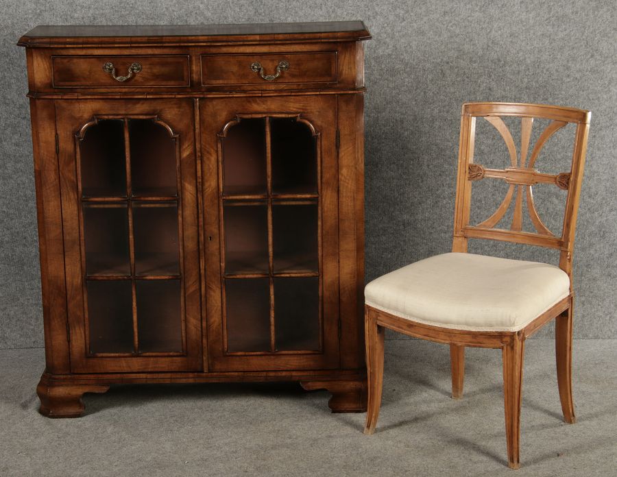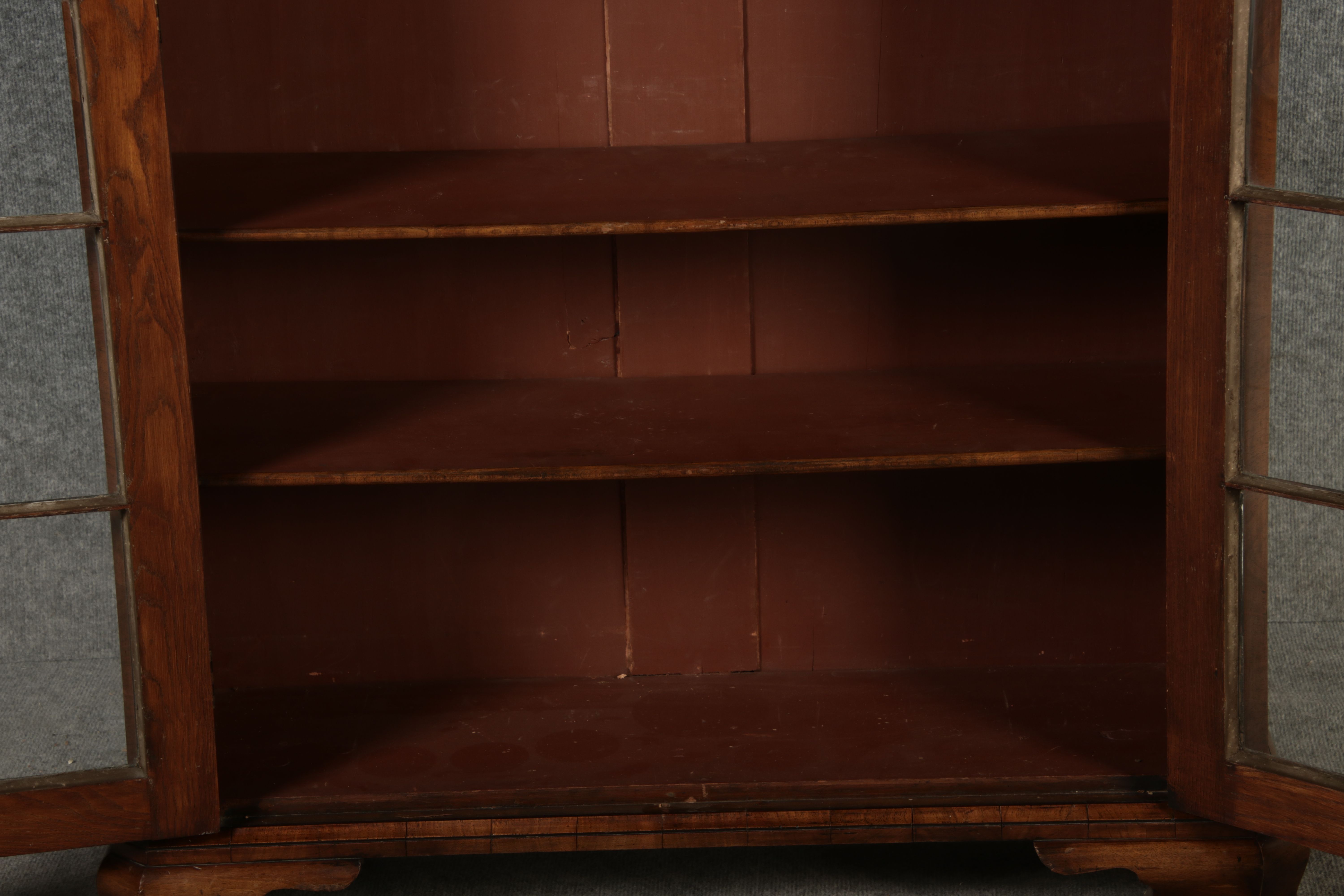 Beschreibung/description: Antike kleine Viktorianische Vitrine / Bücherschrank aus dem 19 Jh. Nussbaum furniert auf Eiche. Ideal für den Flur nur 30 cm Tief. ArtikelNummer /number: vi126