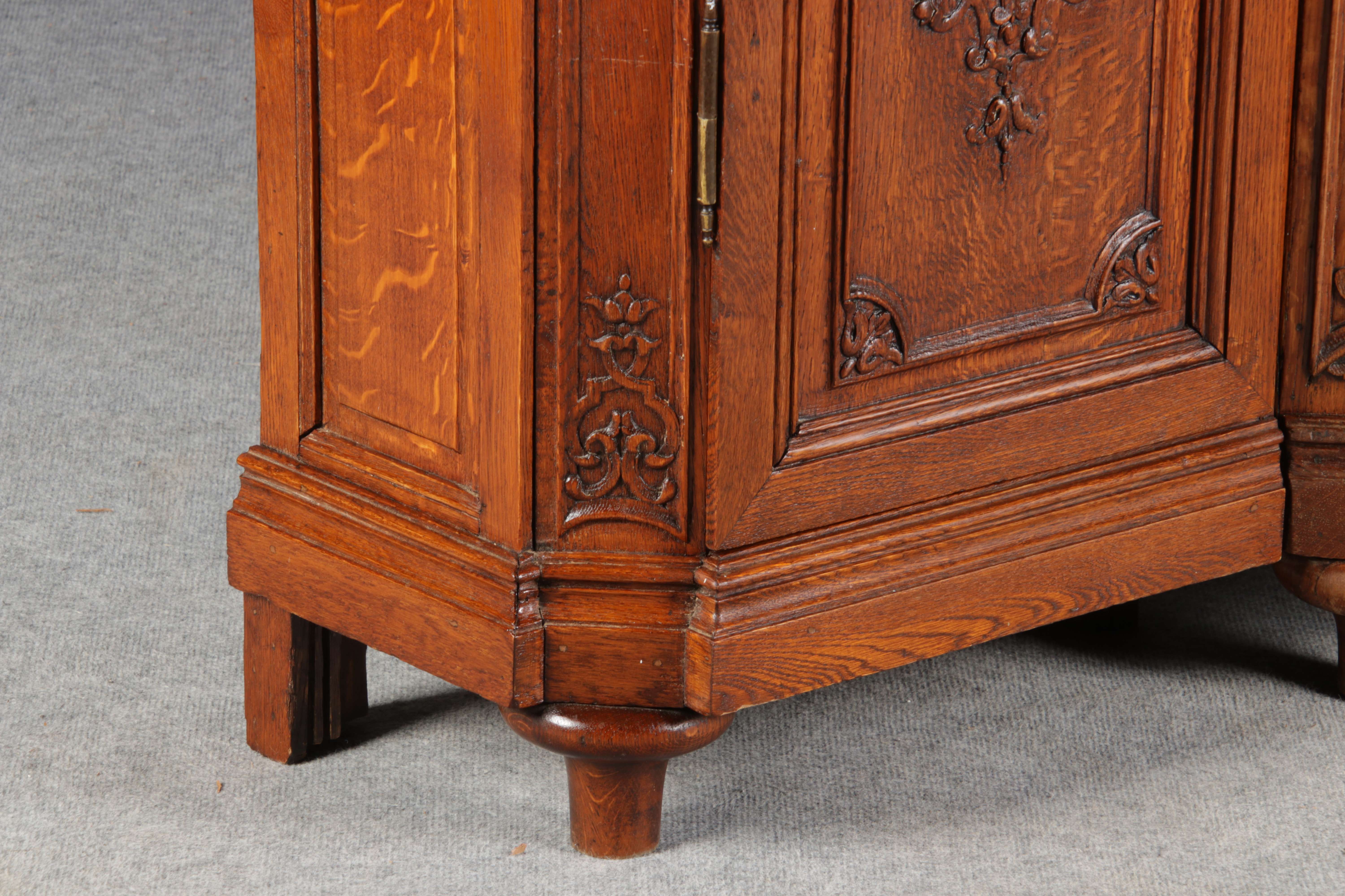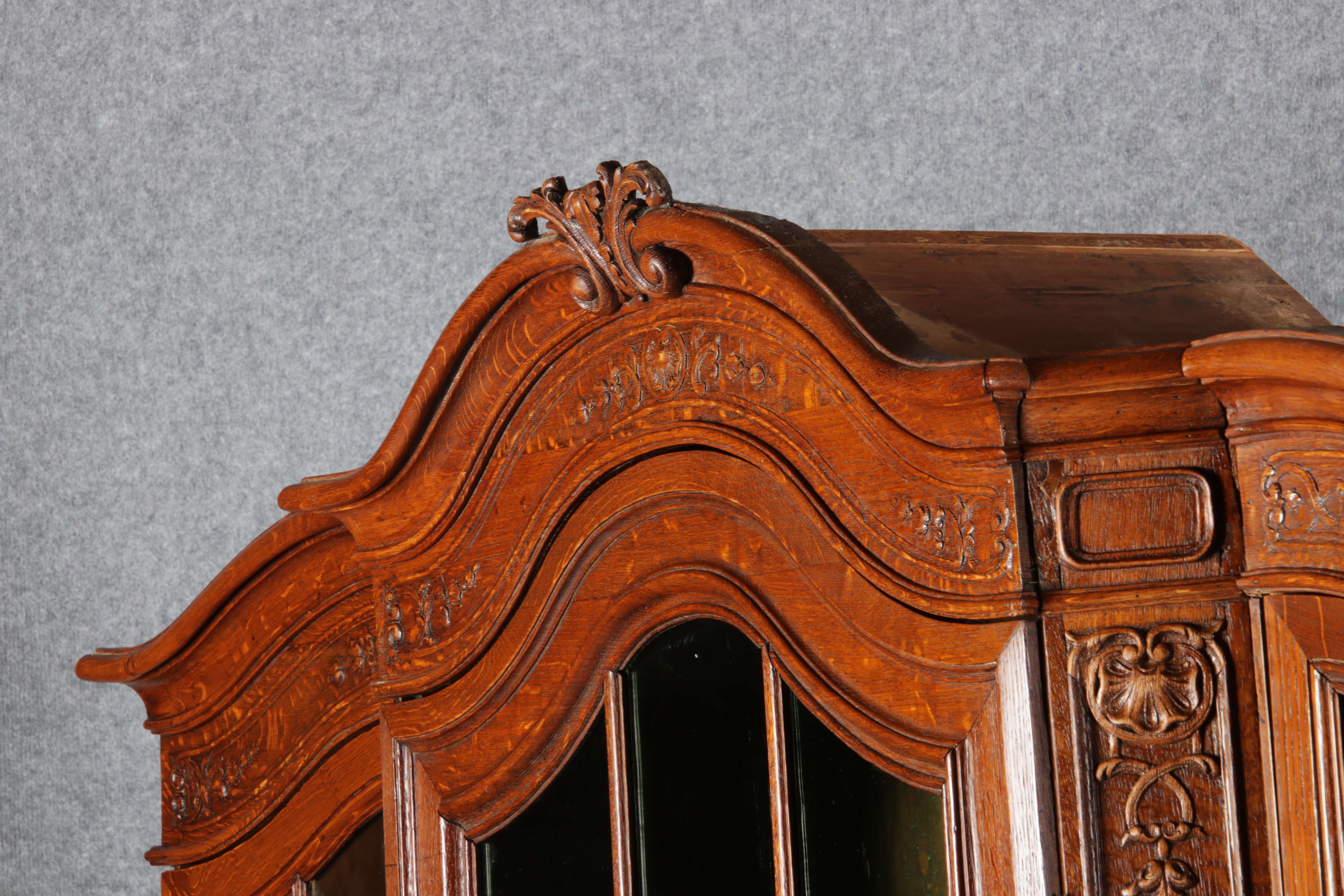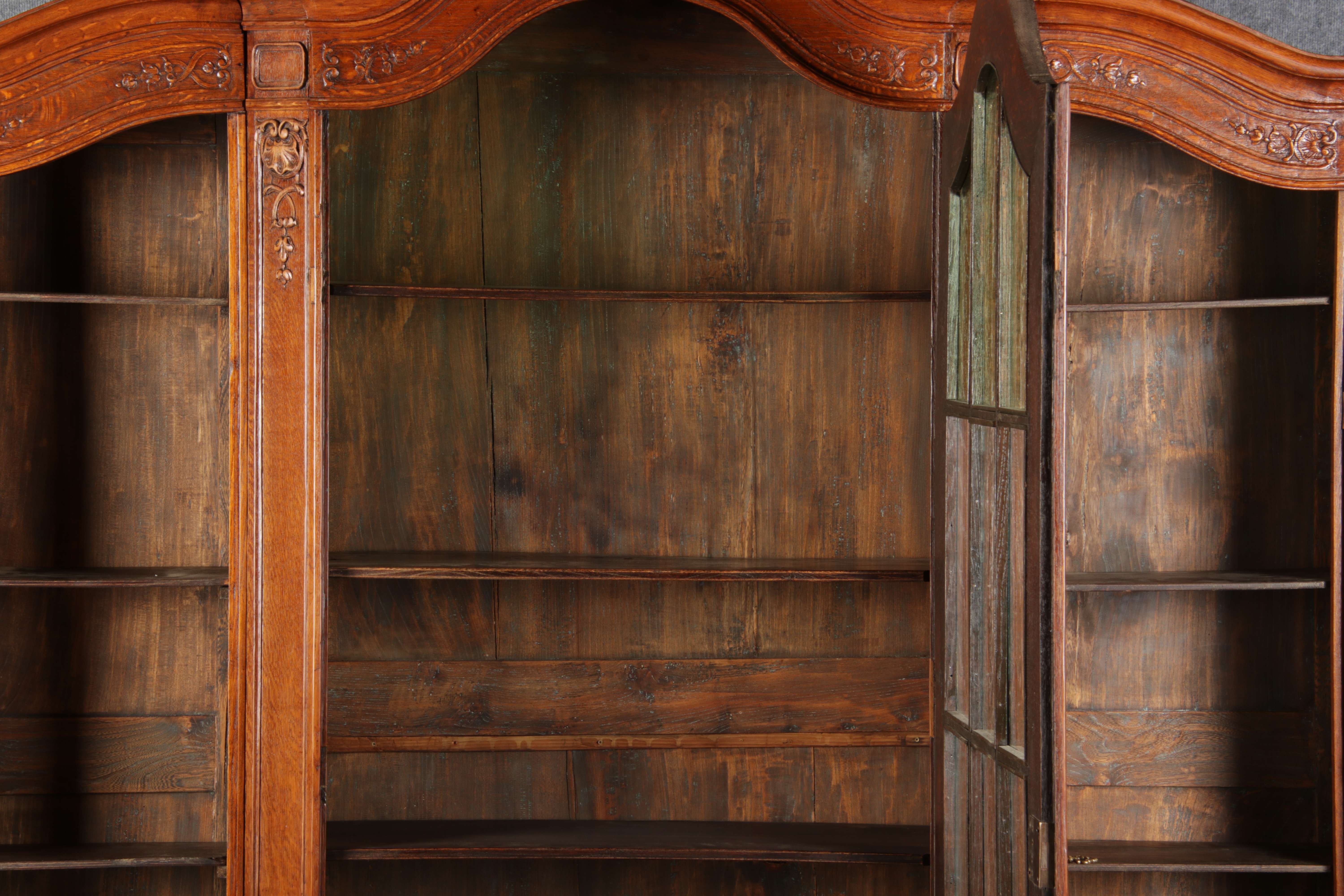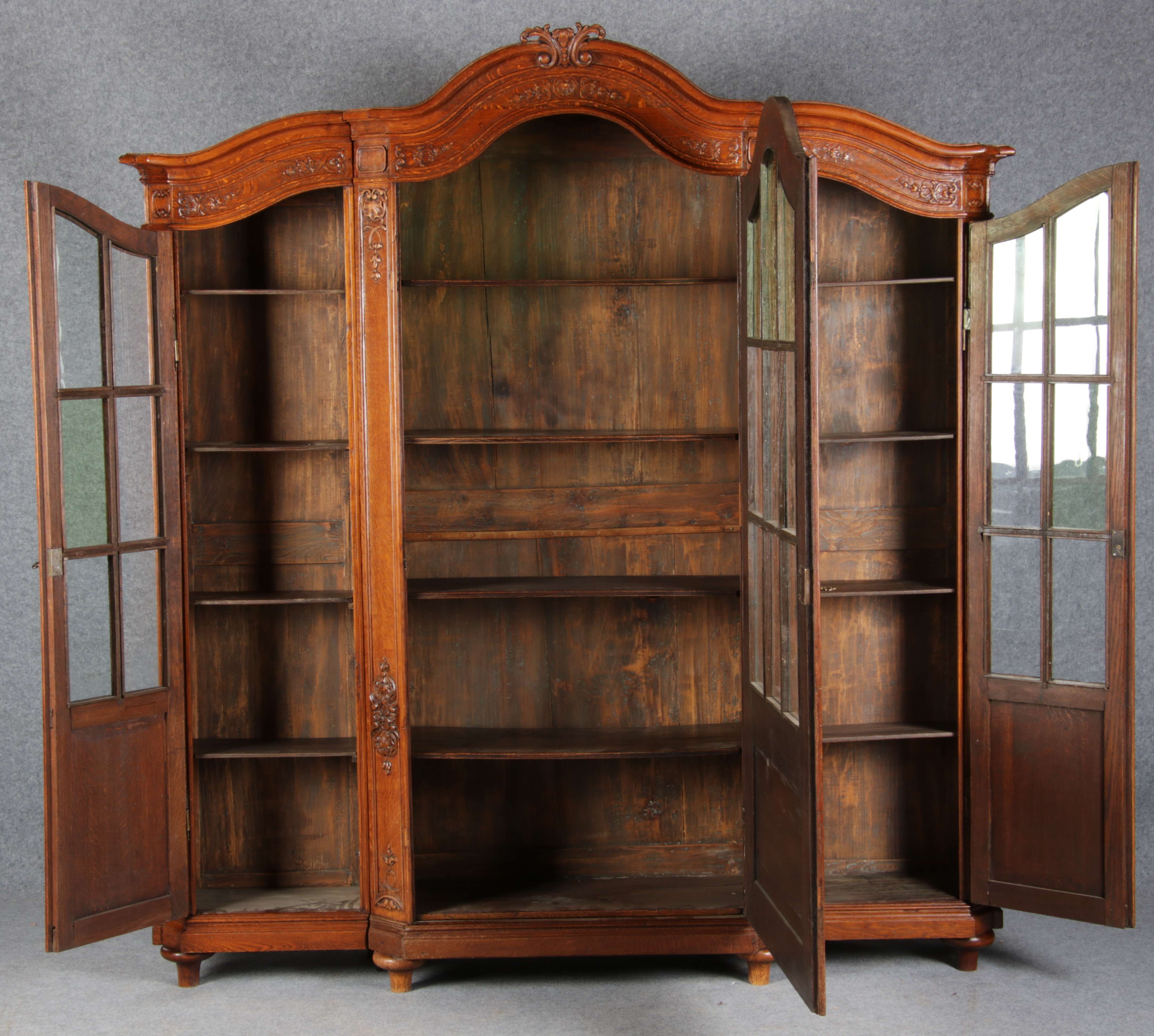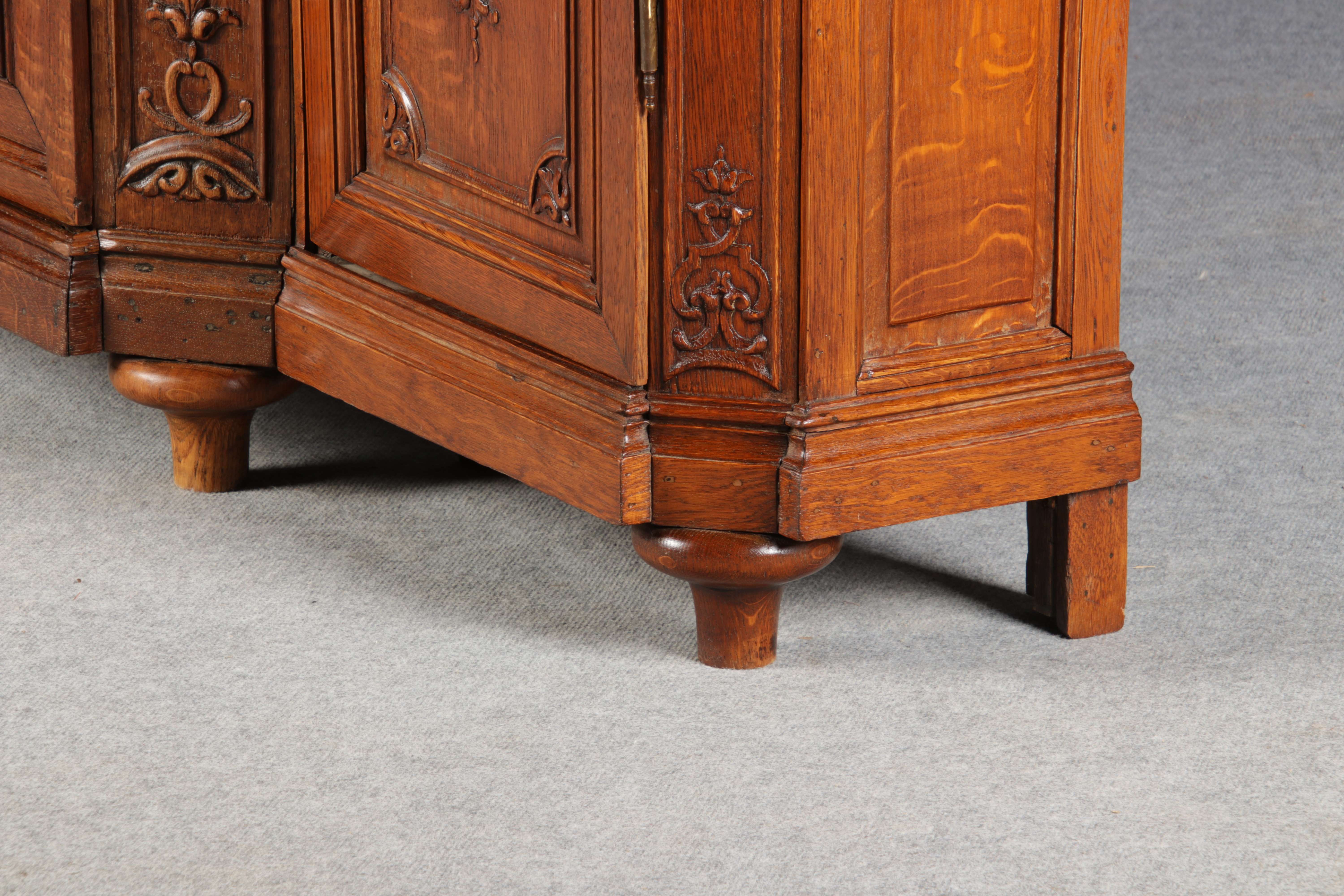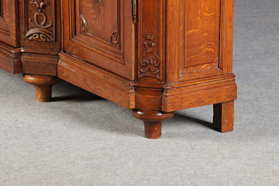 Antike Aachen Lüttich Barockvitrine drei türige Eiche 19 Jh. Schnitzereien |
