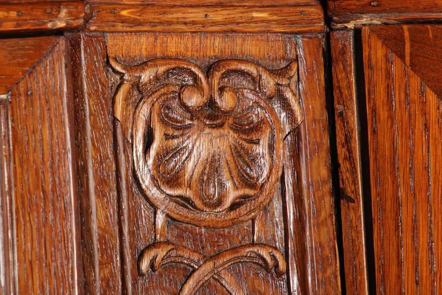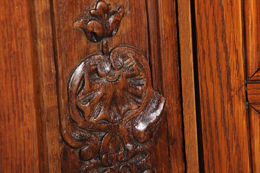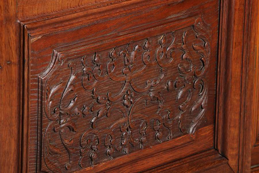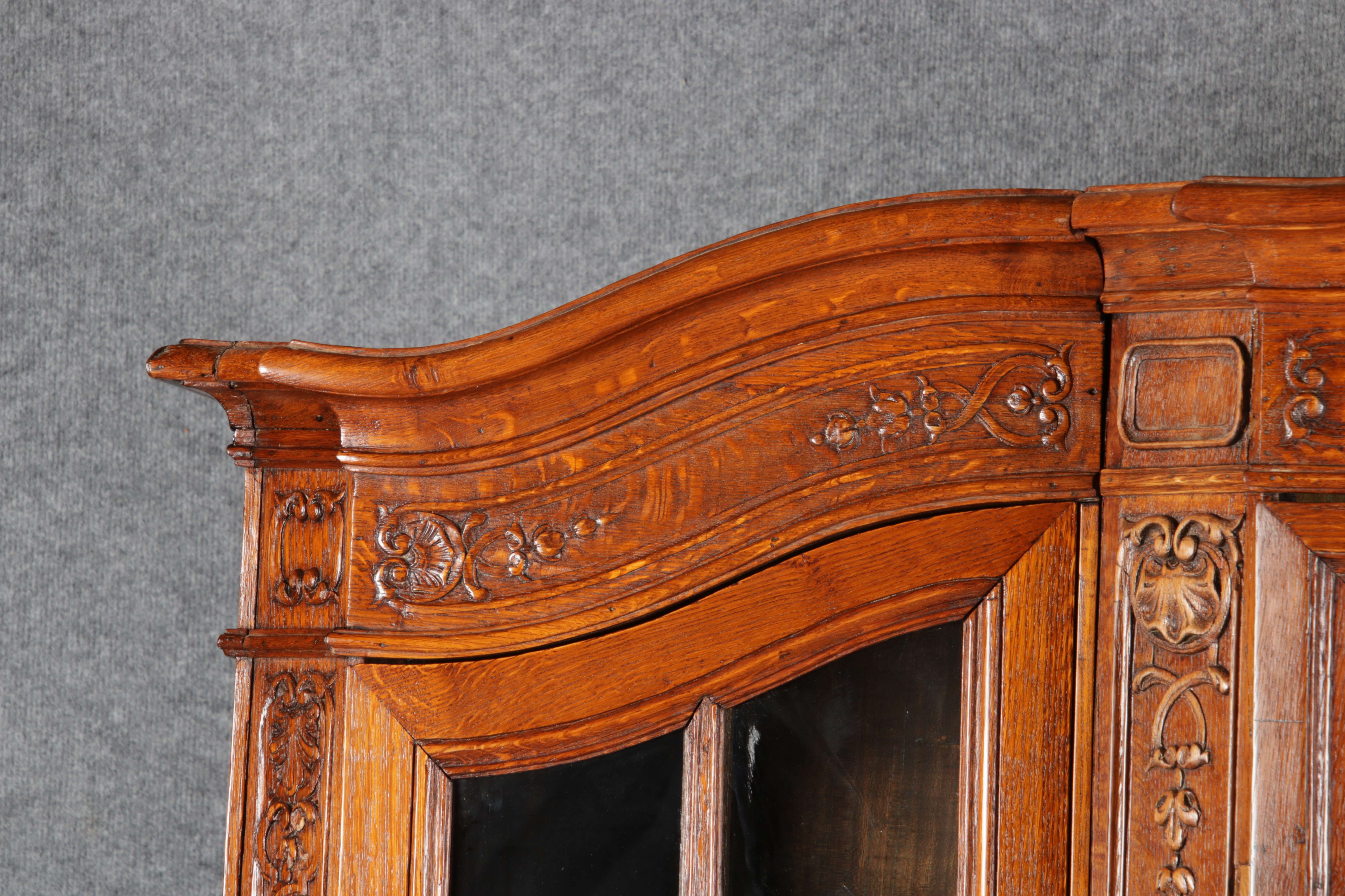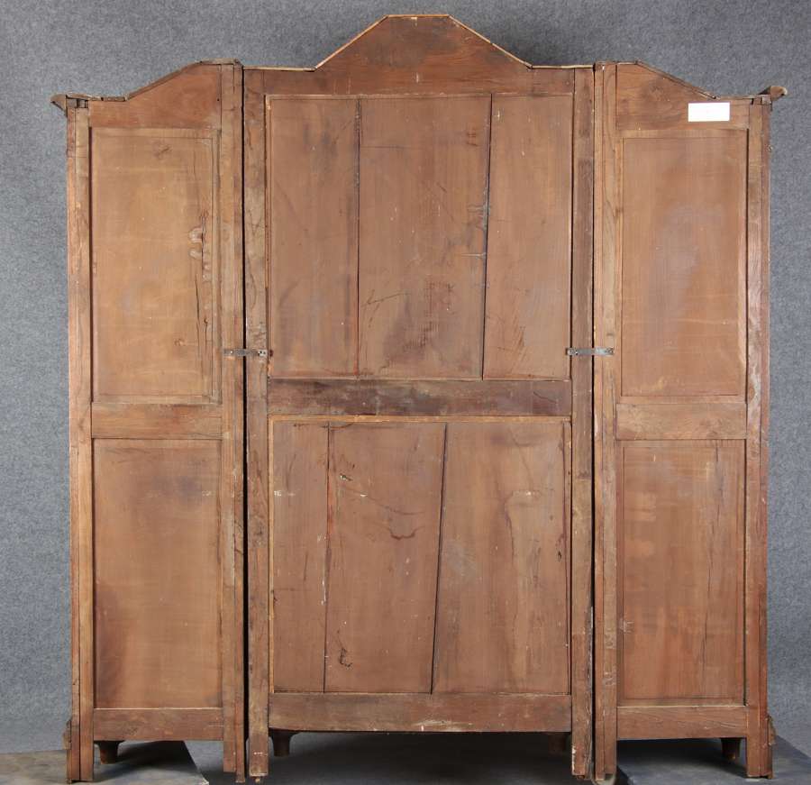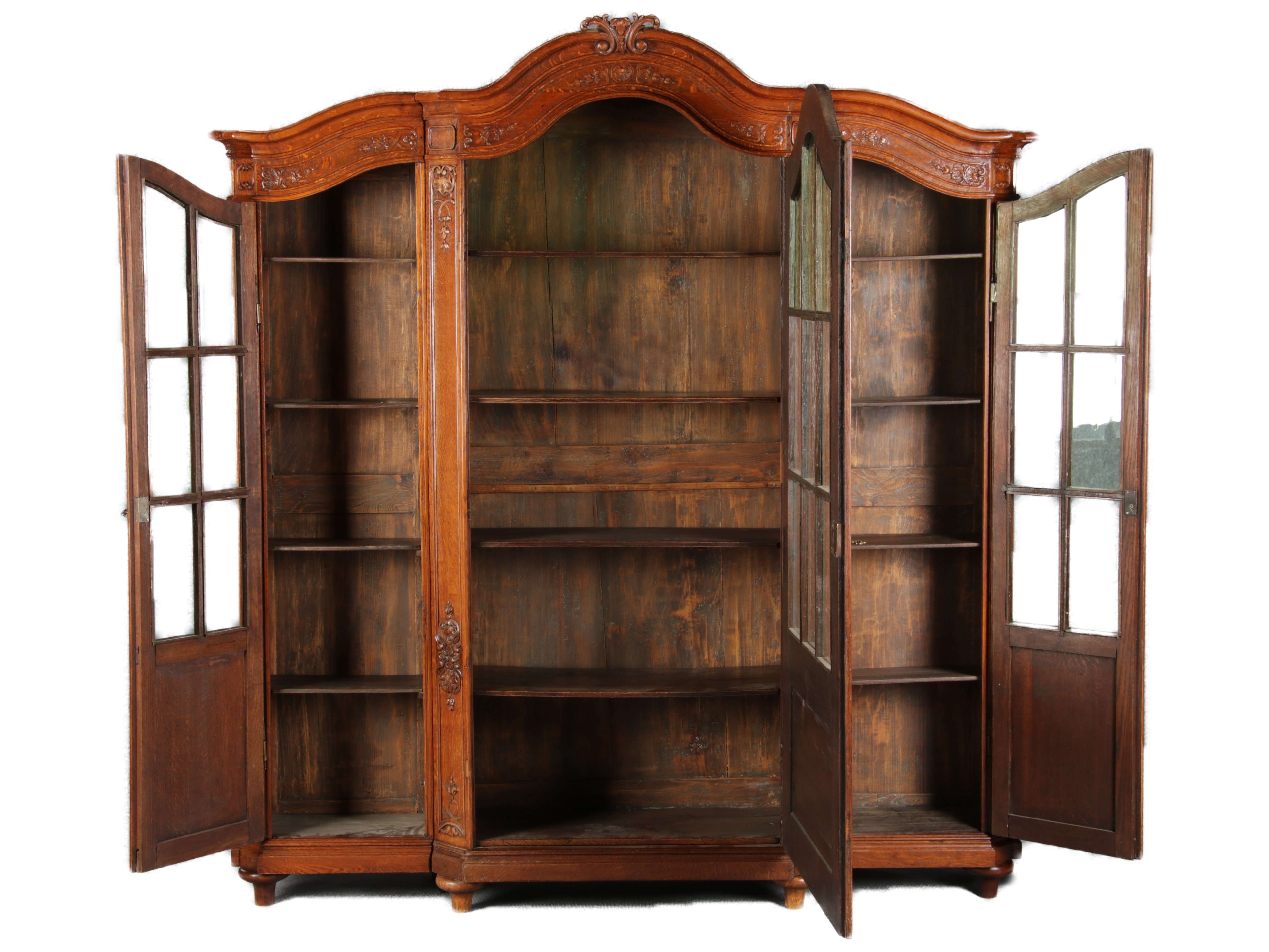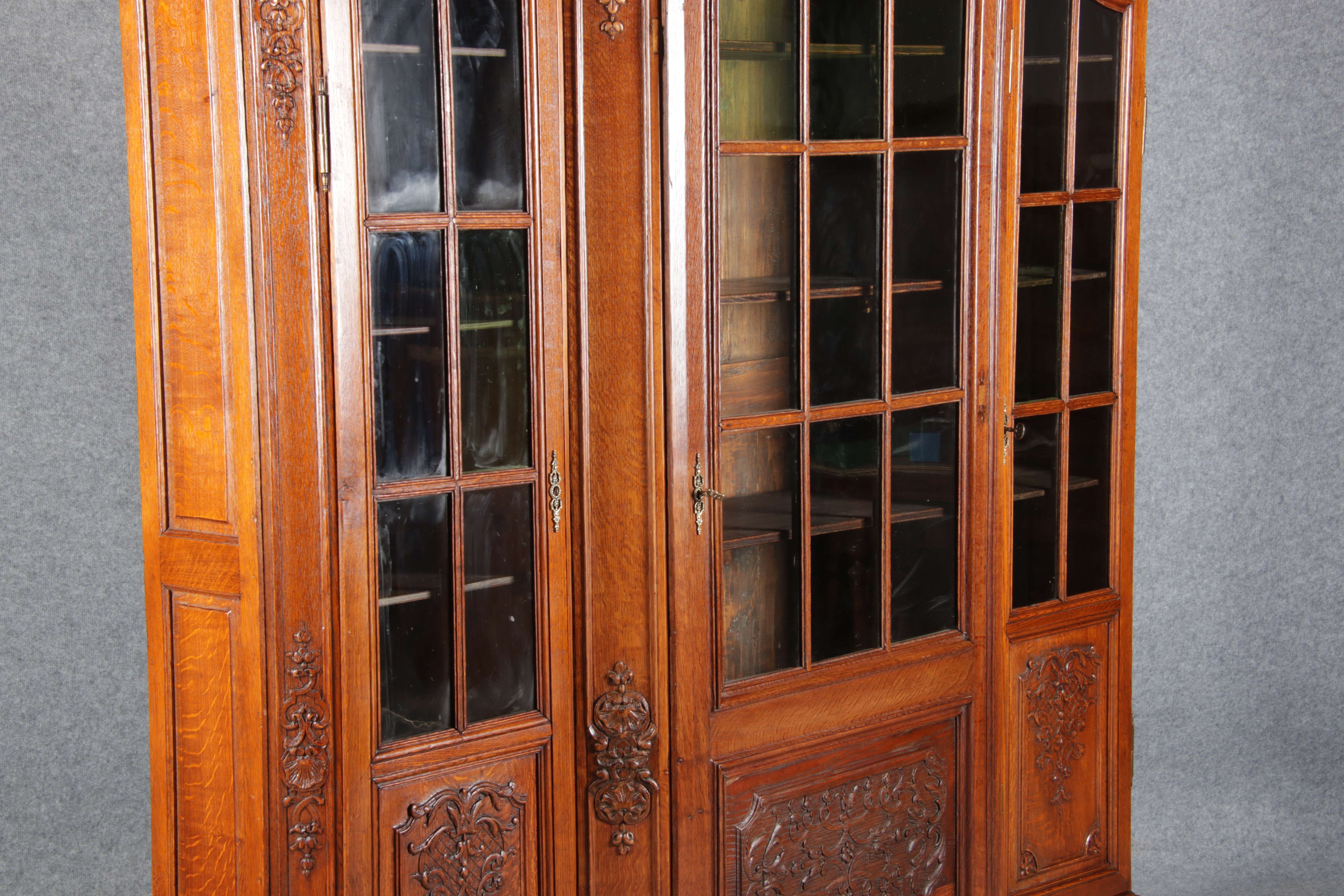 Antike Aachen Lüttich Barockvitrine drei türige Eiche 19 Jh. Schnitzereien |