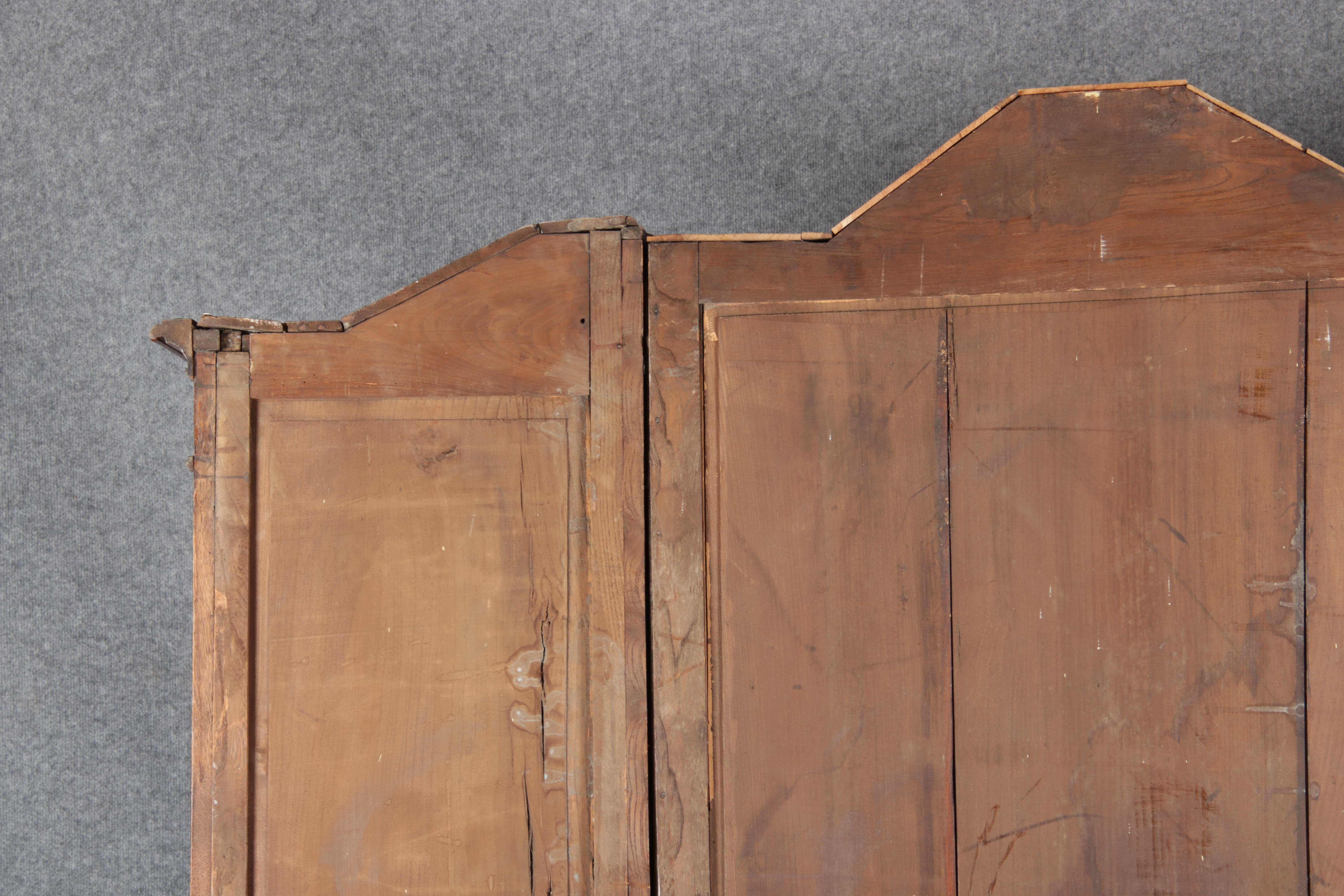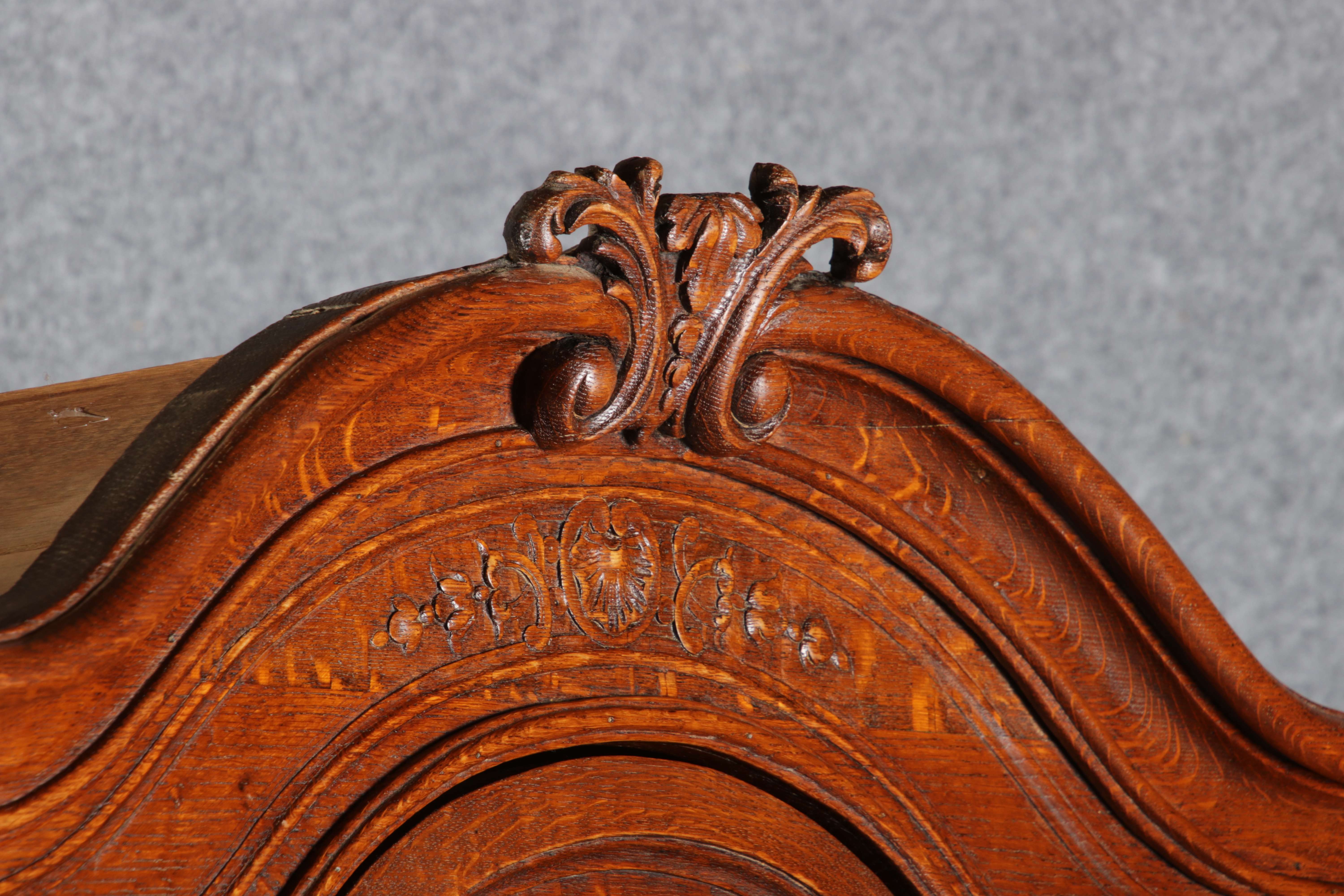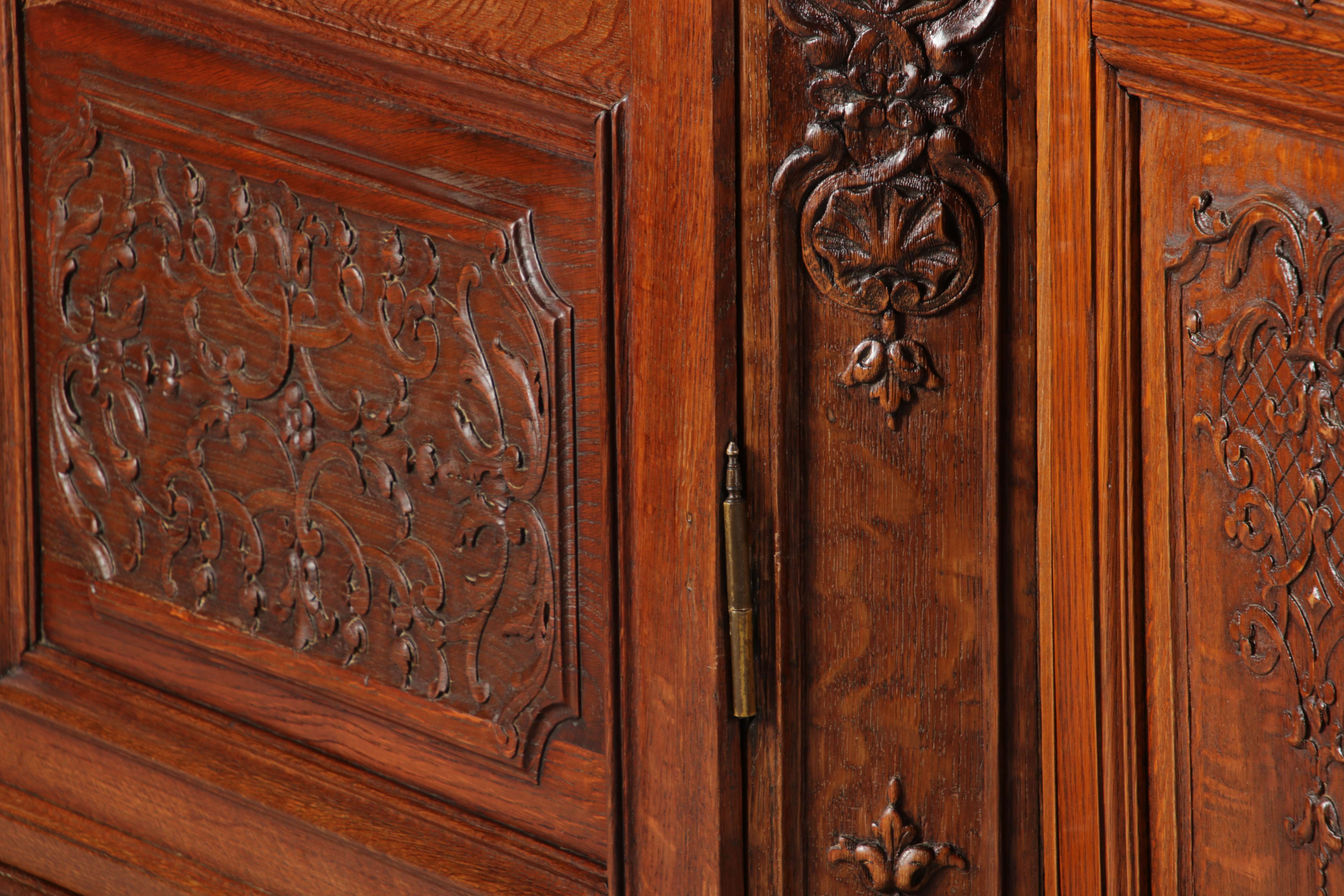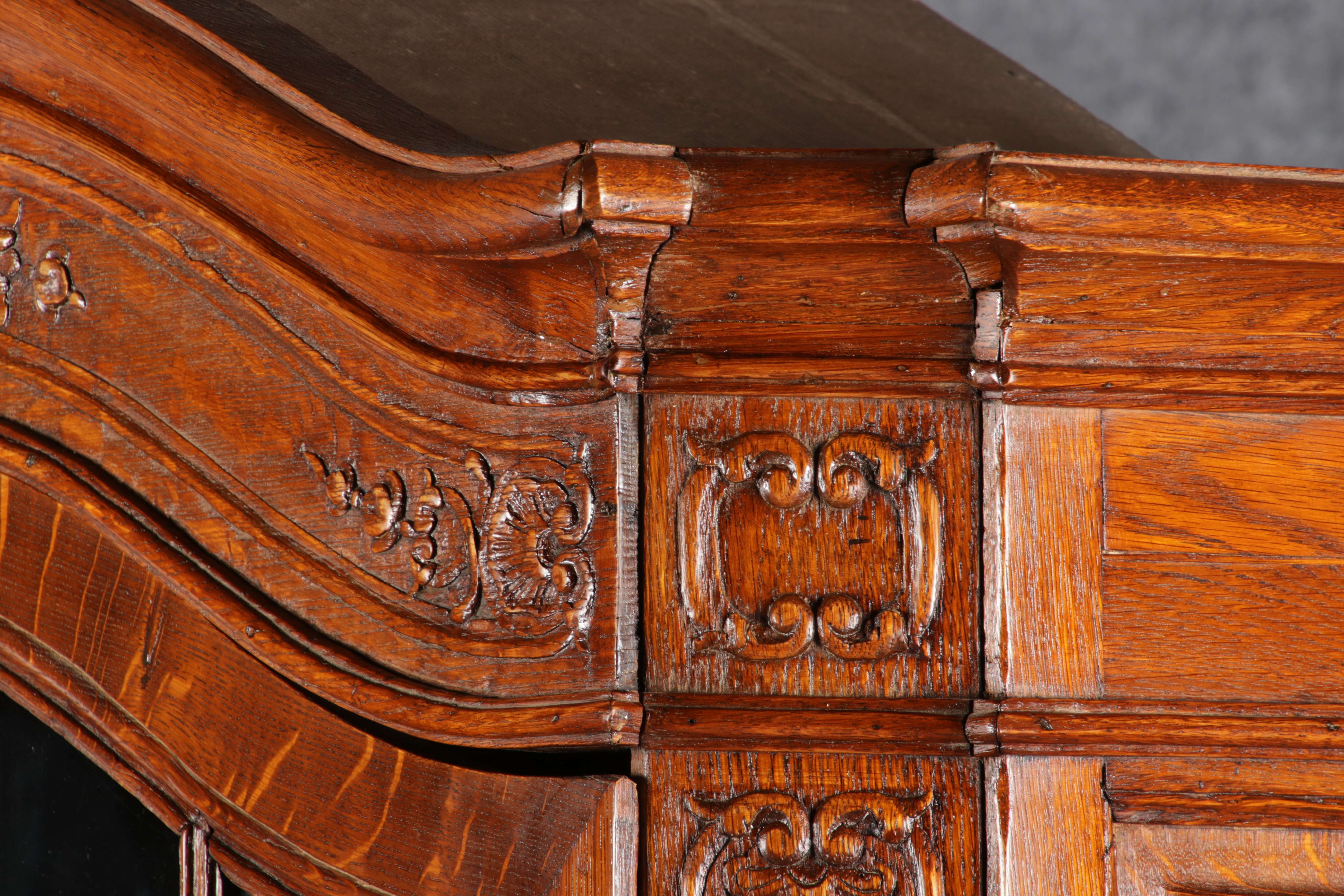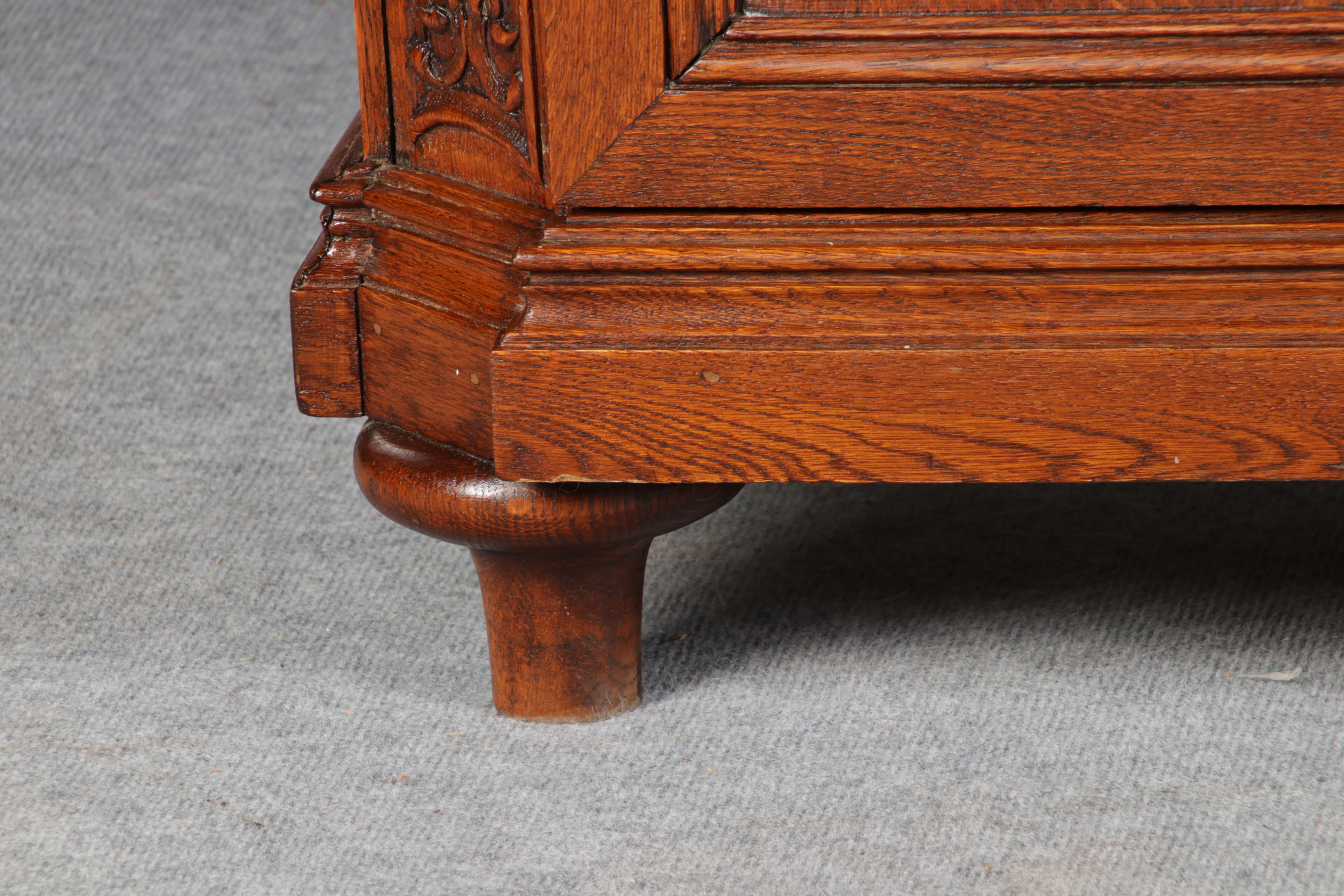 Antike Aachen Lüttich Barockvitrine drei türige Eiche 19 Jh. Schnitzereien |