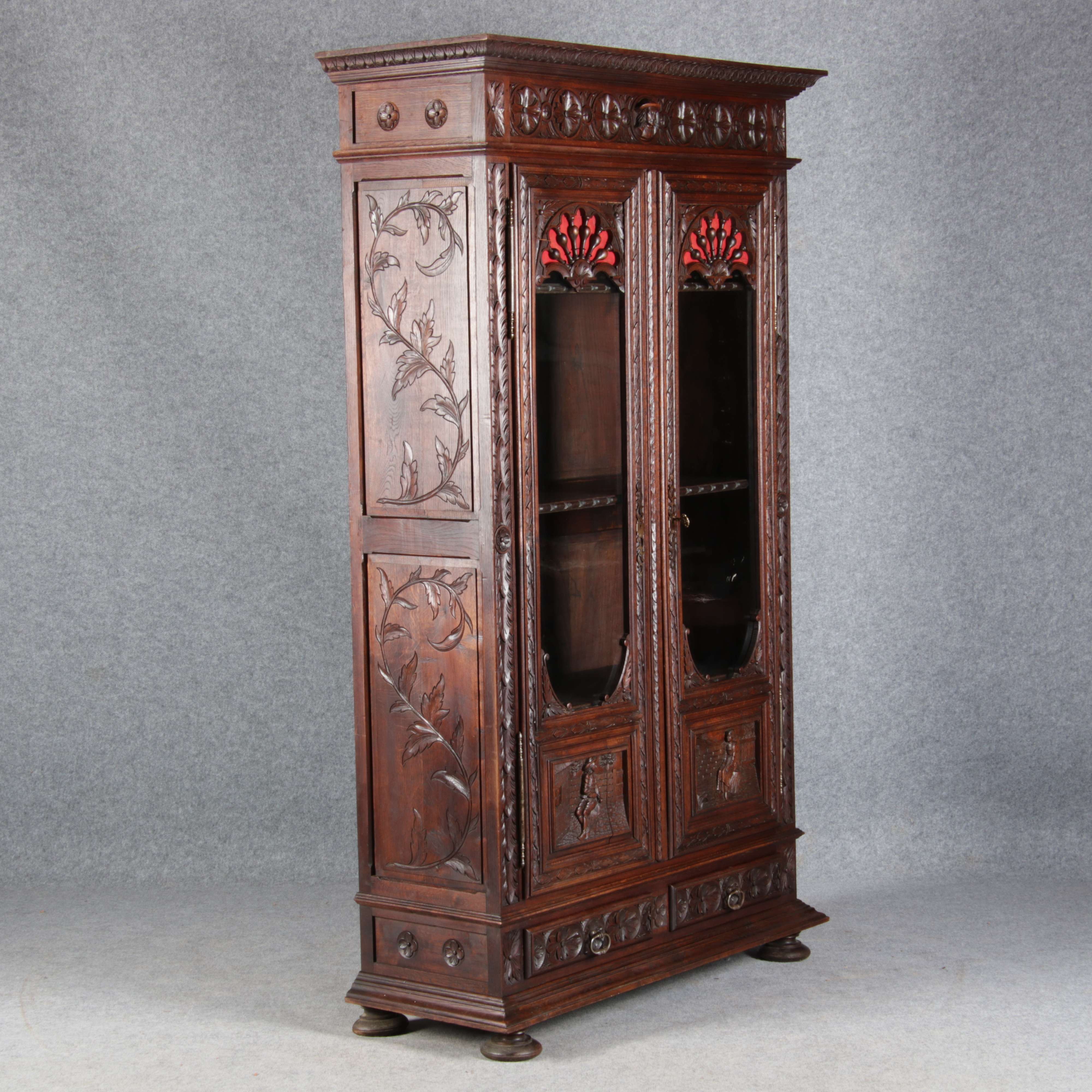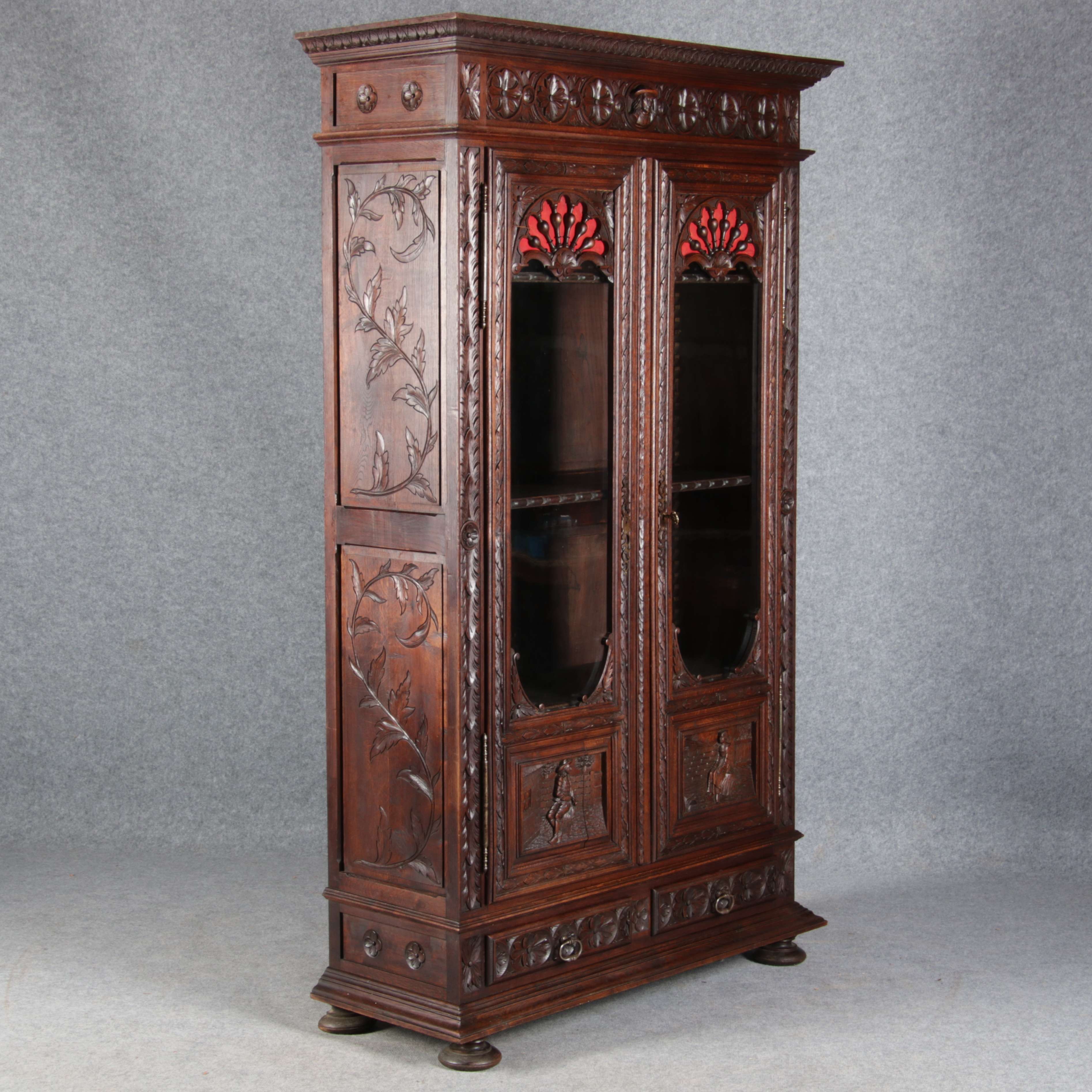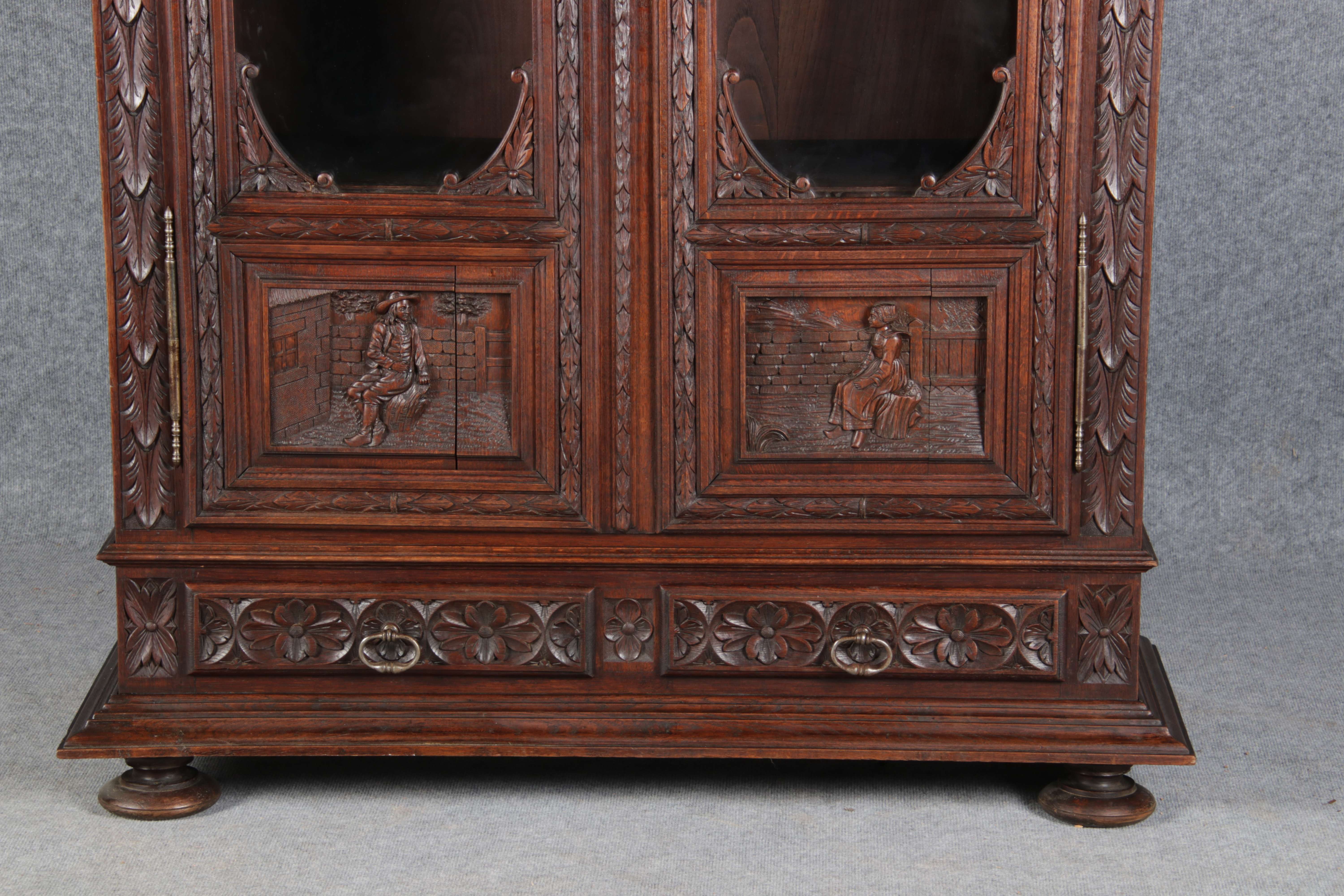 | Antike Bretonischer Gründerzeit Historismus Vitrine 19 Jh. Eiche Schnitzereien | ||||||||||||||||||||||||||||||||||||||||||||||||||||||||||||||||||