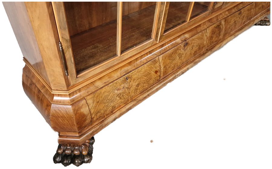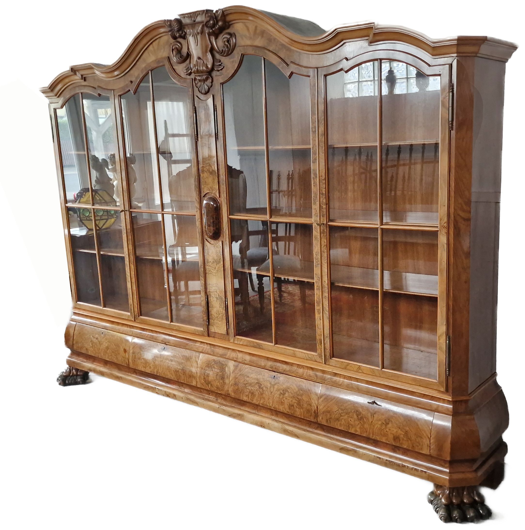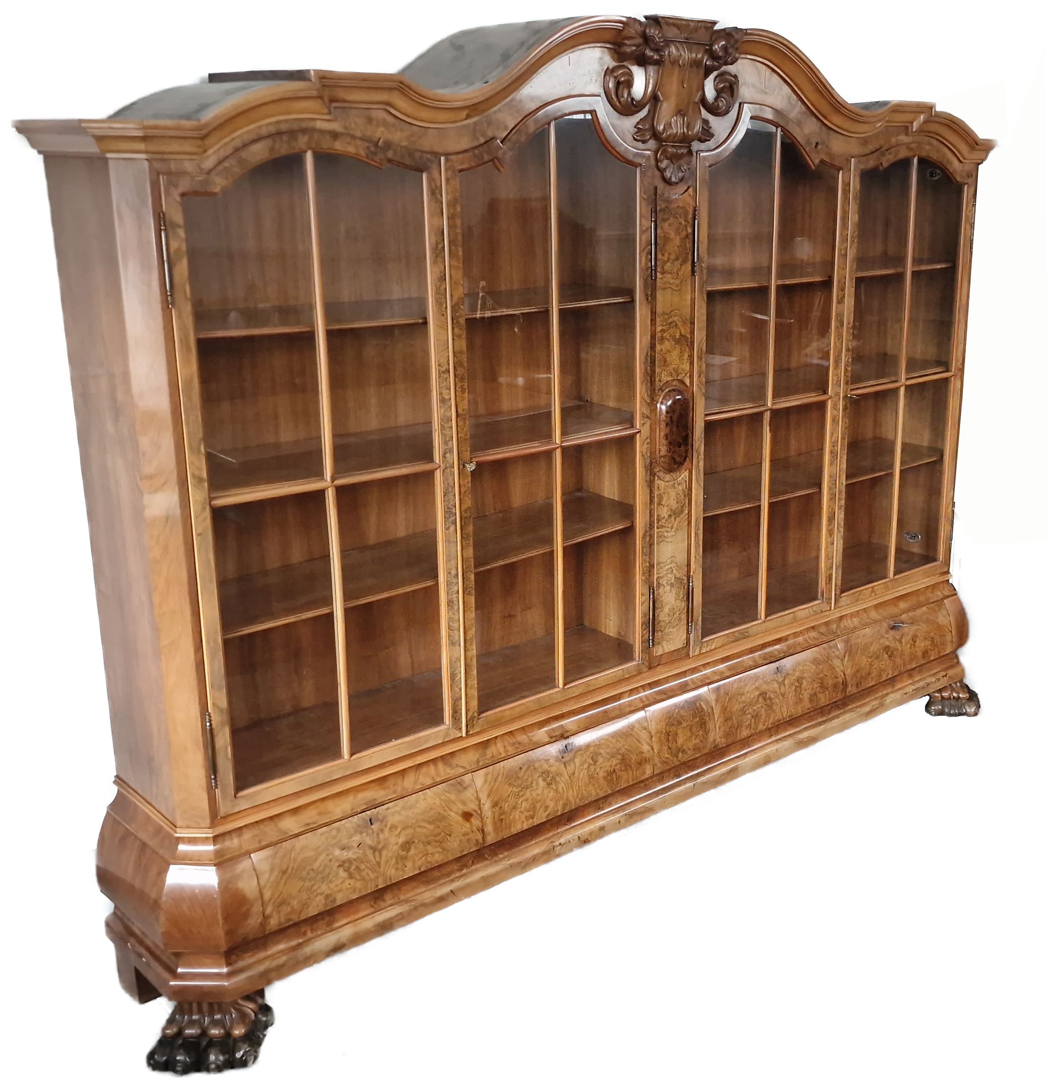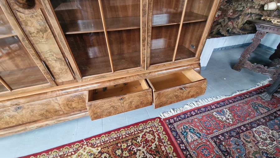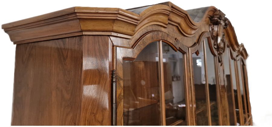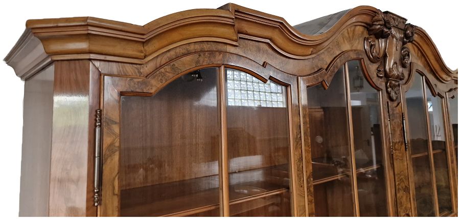 Beschreibung/description: Sehr große Antike Vitrine / Bücherschrank 281 Breit, um 1900, Nussbaum Furniert ArtikelNummer /number: vi104