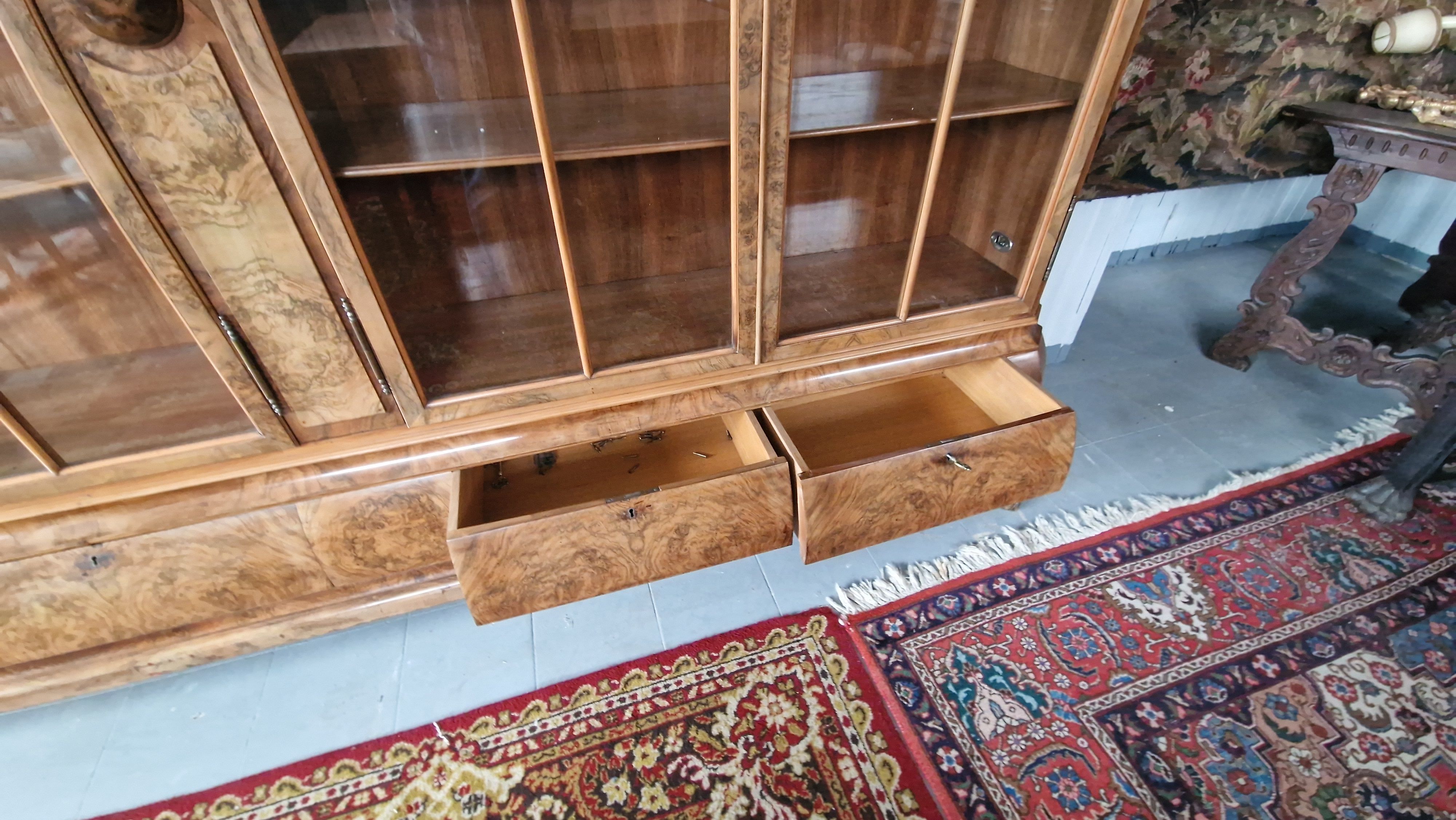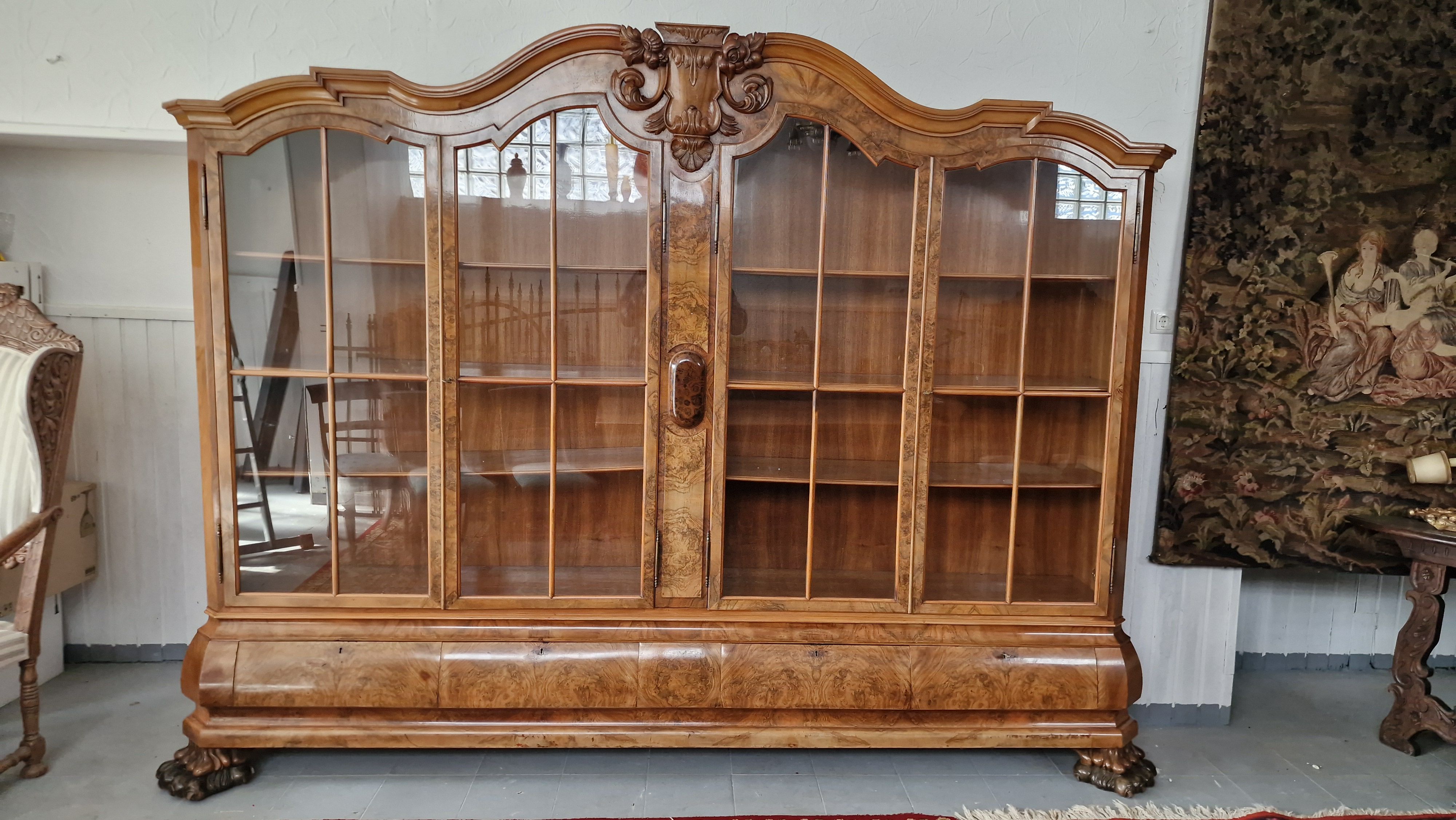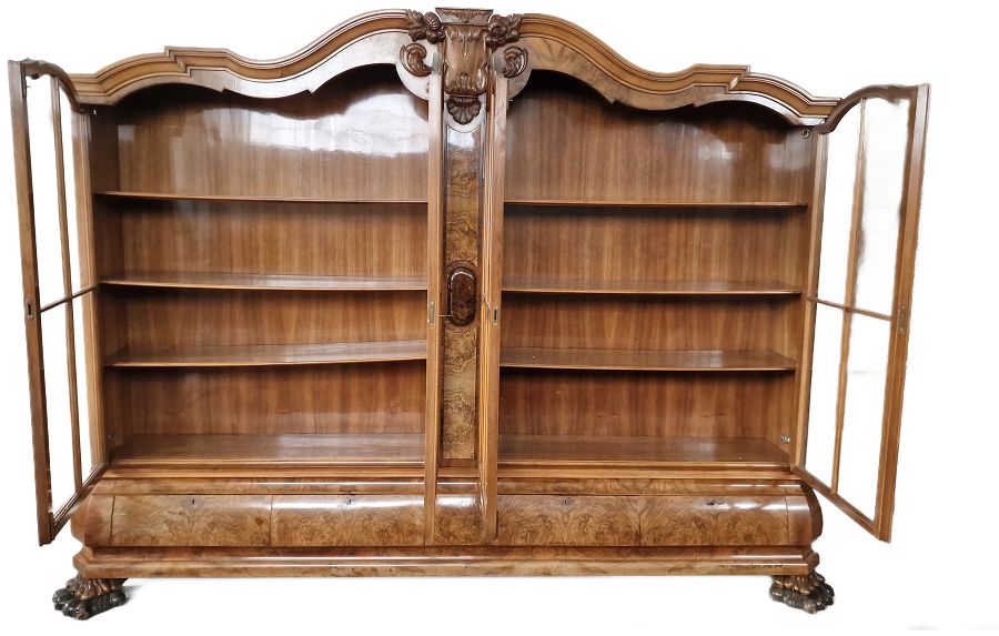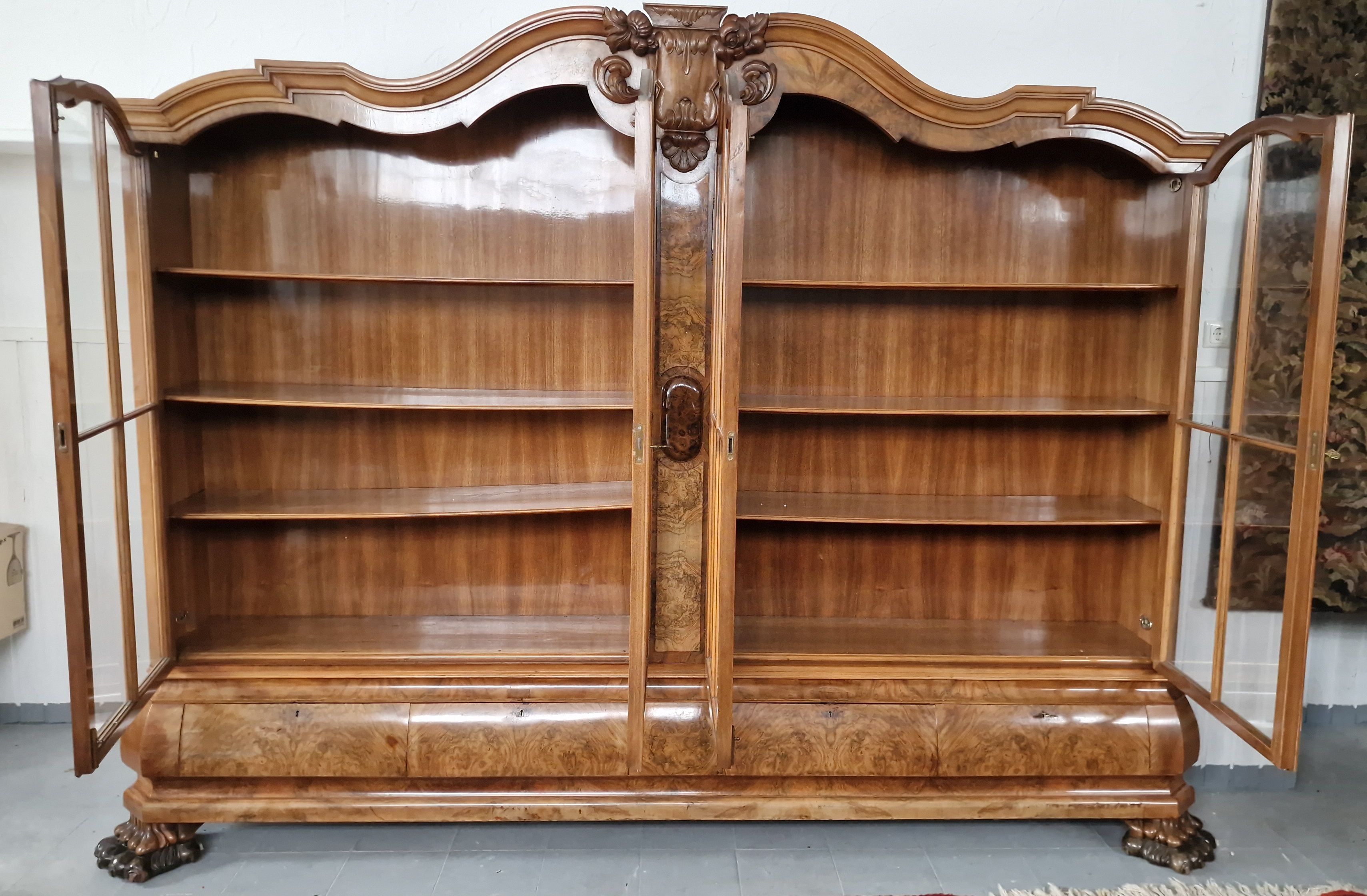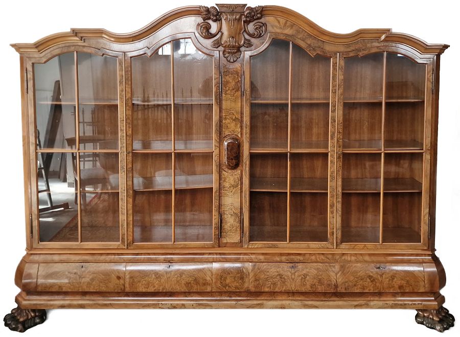 Beschreibung/description: Sehr große Antike Vitrine / Bücherschrank 281 Breit, um 1900, Nussbaum Furniert ArtikelNummer /number: vi104