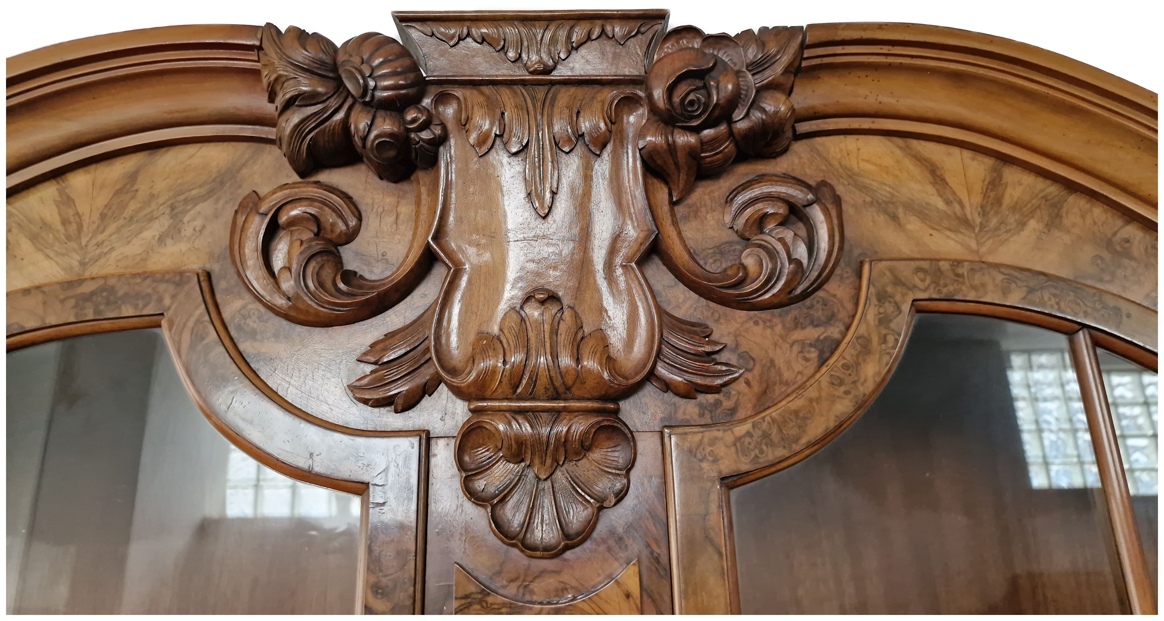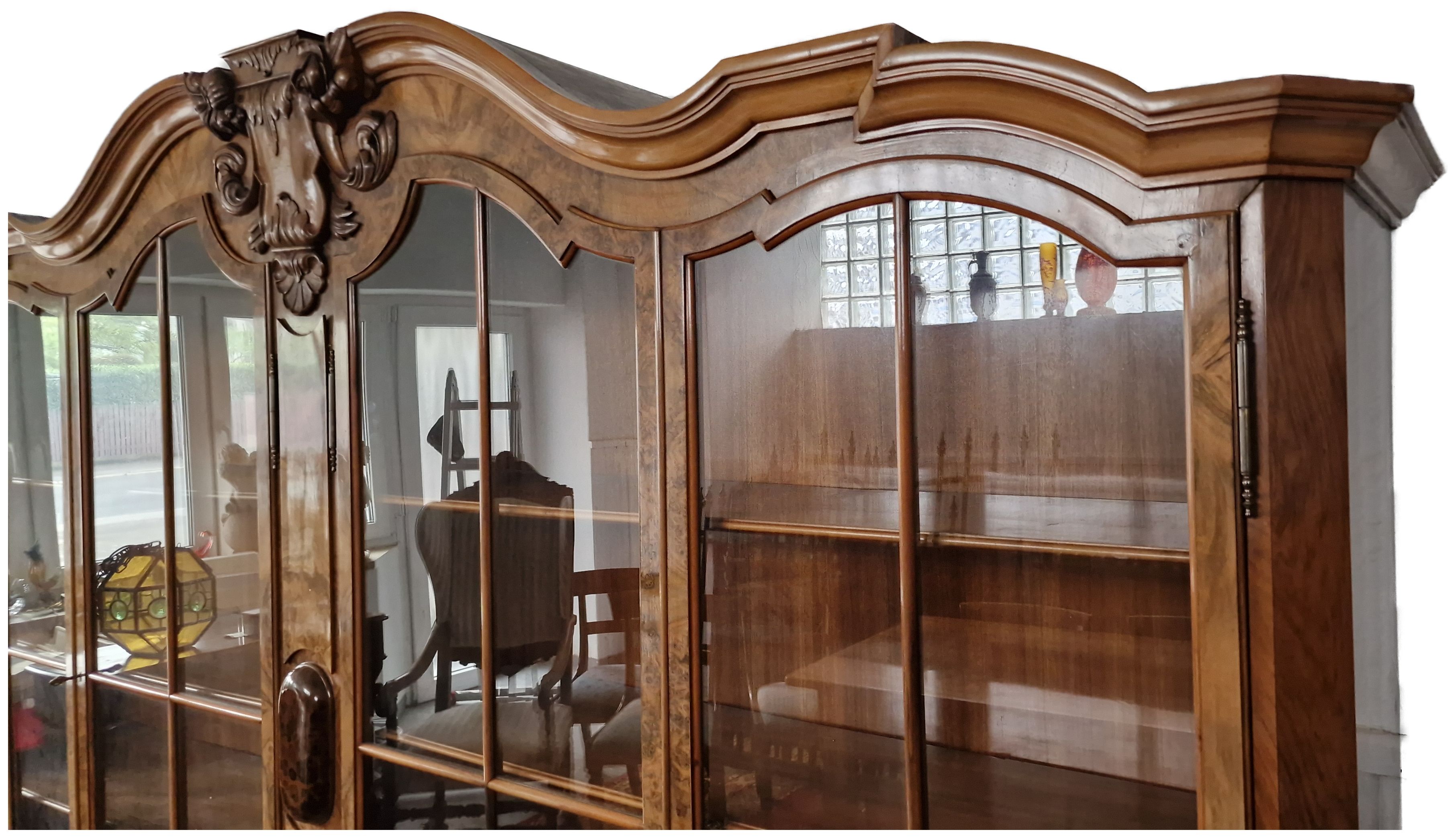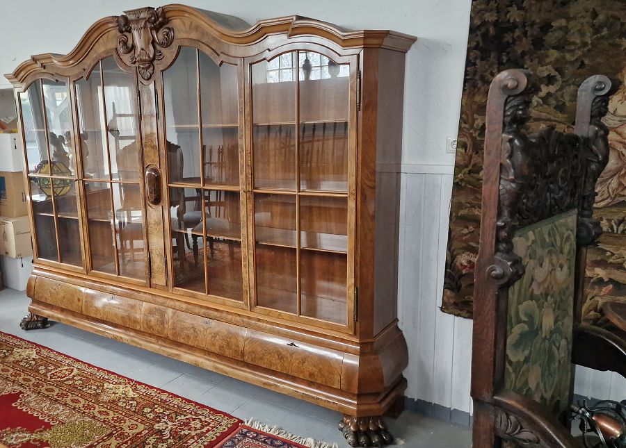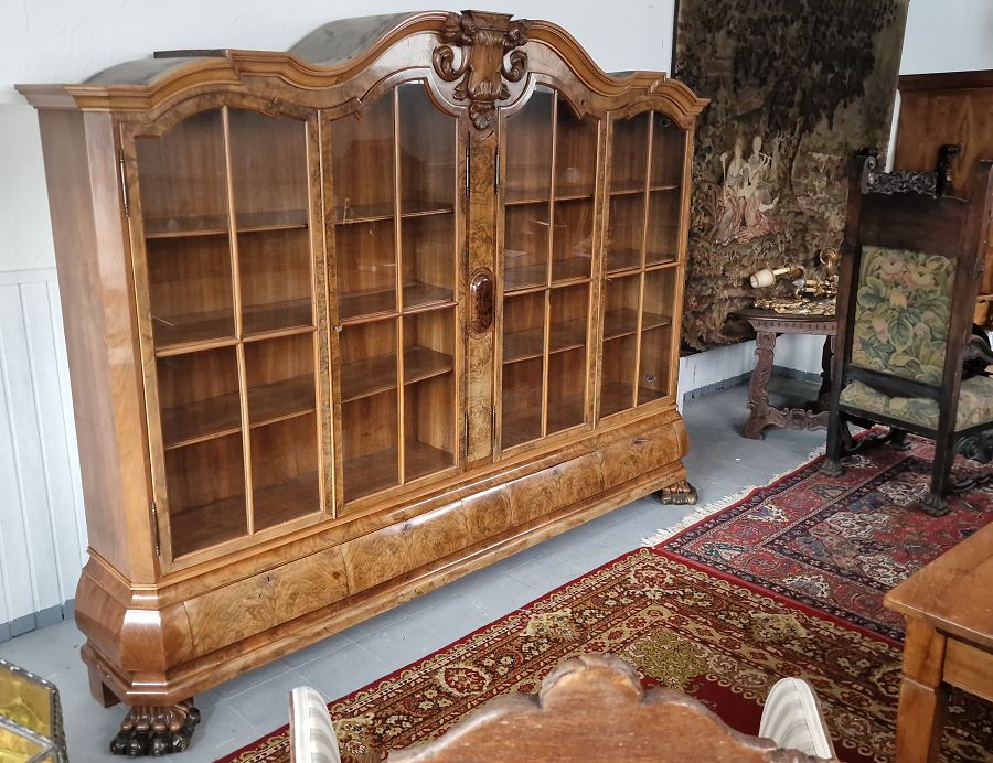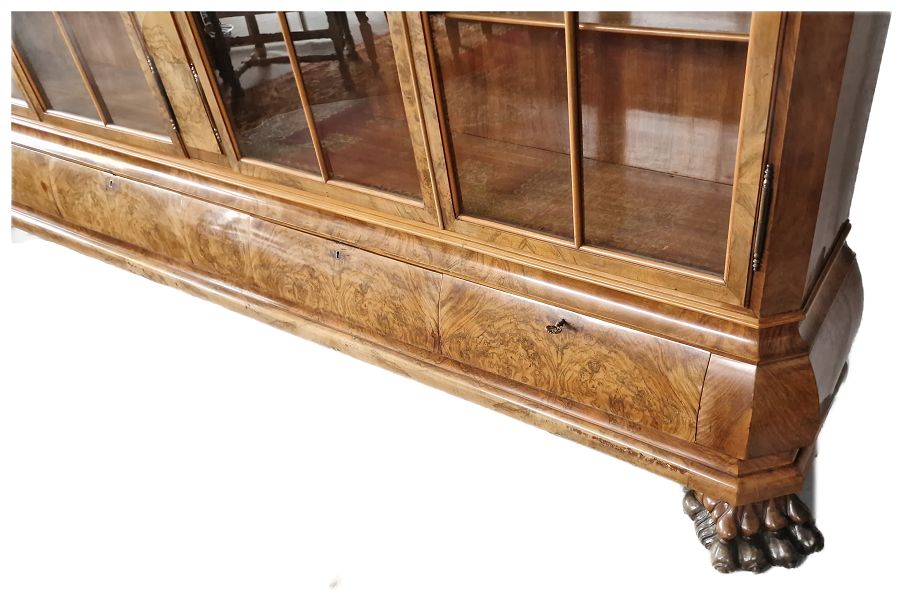 Beschreibung/description: Sehr große Antike Vitrine / Bücherschrank 281 Breit, um 1900, Nussbaum Furniert ArtikelNummer /number: vi104