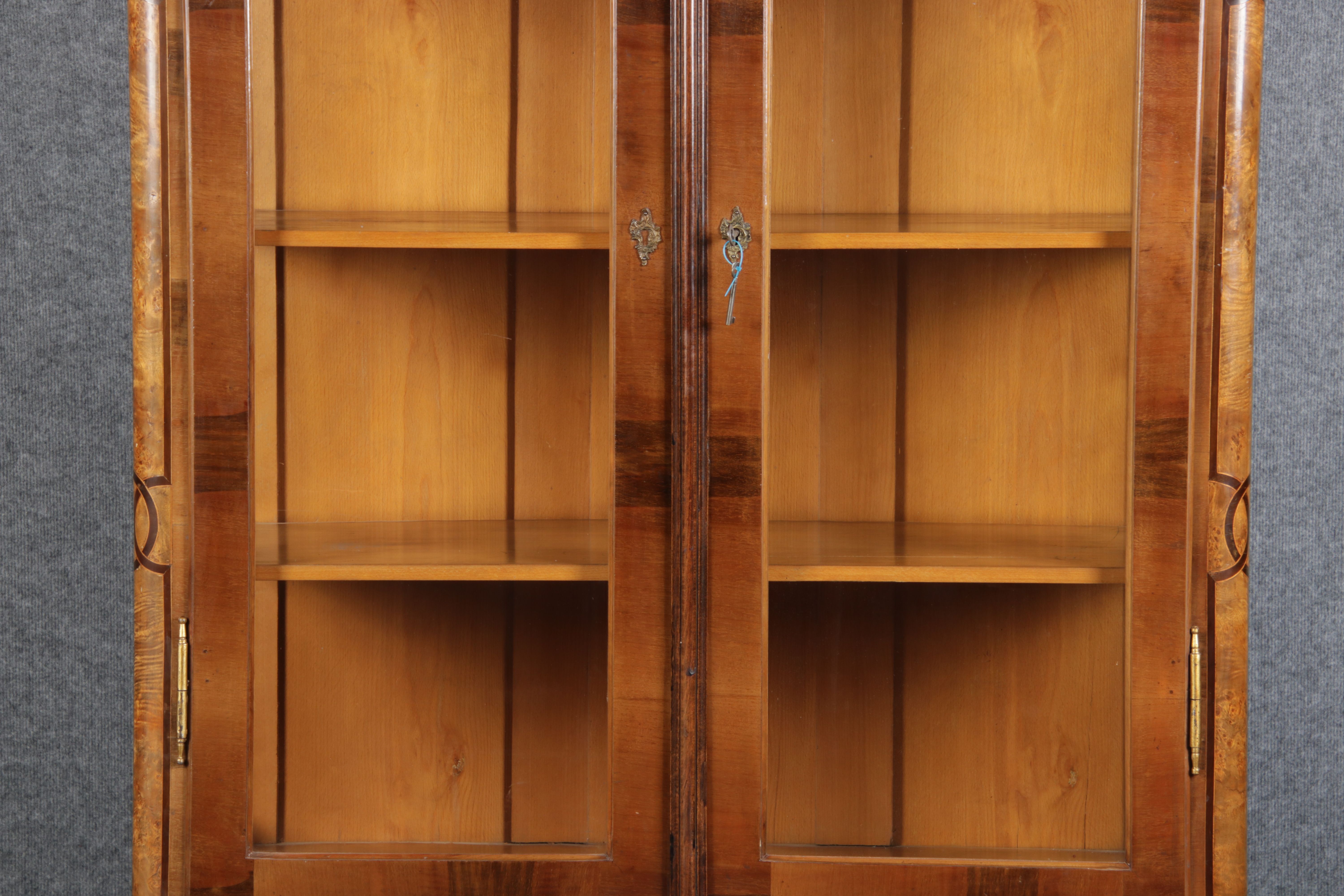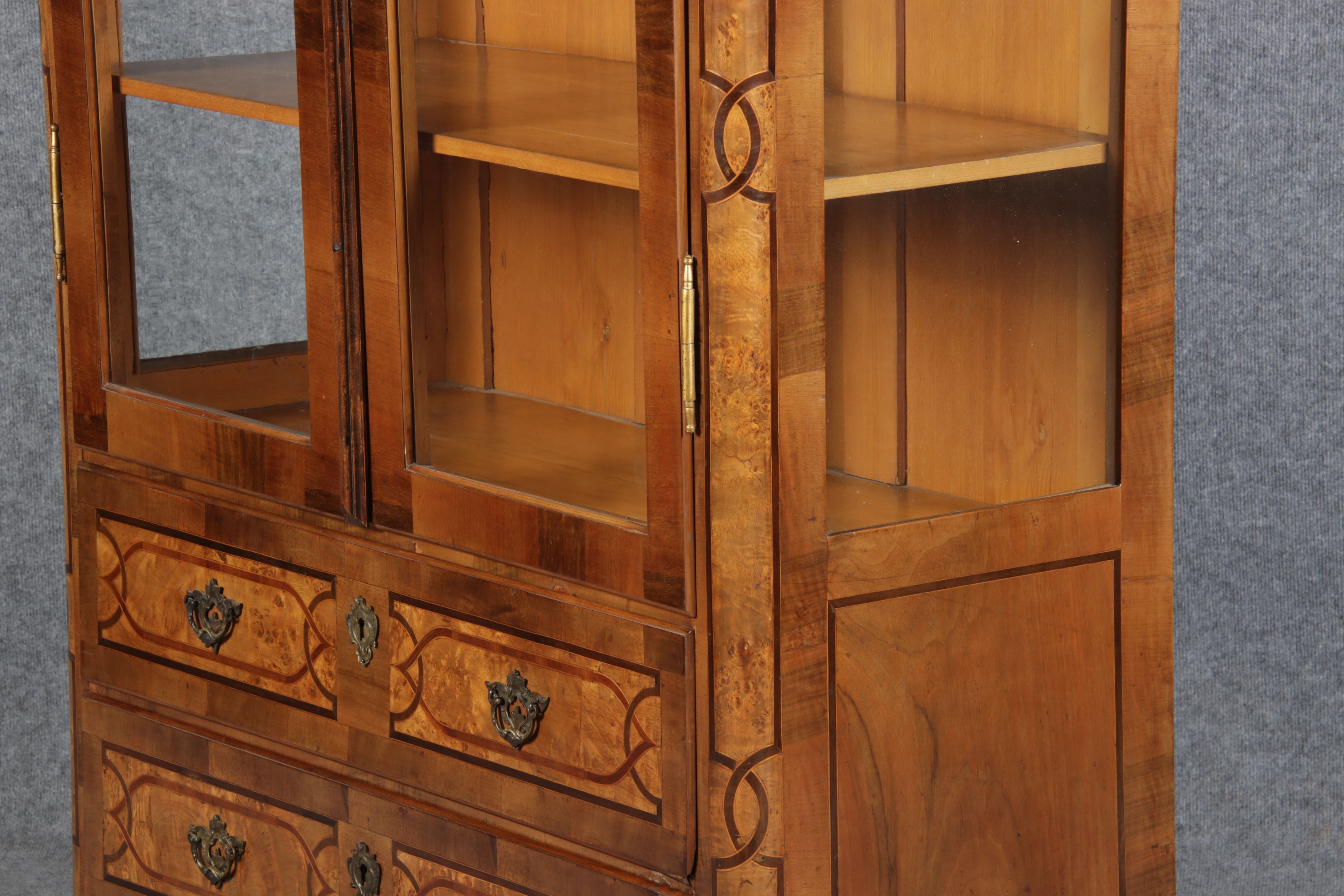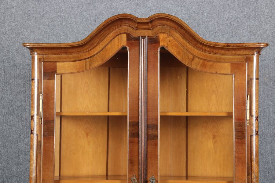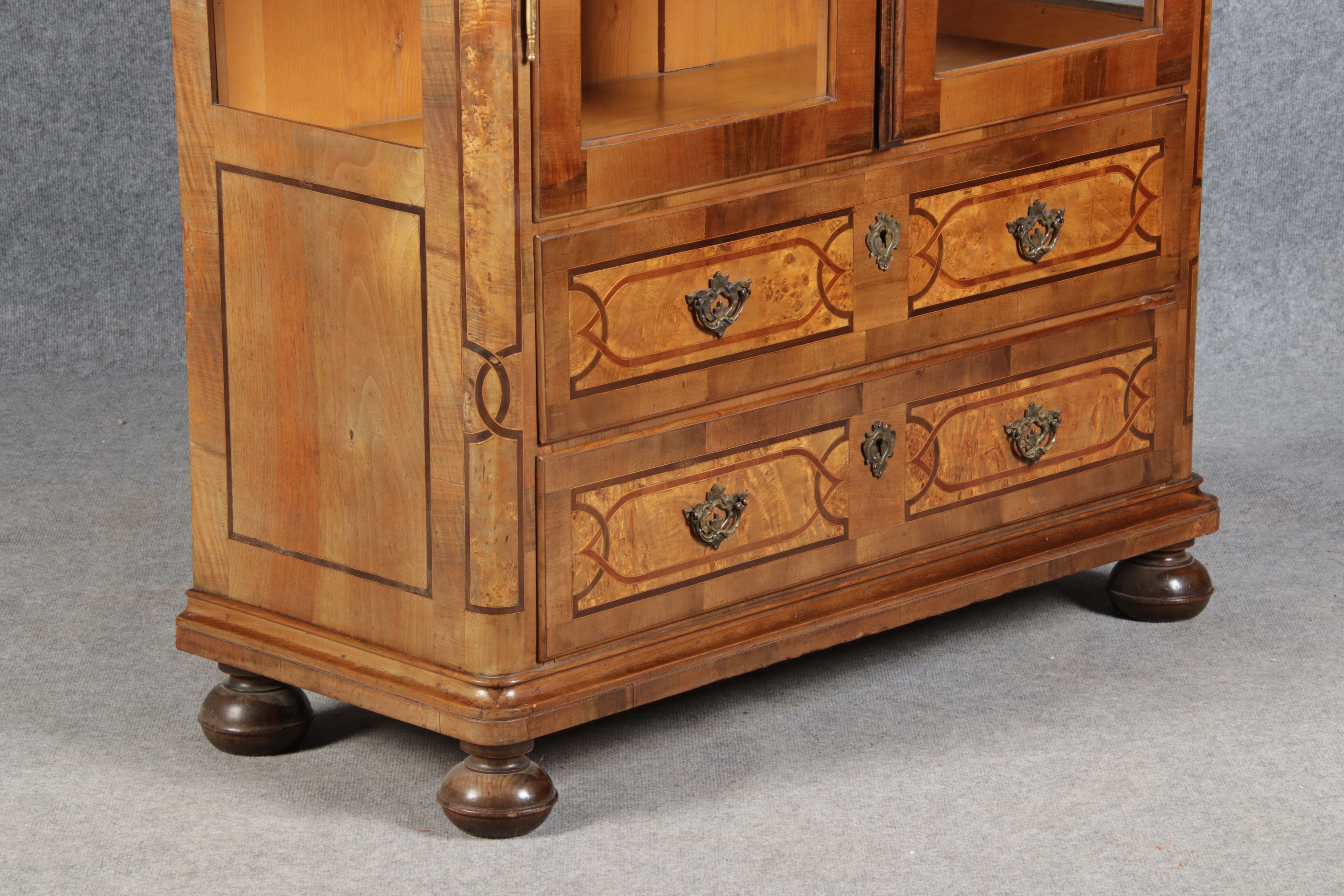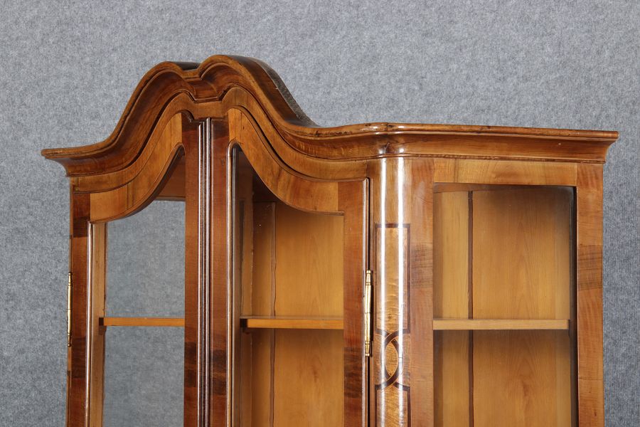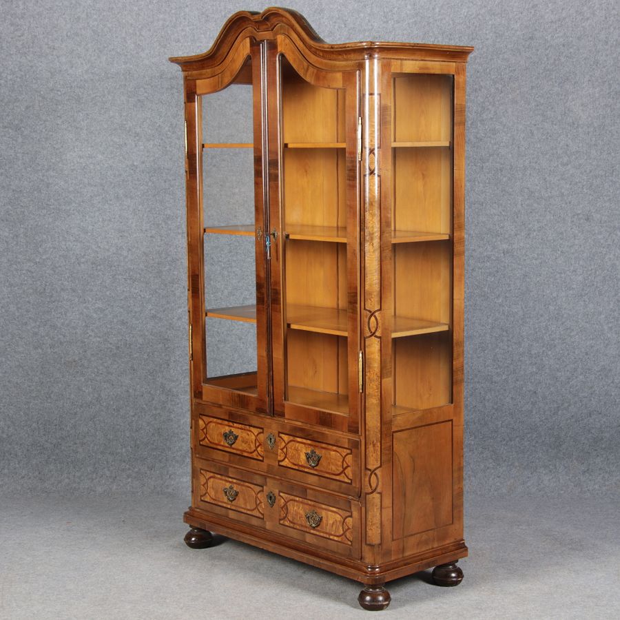 | Antike kleine Barock Vitrine Nussbaum Einlegearbeiten 19 Jh. |