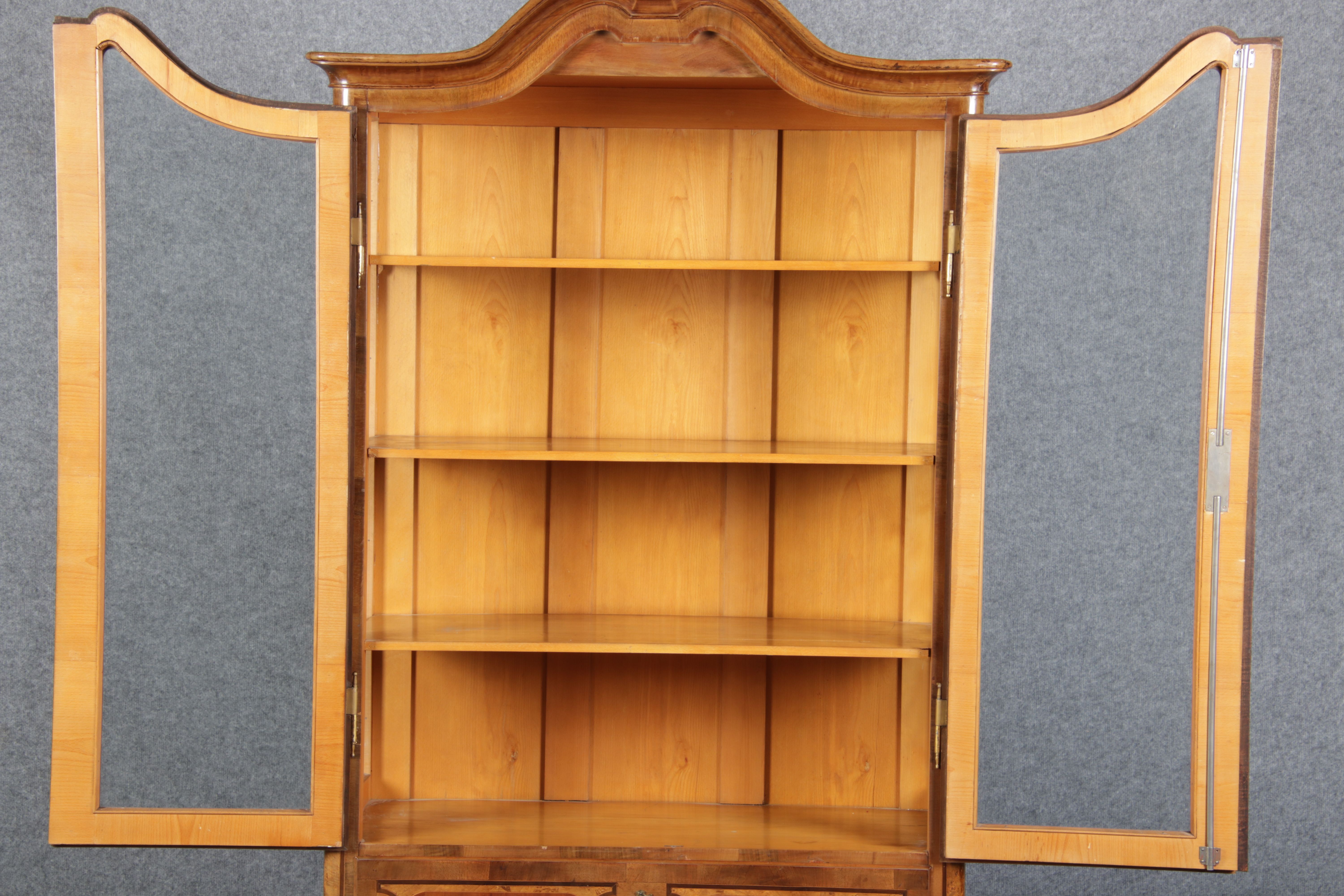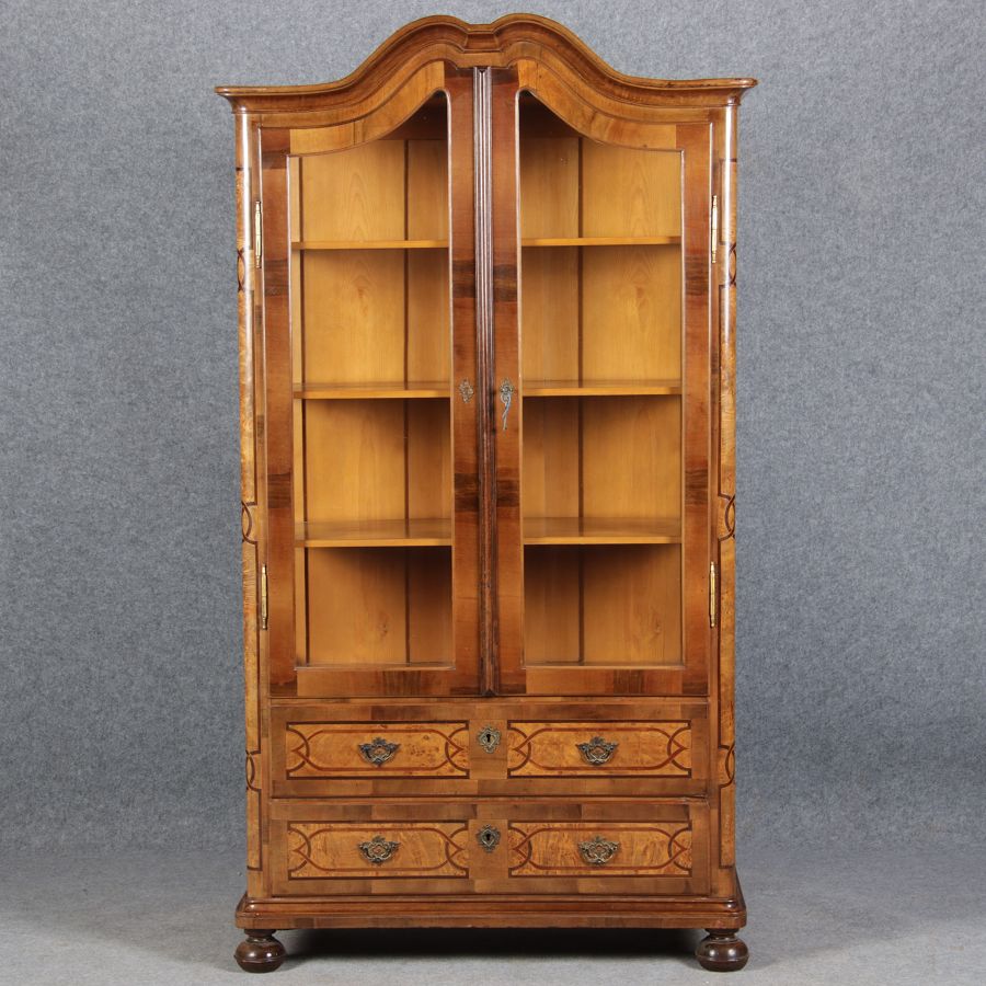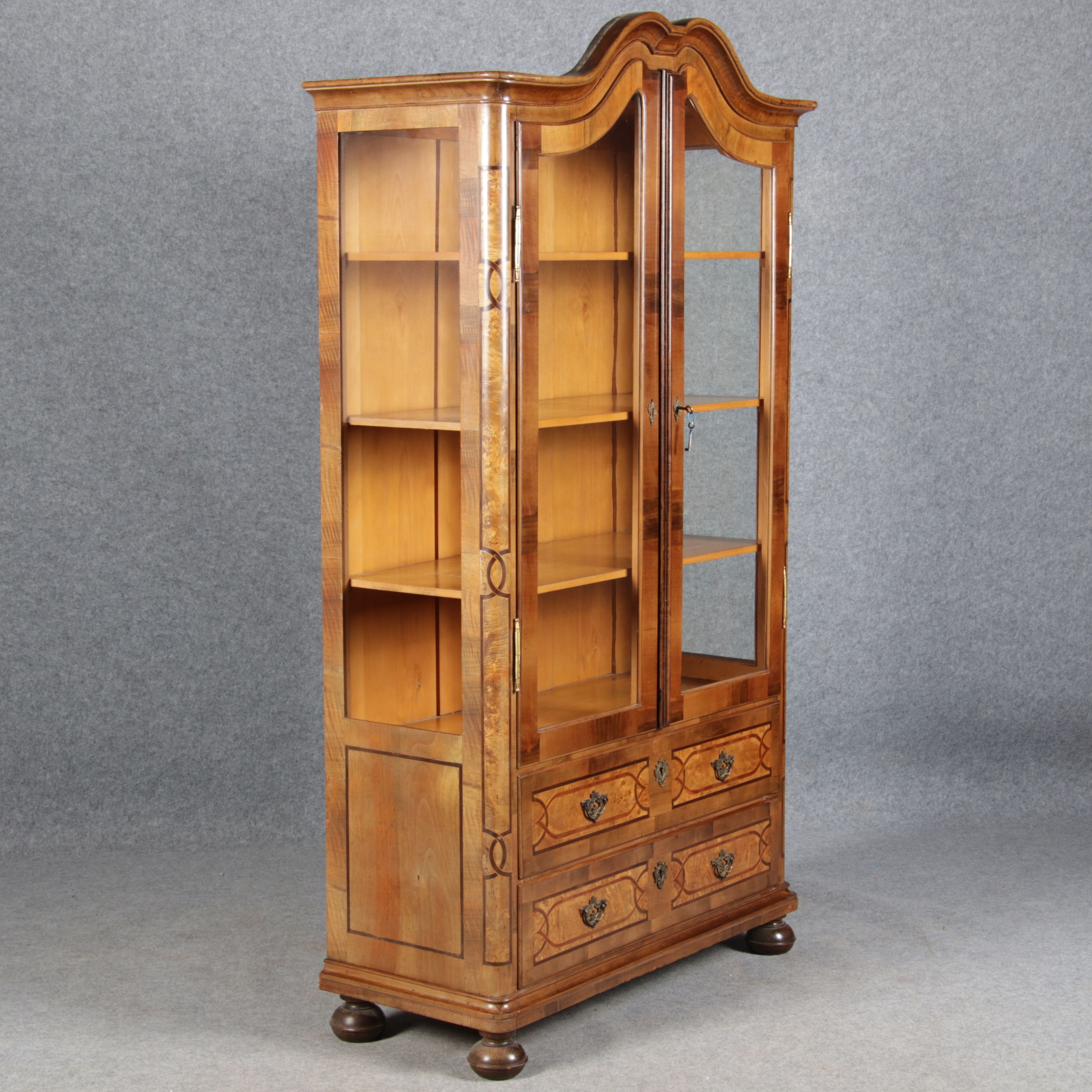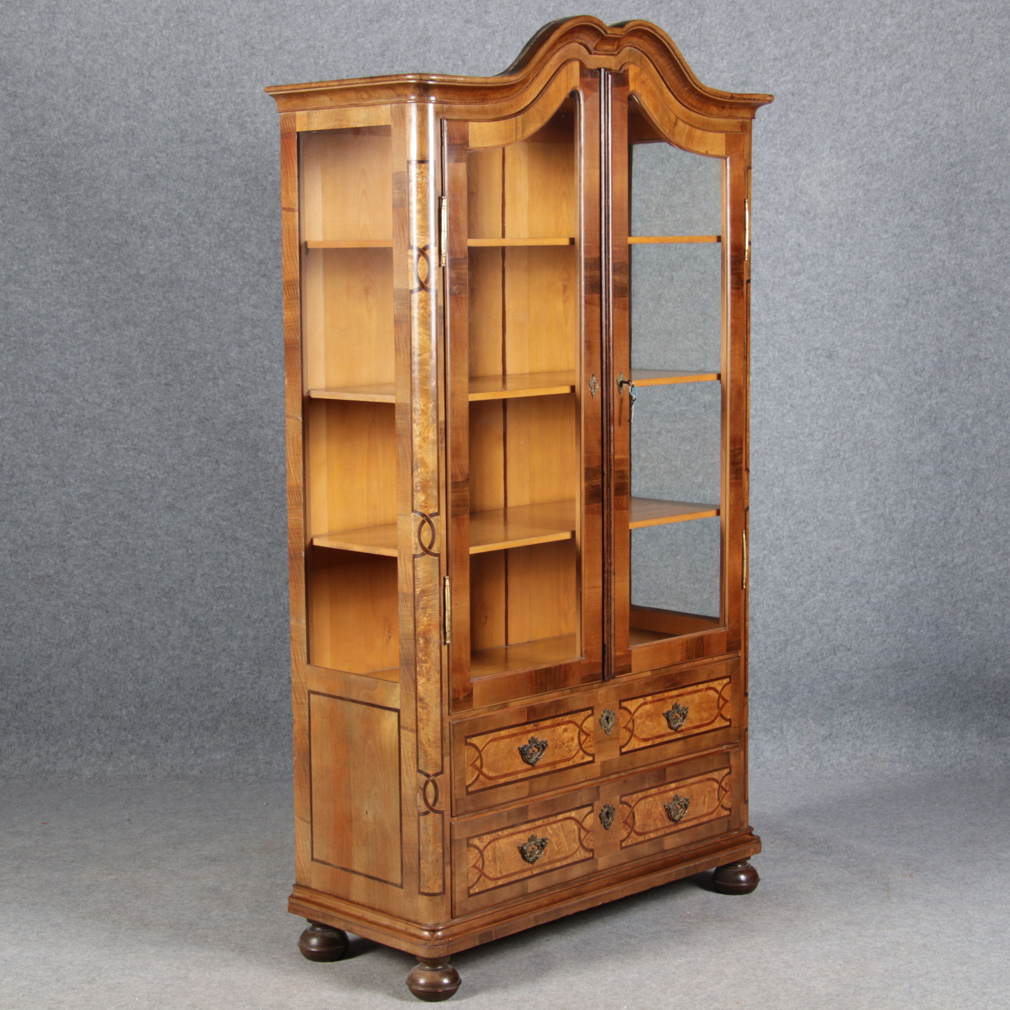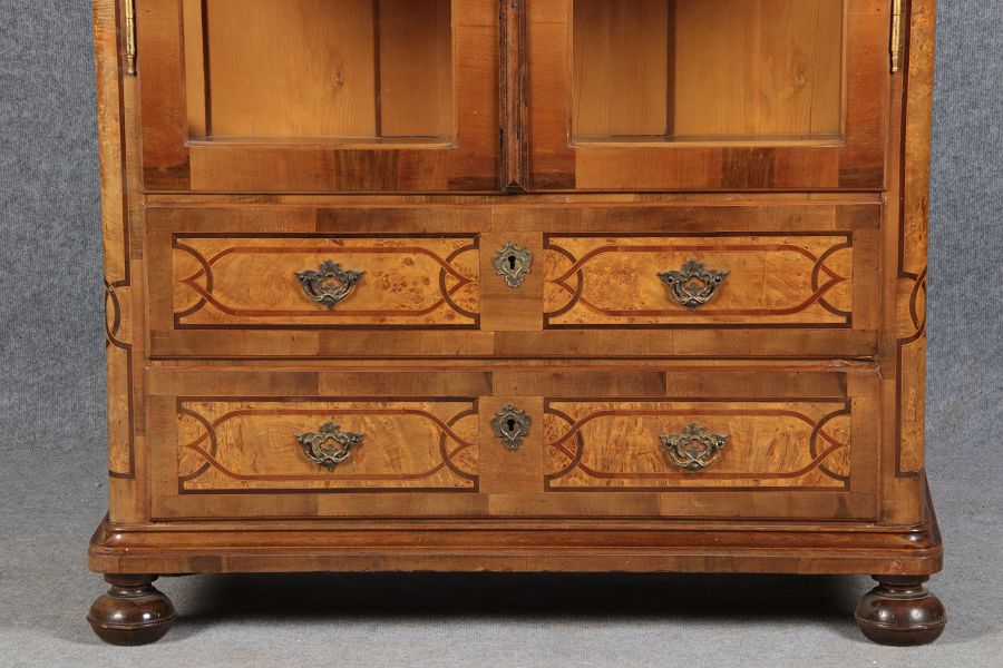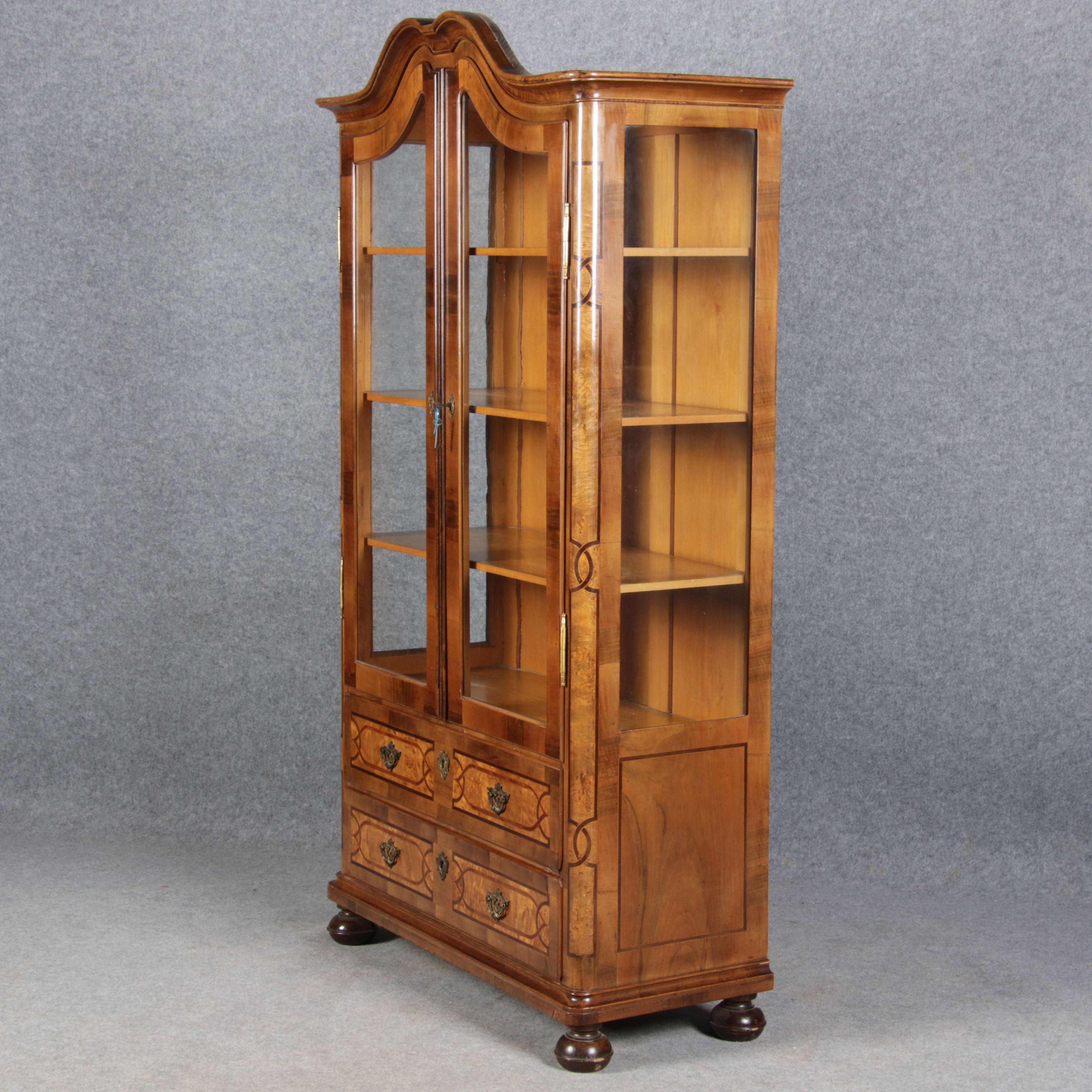 | Antike kleine Barock Vitrine Nussbaum Einlegearbeiten 19 Jh. |