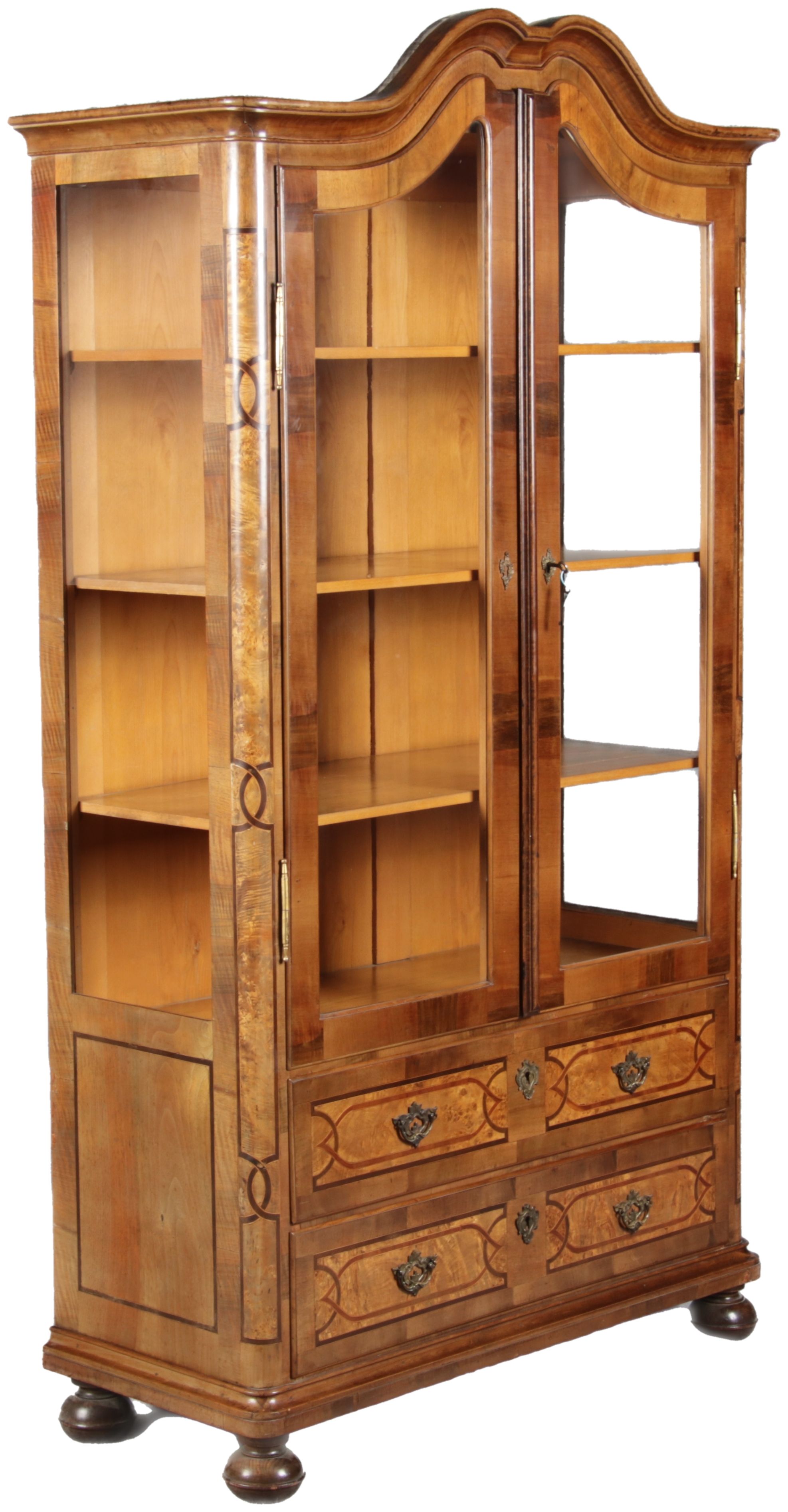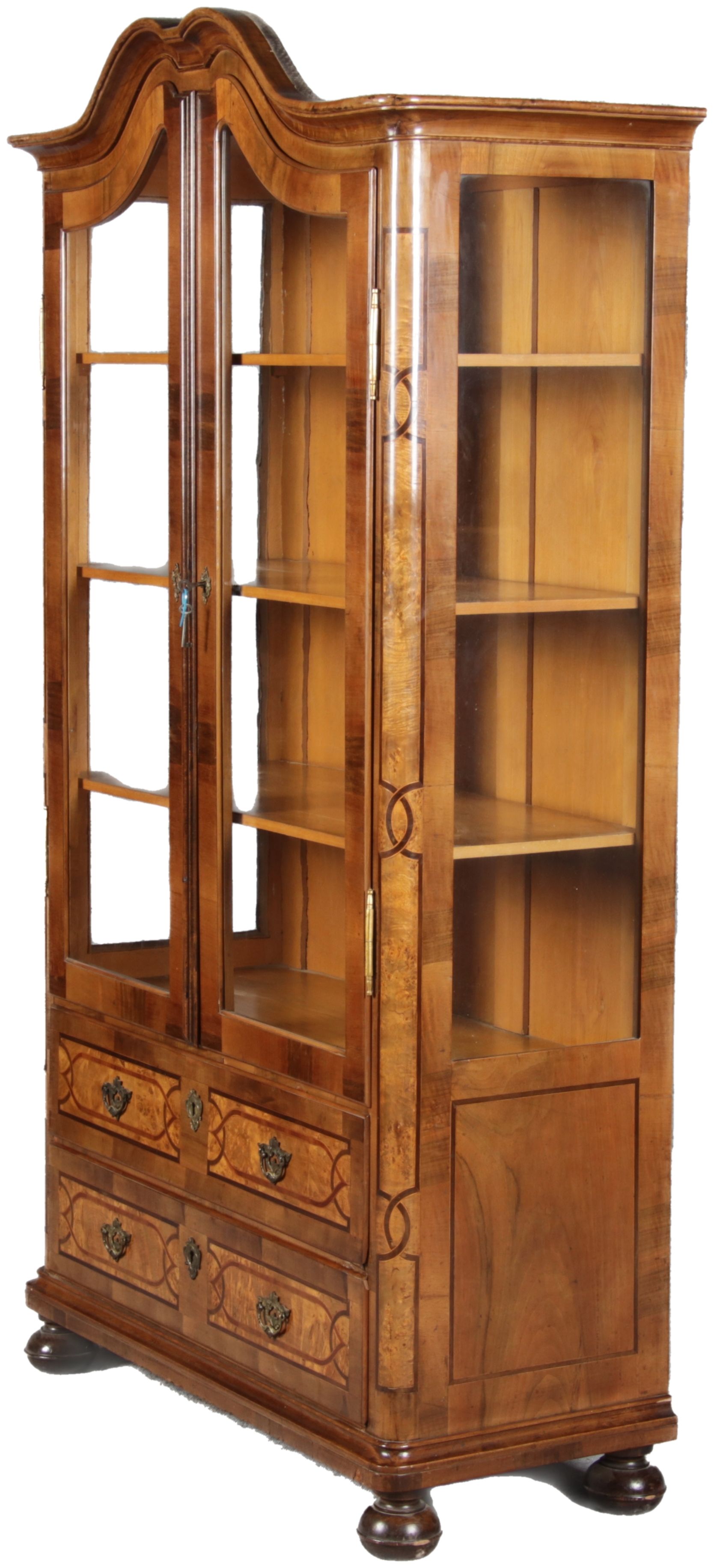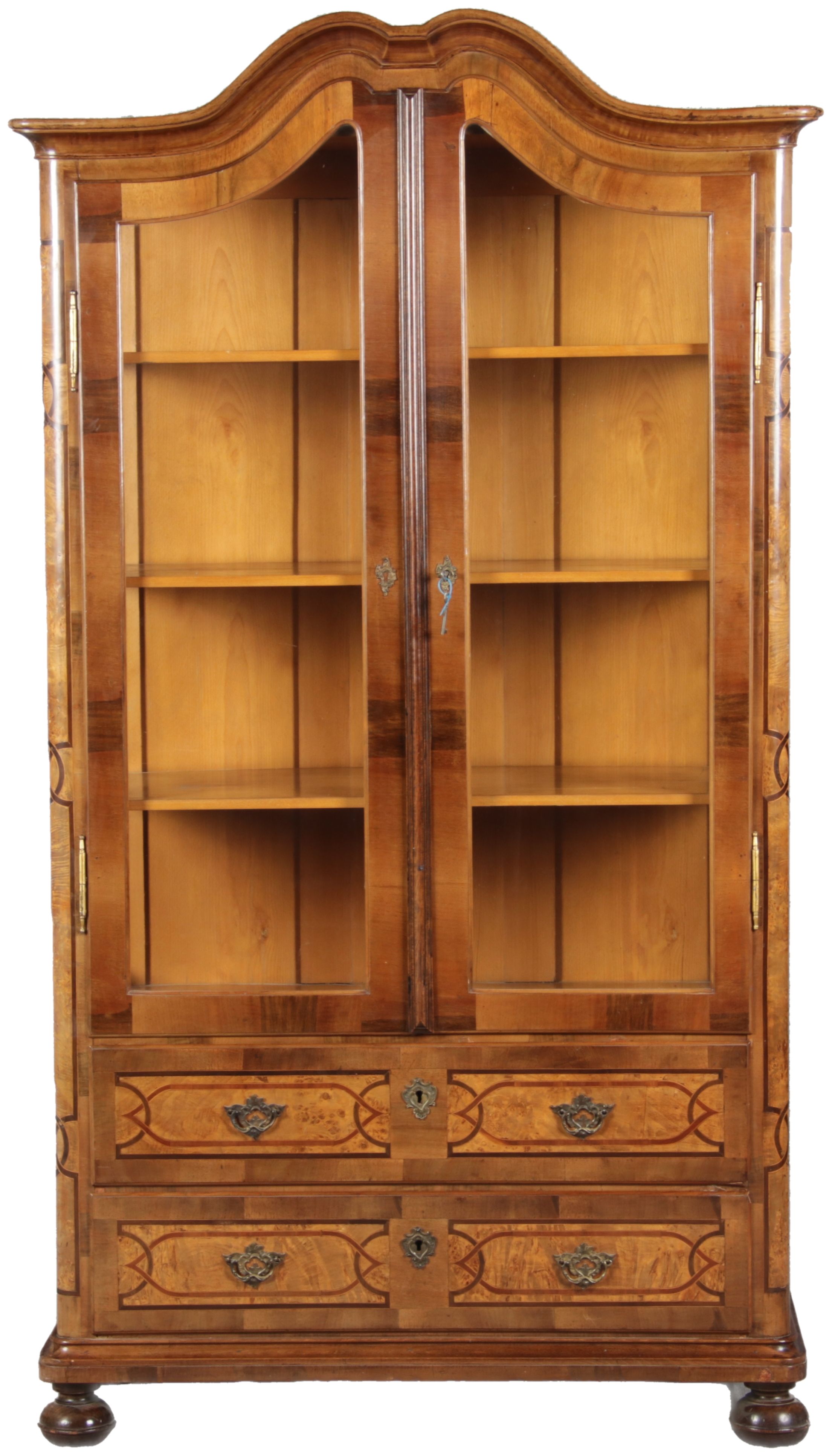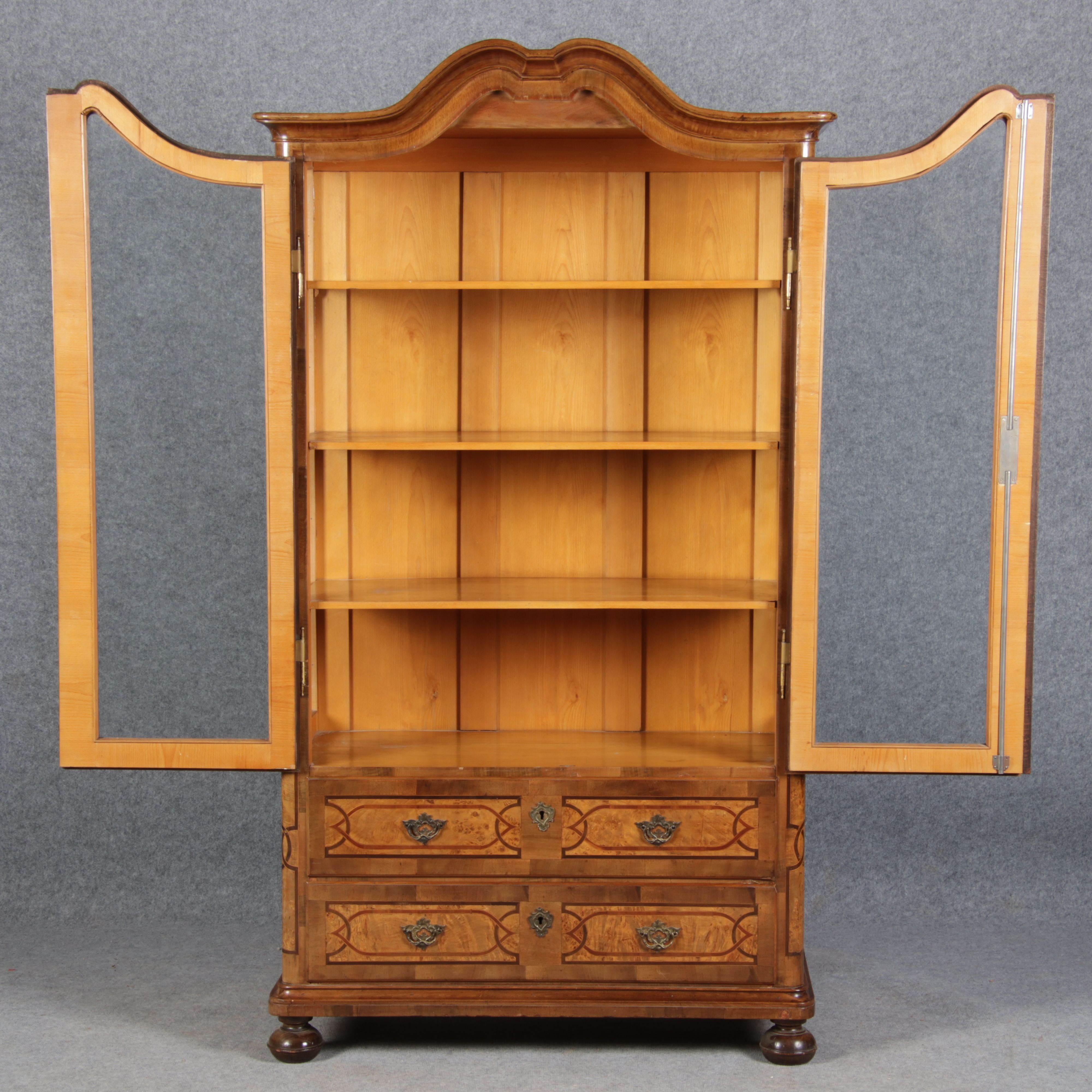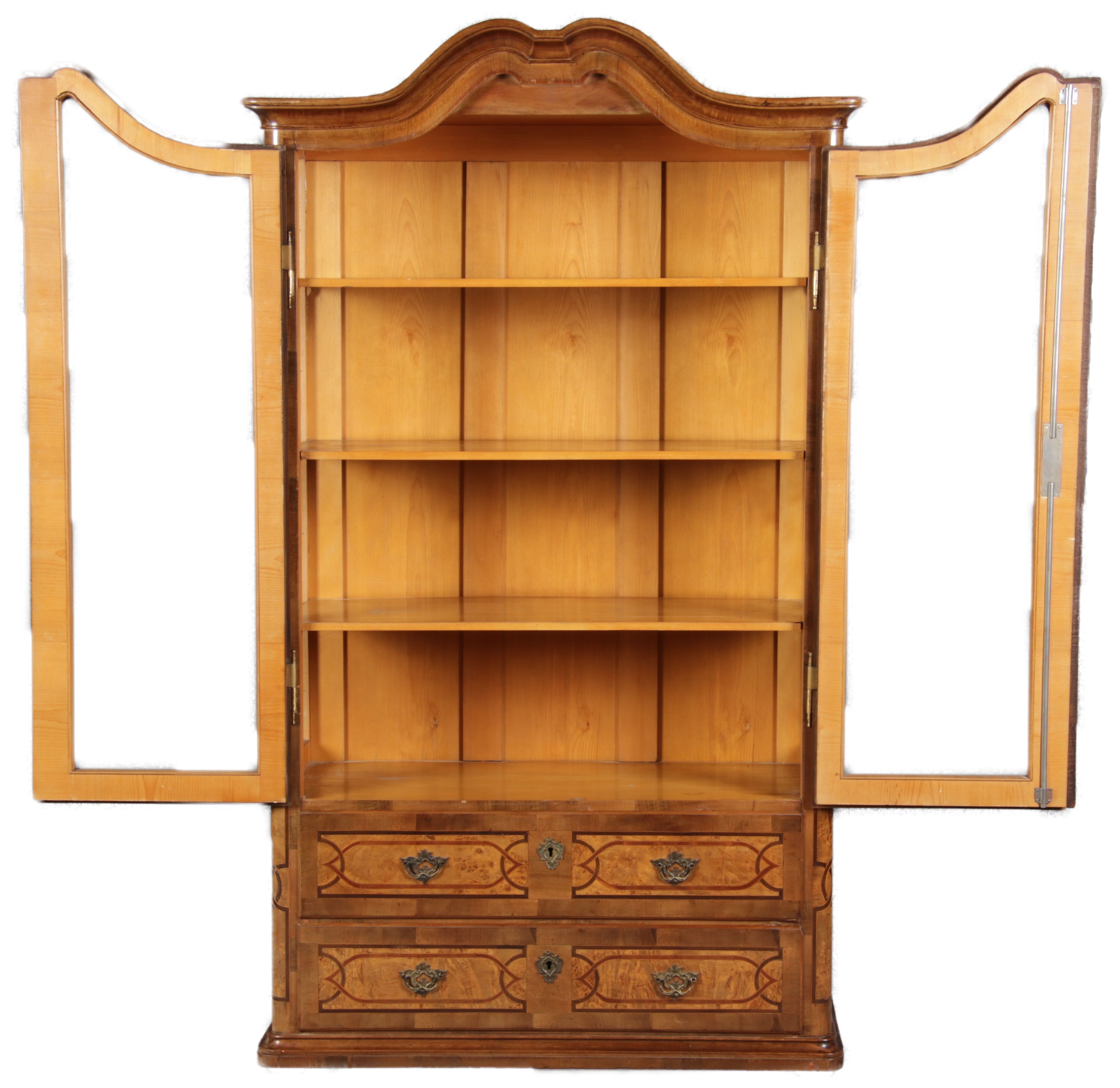 | Antike kleine Barock Vitrine Nussbaum Einlegearbeiten 19 Jh. |