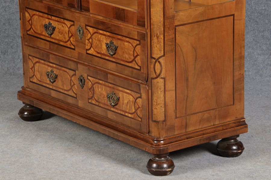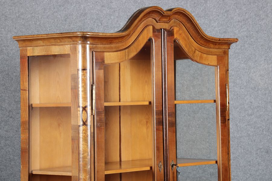 kleine Barock Vitrine Nussbaum Einlegearbeiten 19 Jh. |