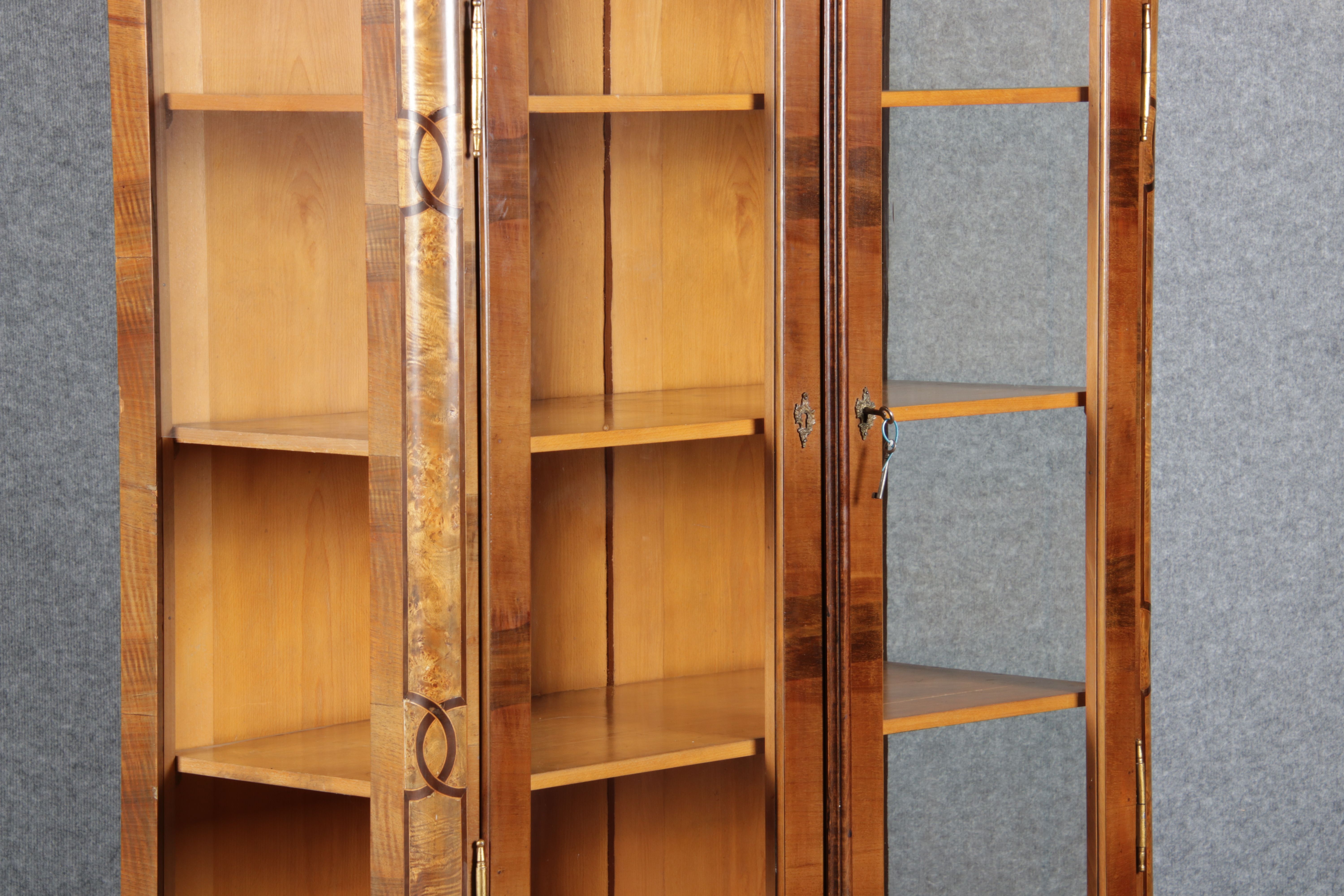 Nussbaum Kirschbaum Mahagoni Klassizismus Vitrine Schrank Säulen