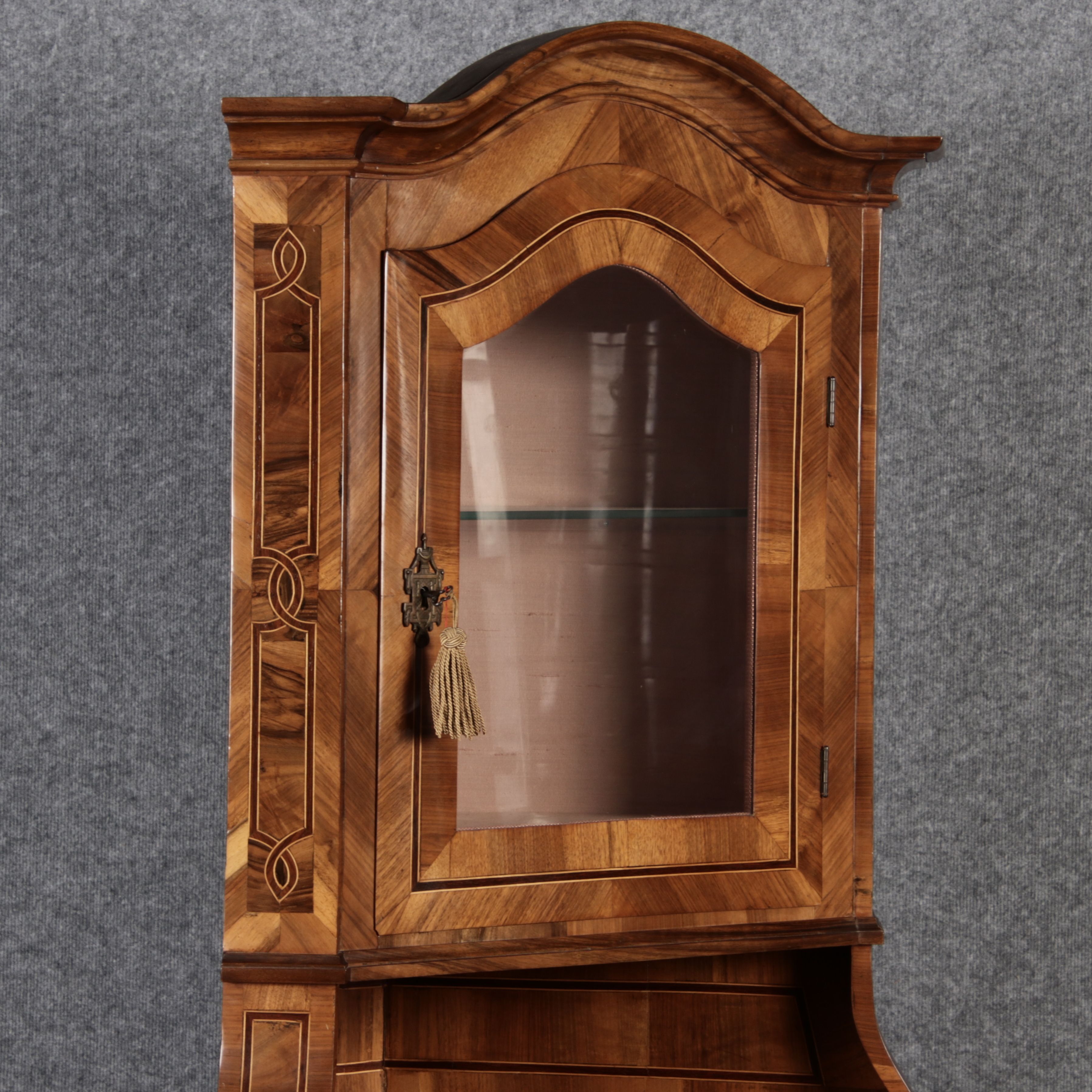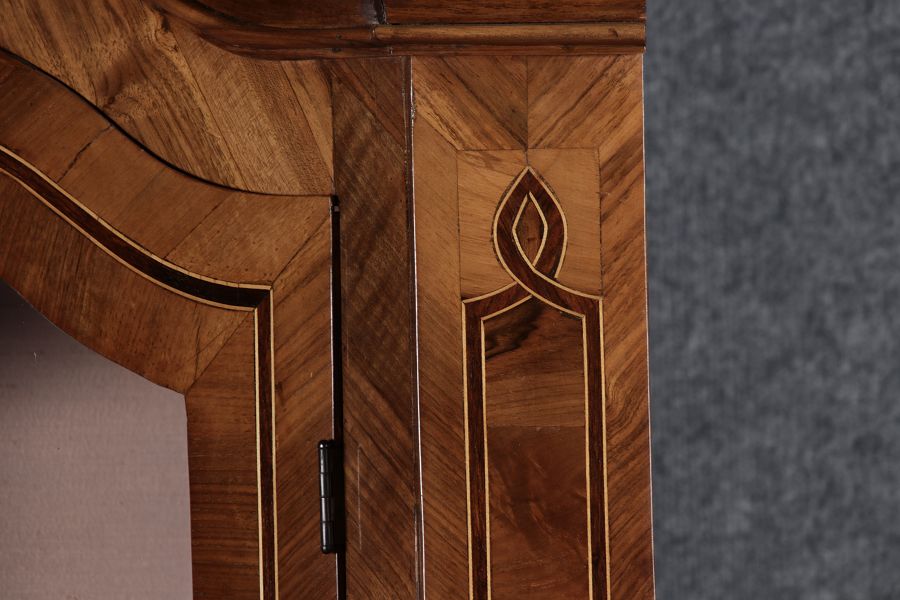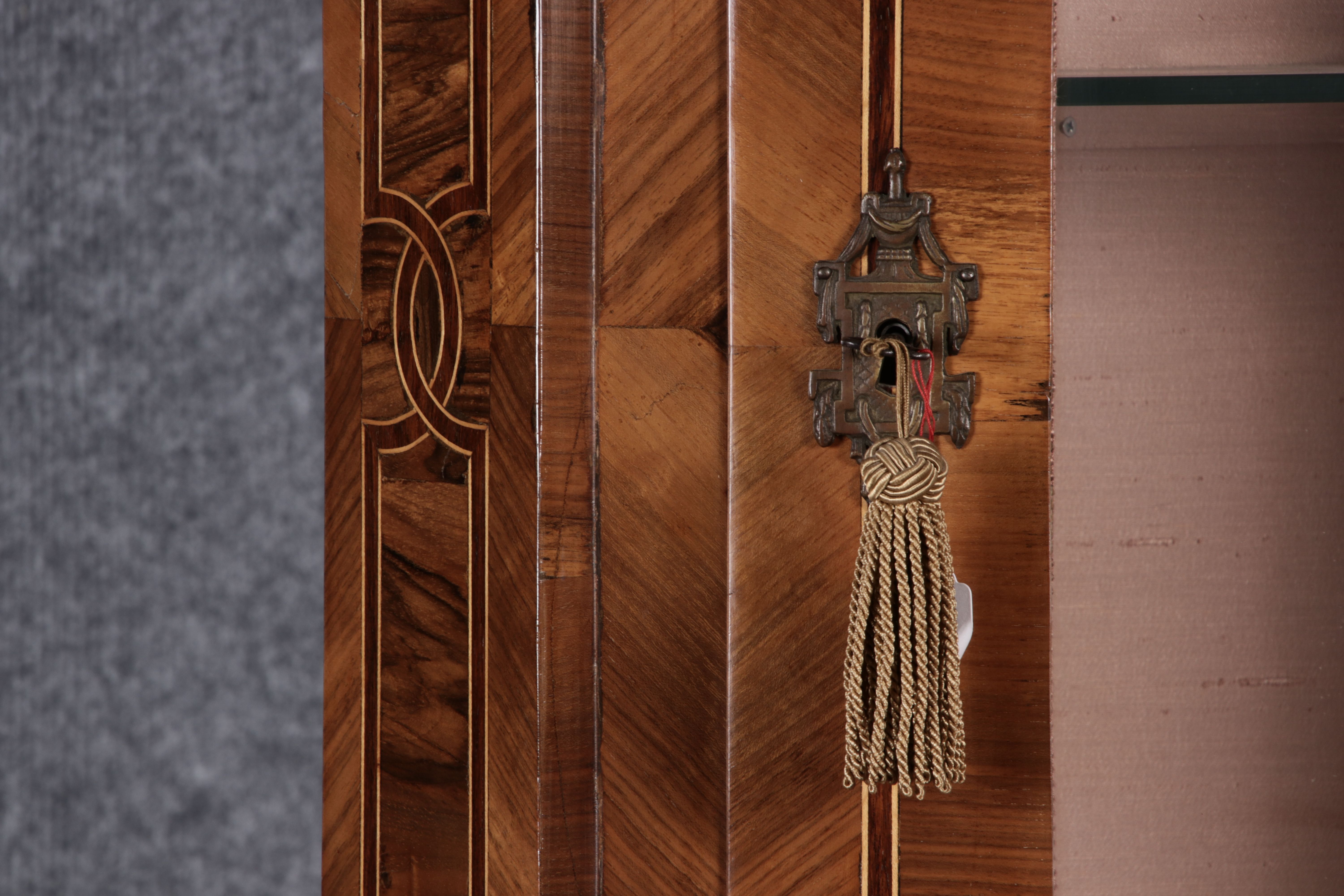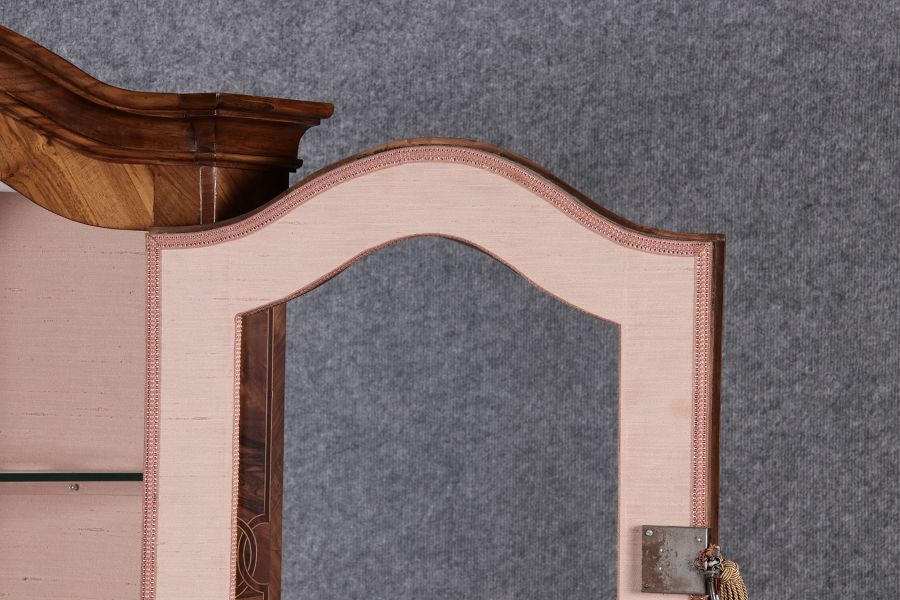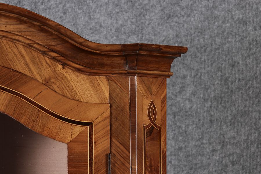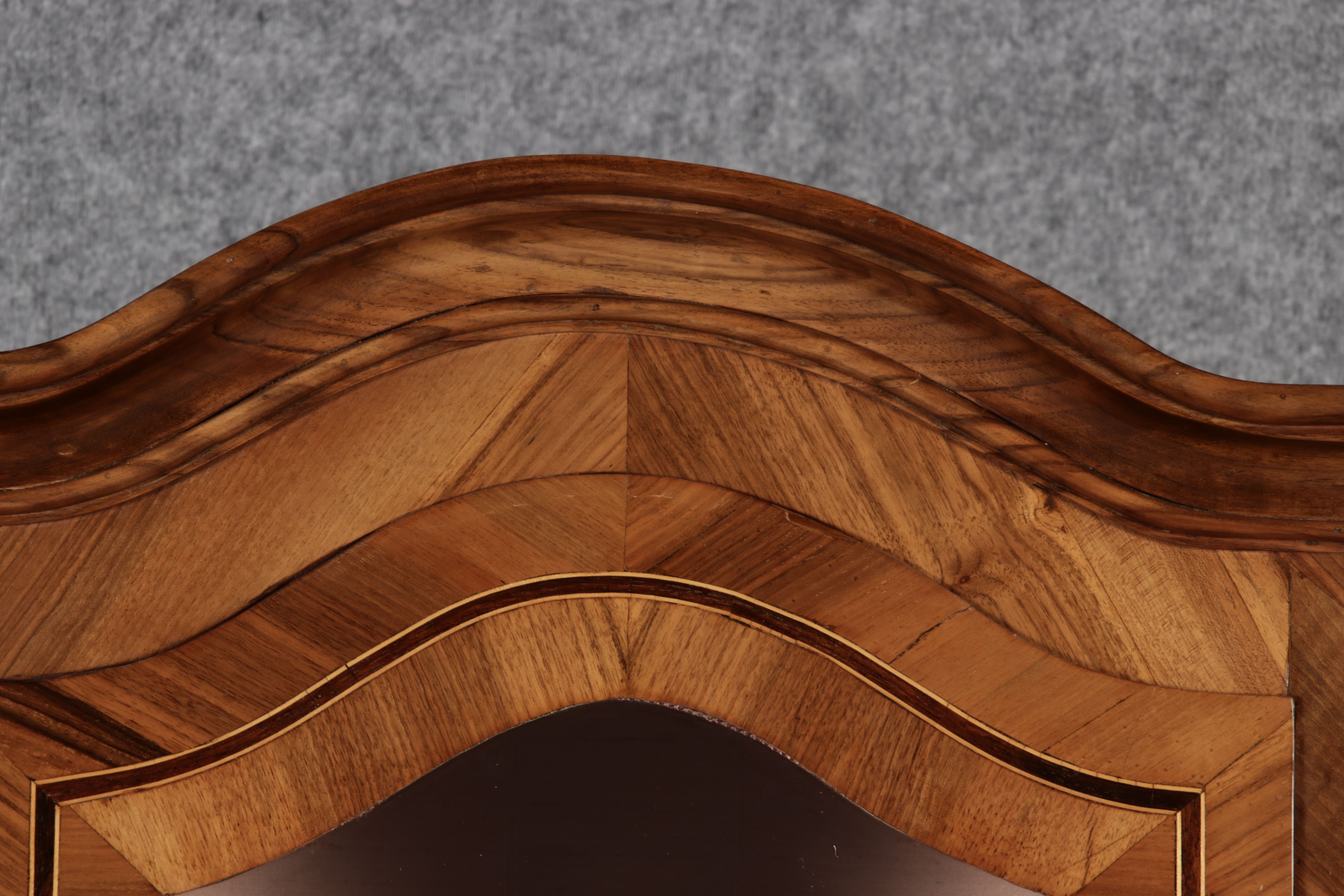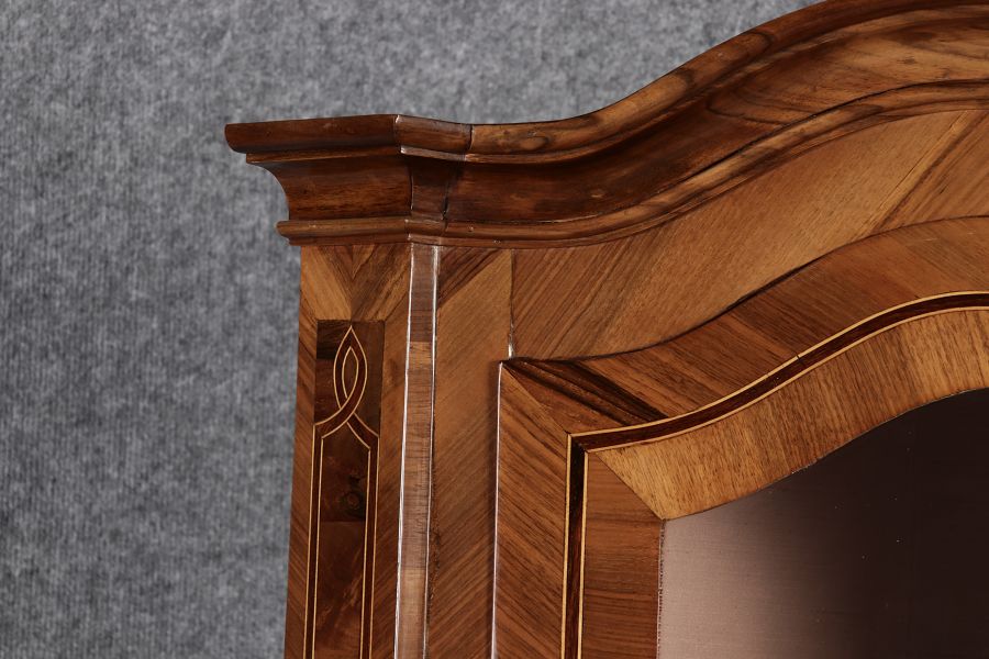 | Antike Barockvitrine 18 Jh. Nussbaum mit Einlegearbeiten | ||
