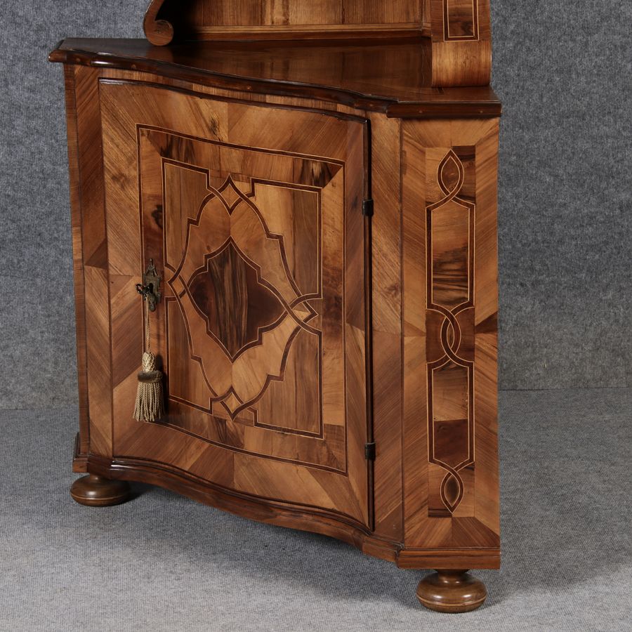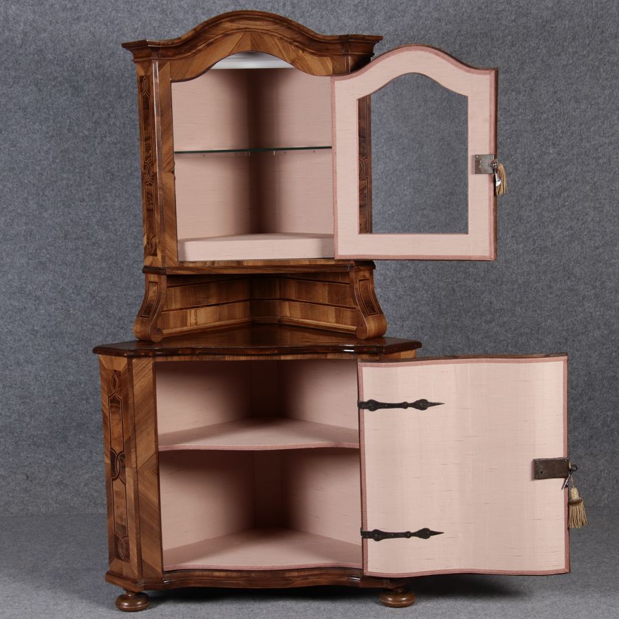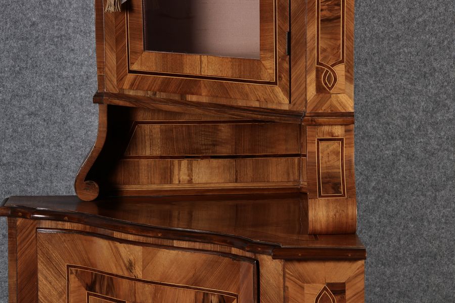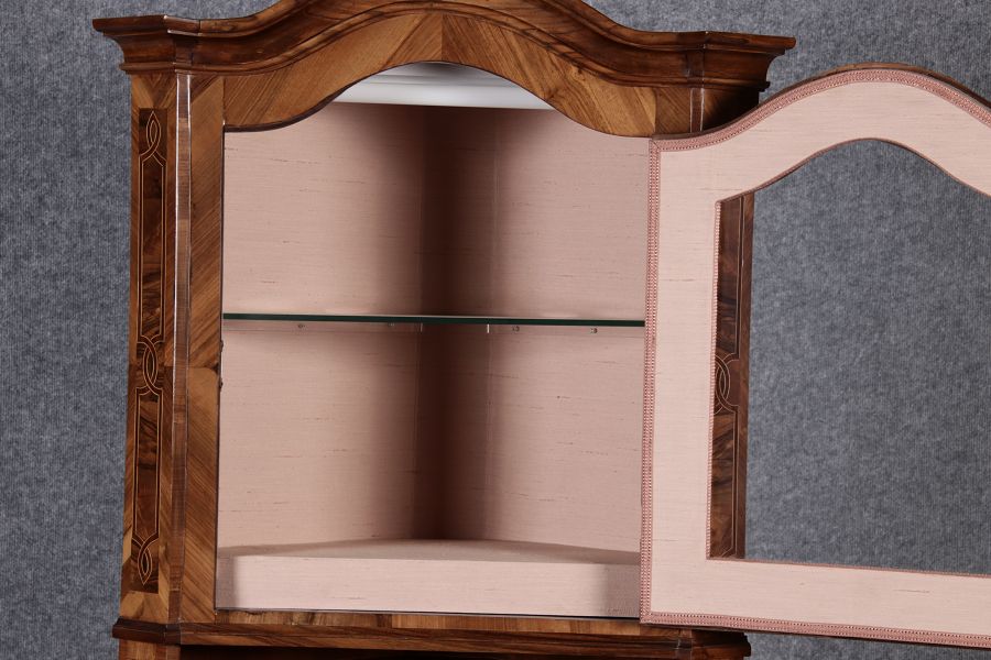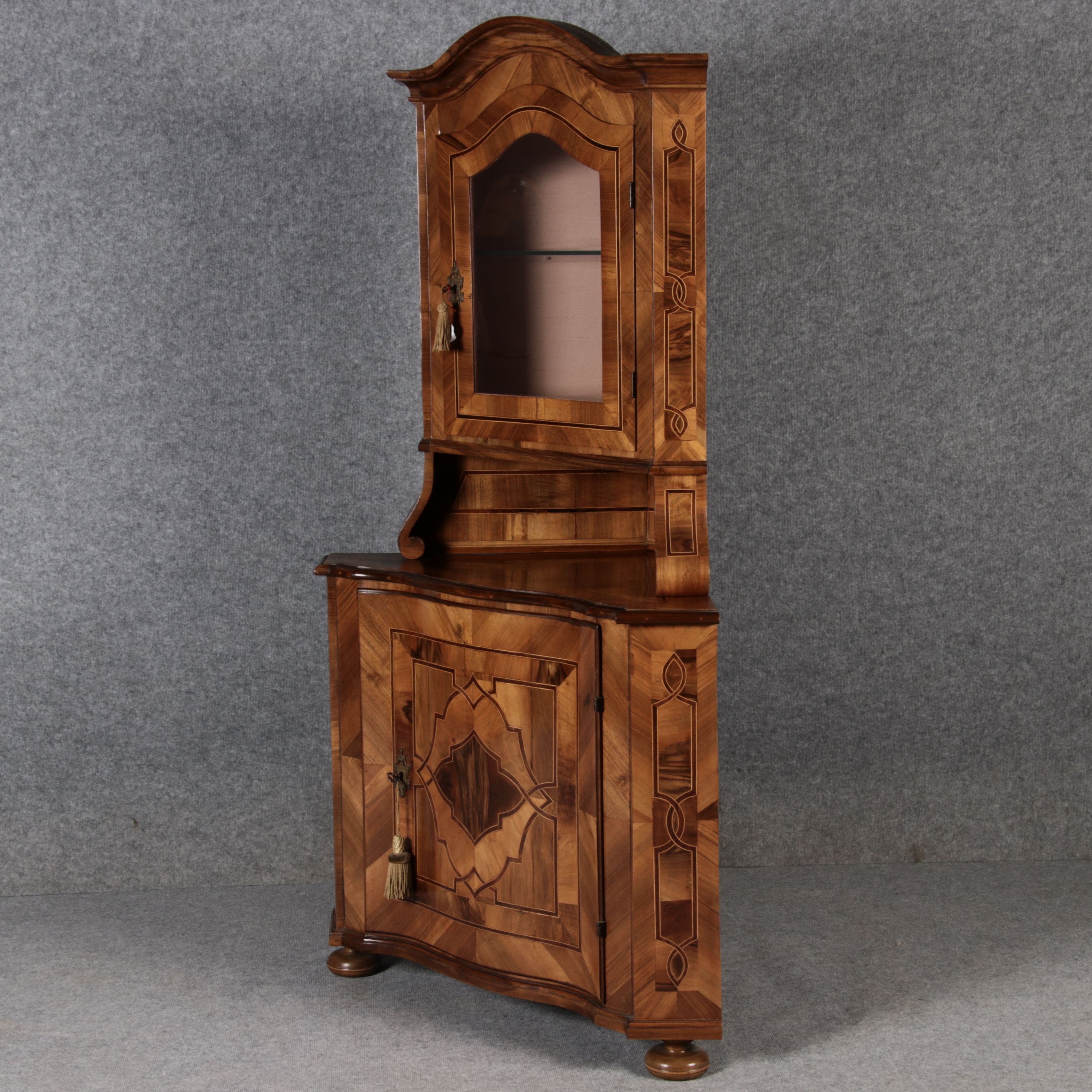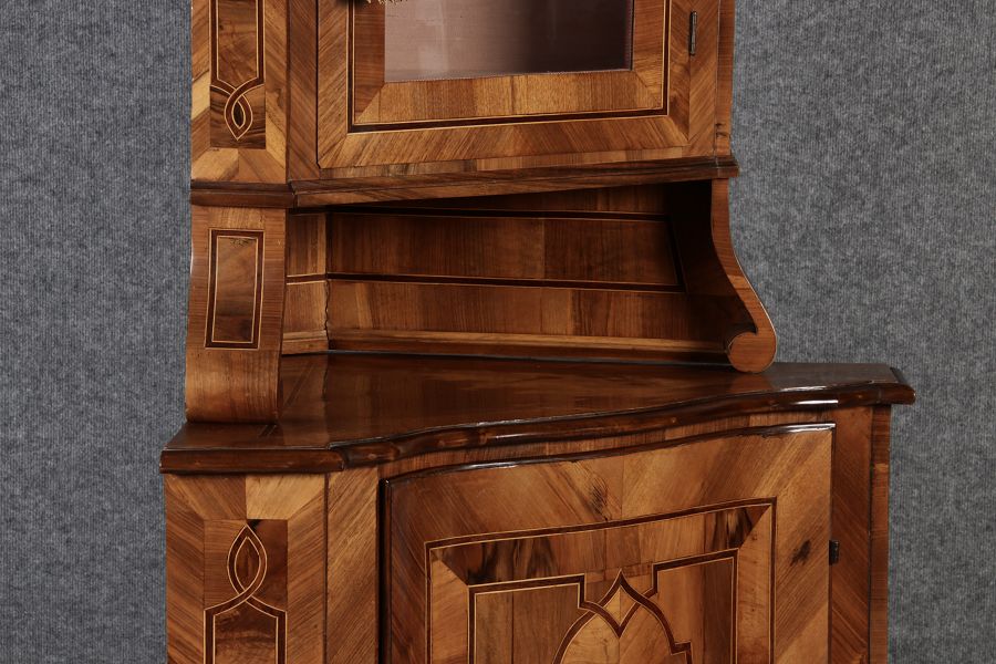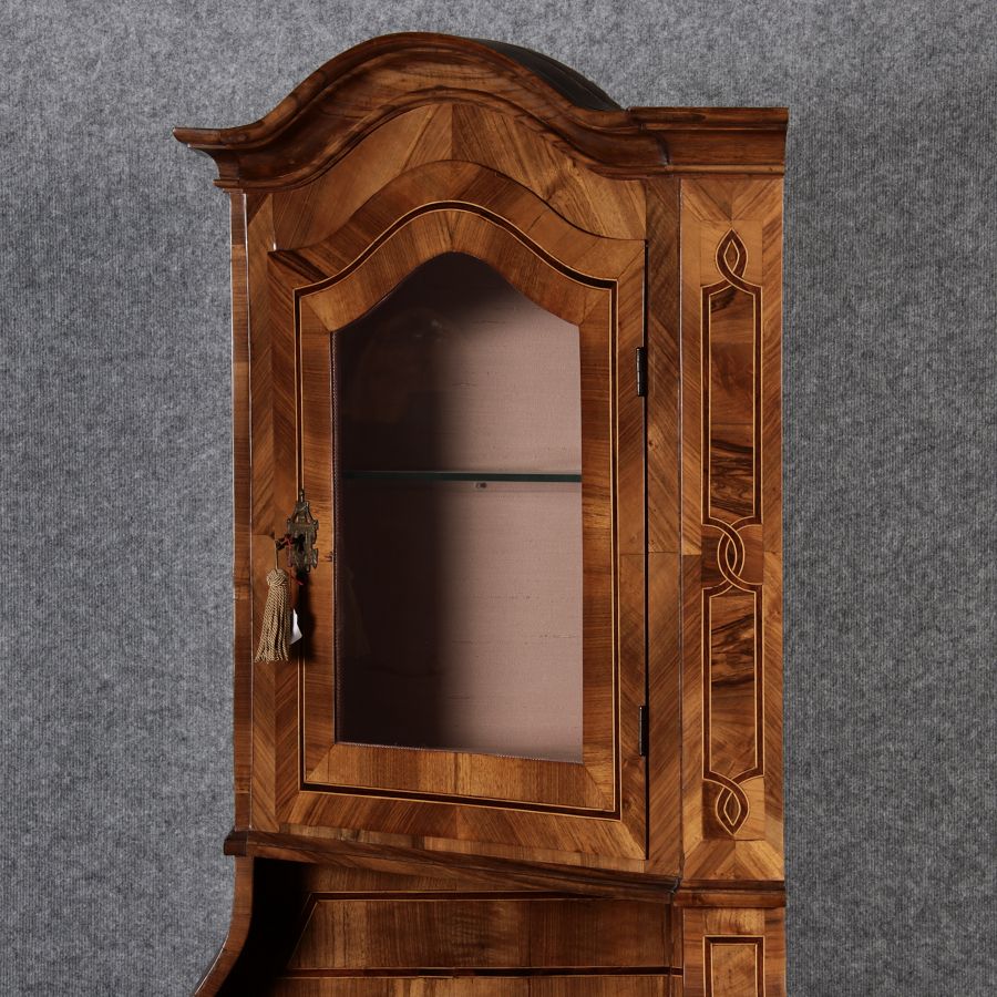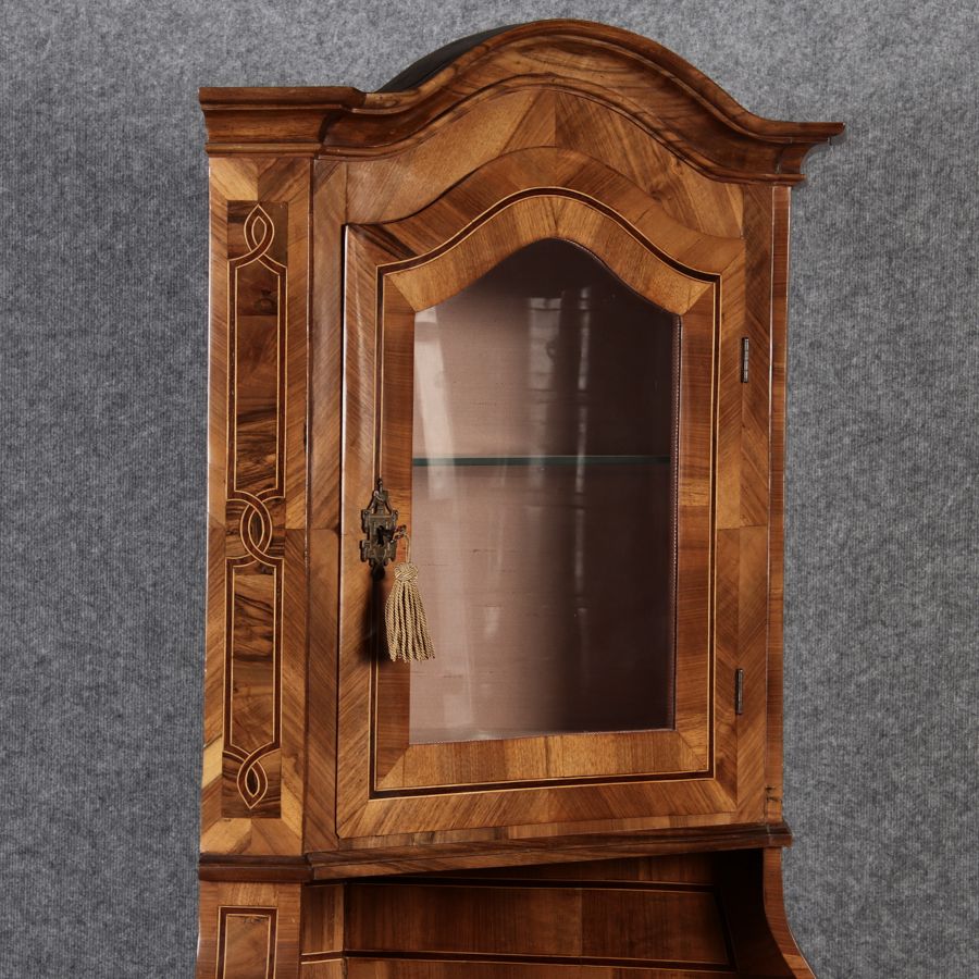 | Antike Barockvitrine 18 Jh. Nussbaum mit Einlegearbeiten | ||
