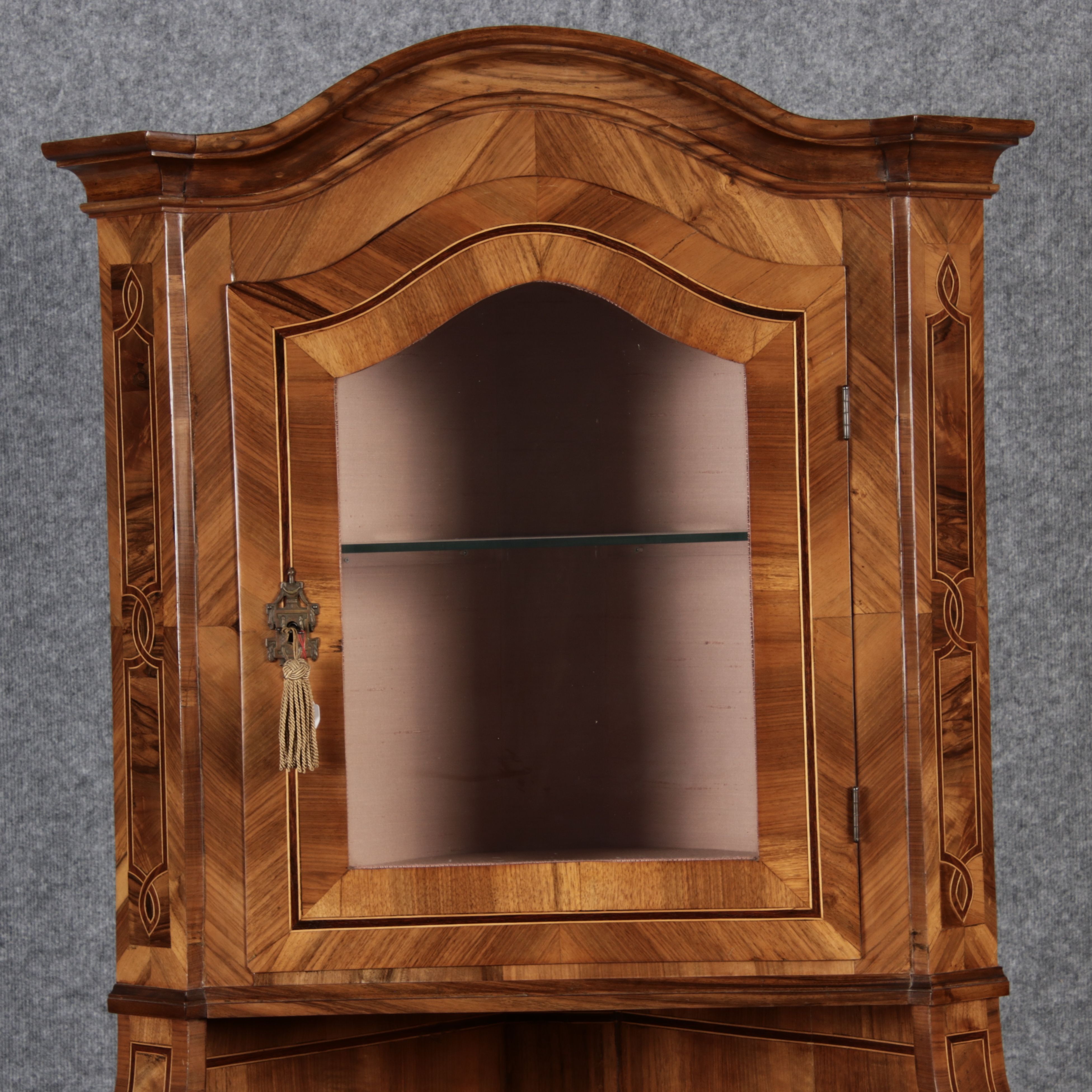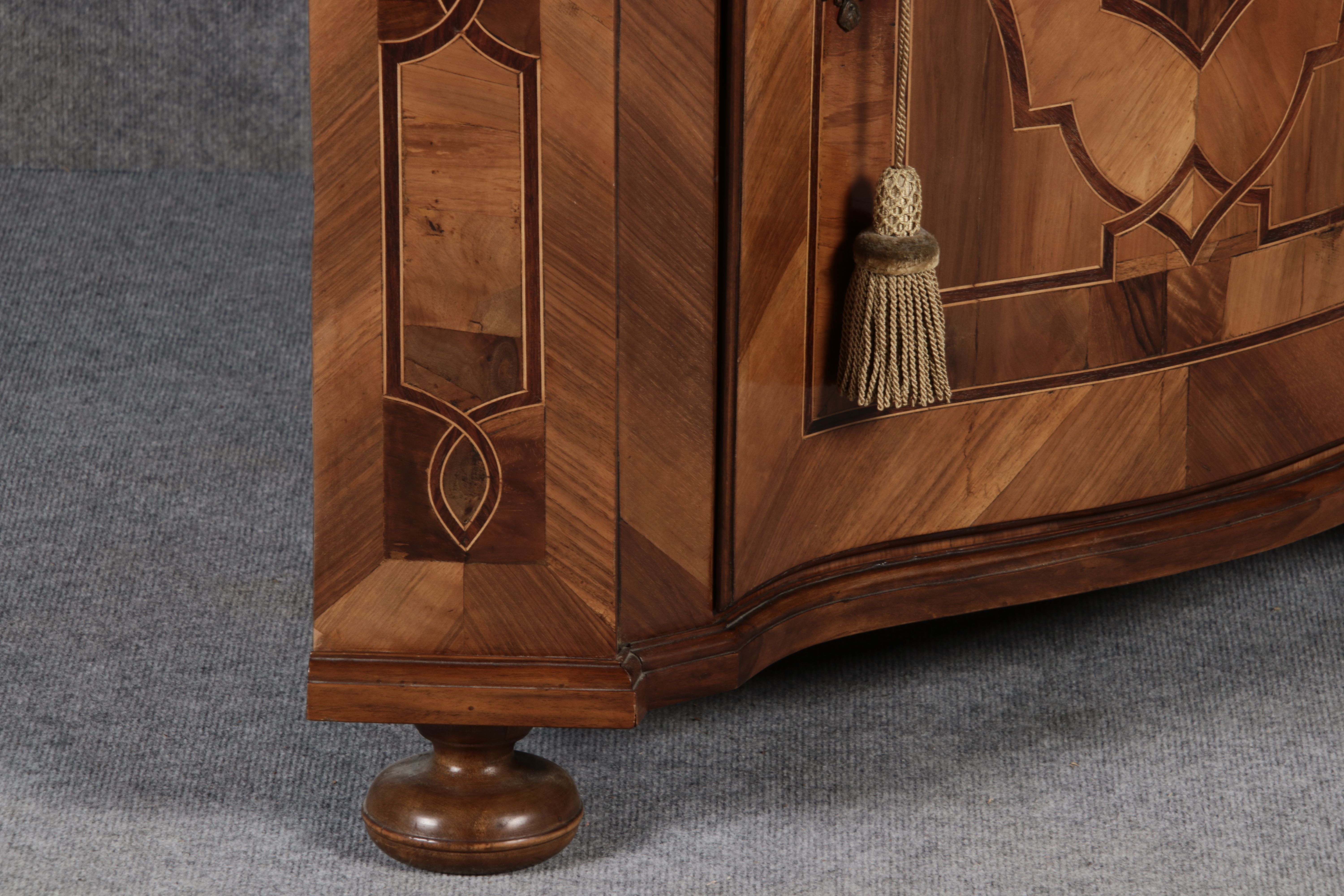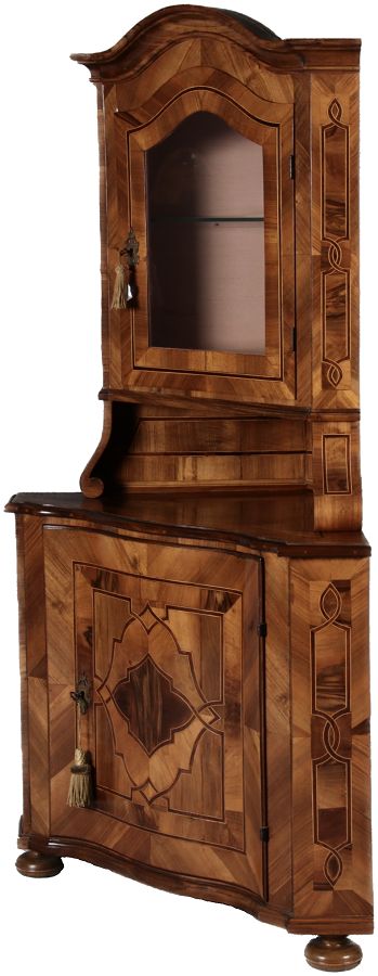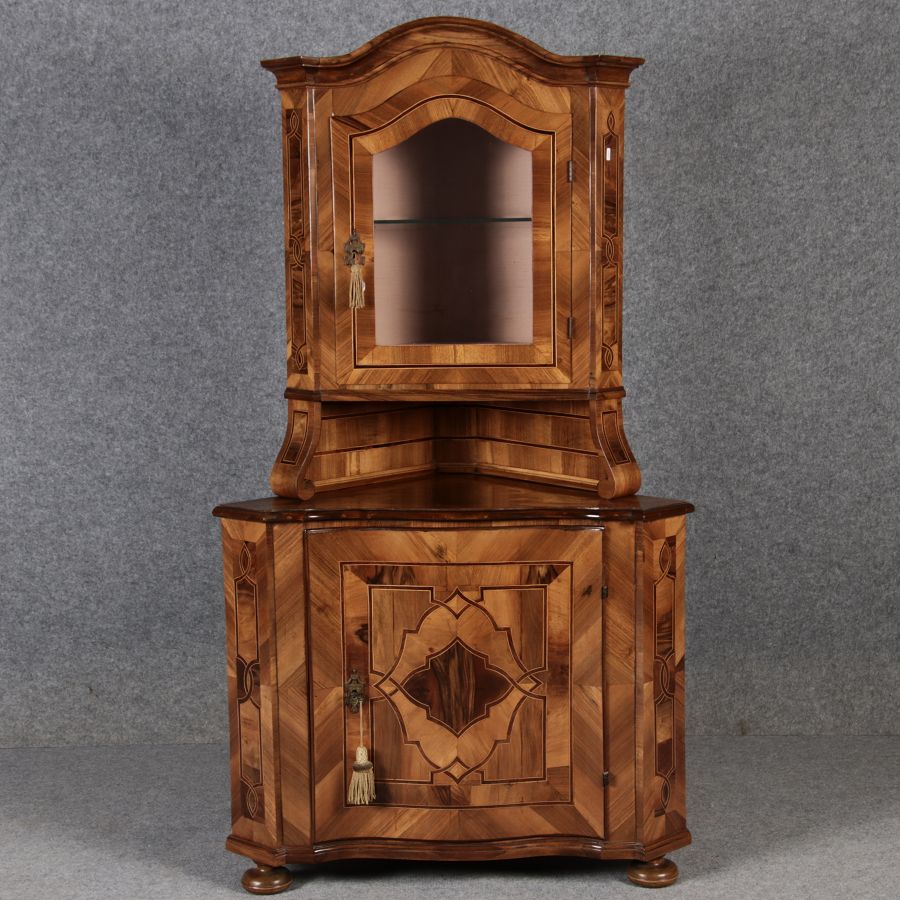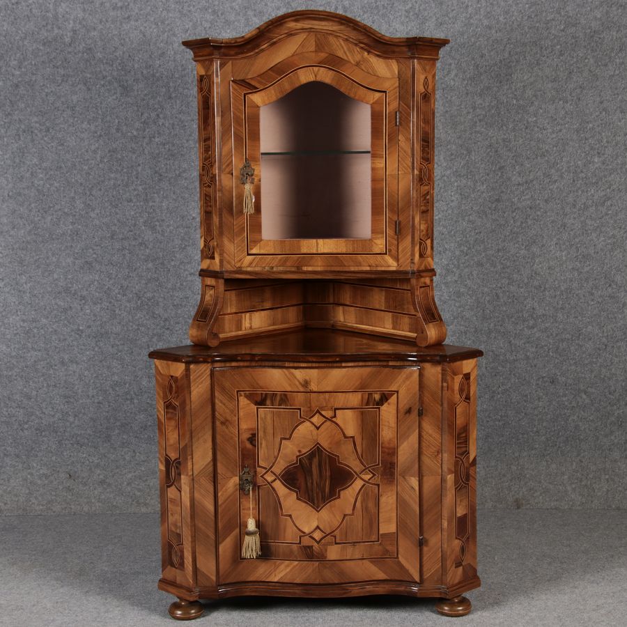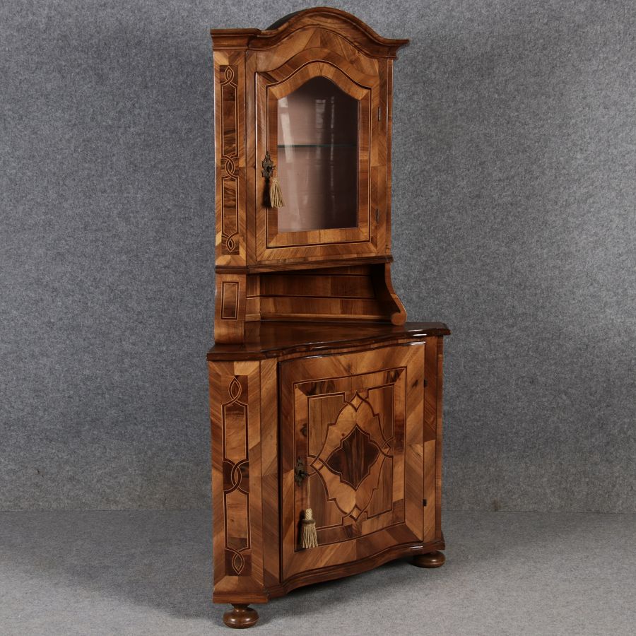 | Antike Barockvitrine 18 Jh. Nussbaum mit Einlegearbeiten | ||