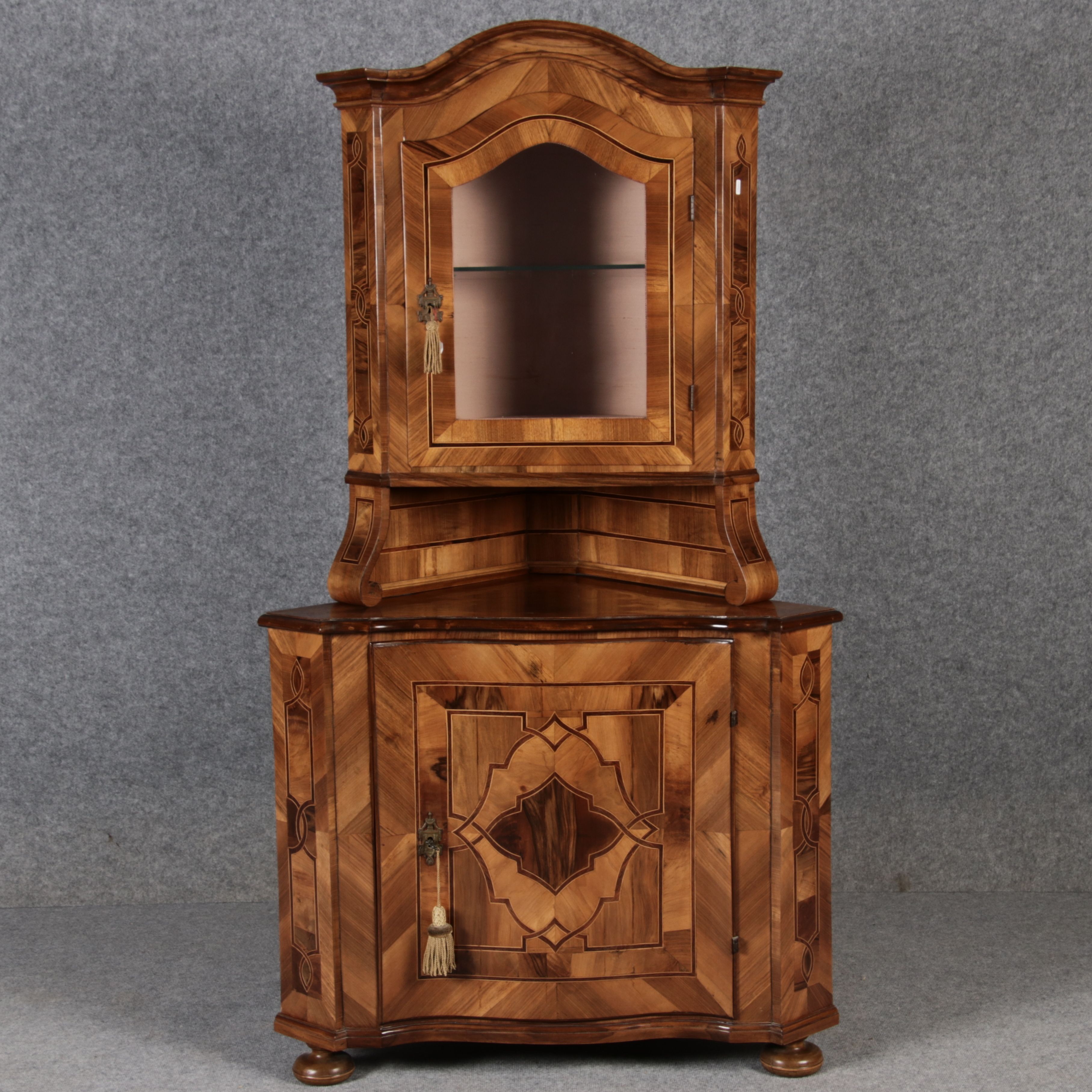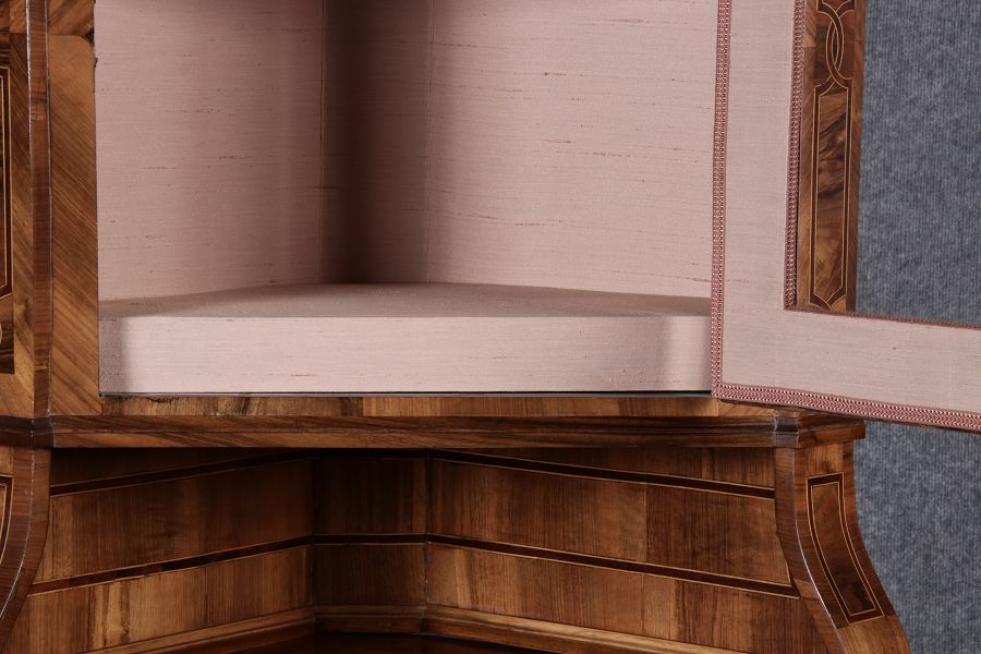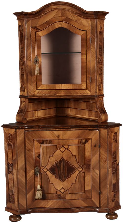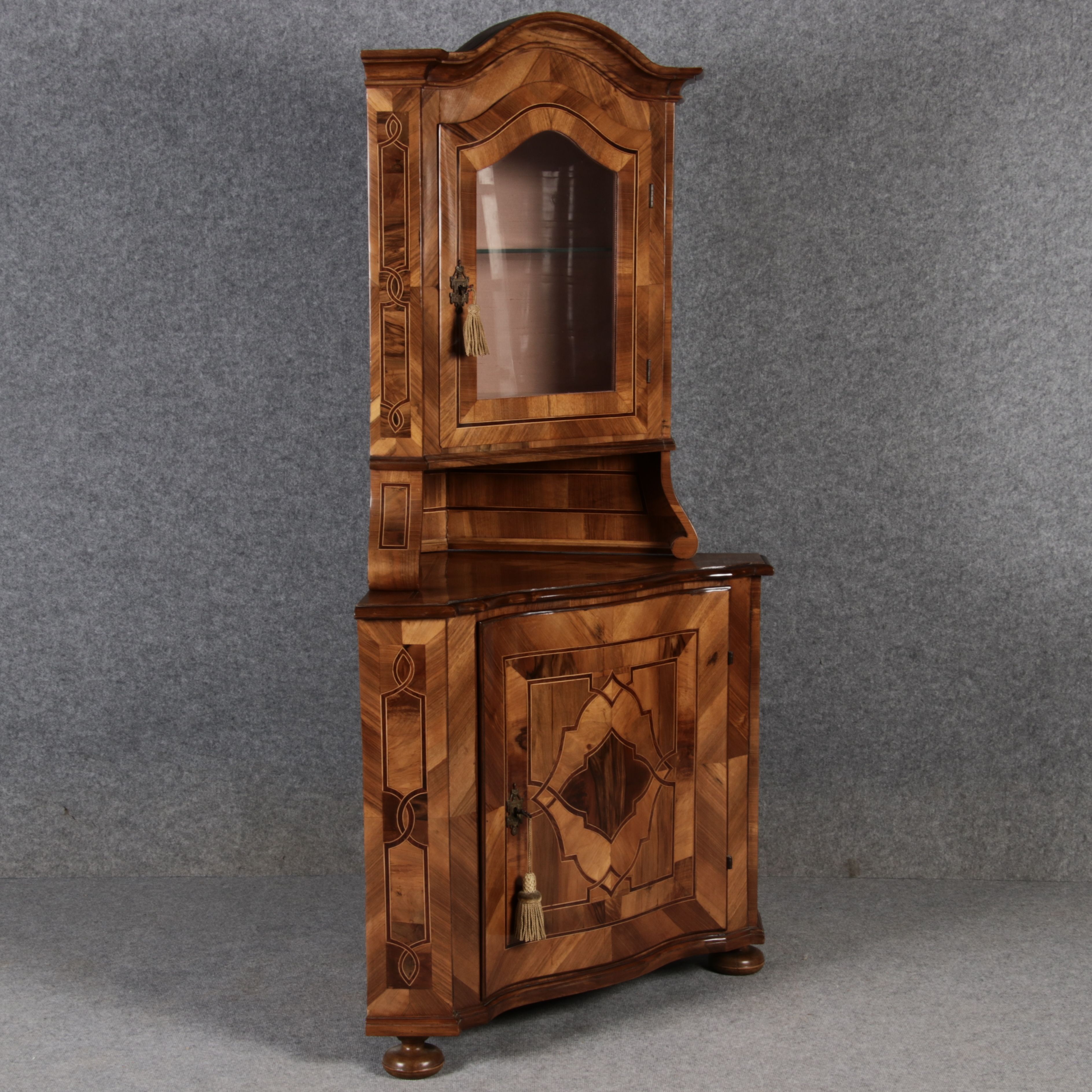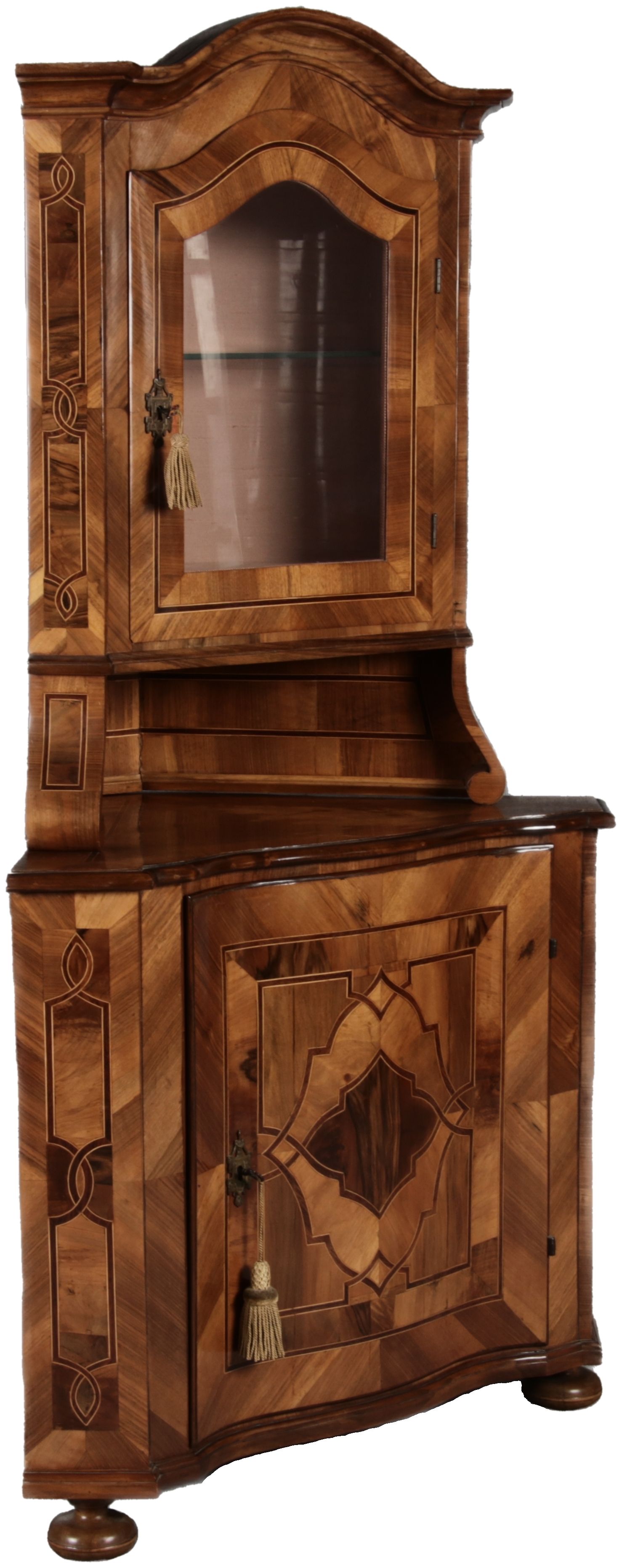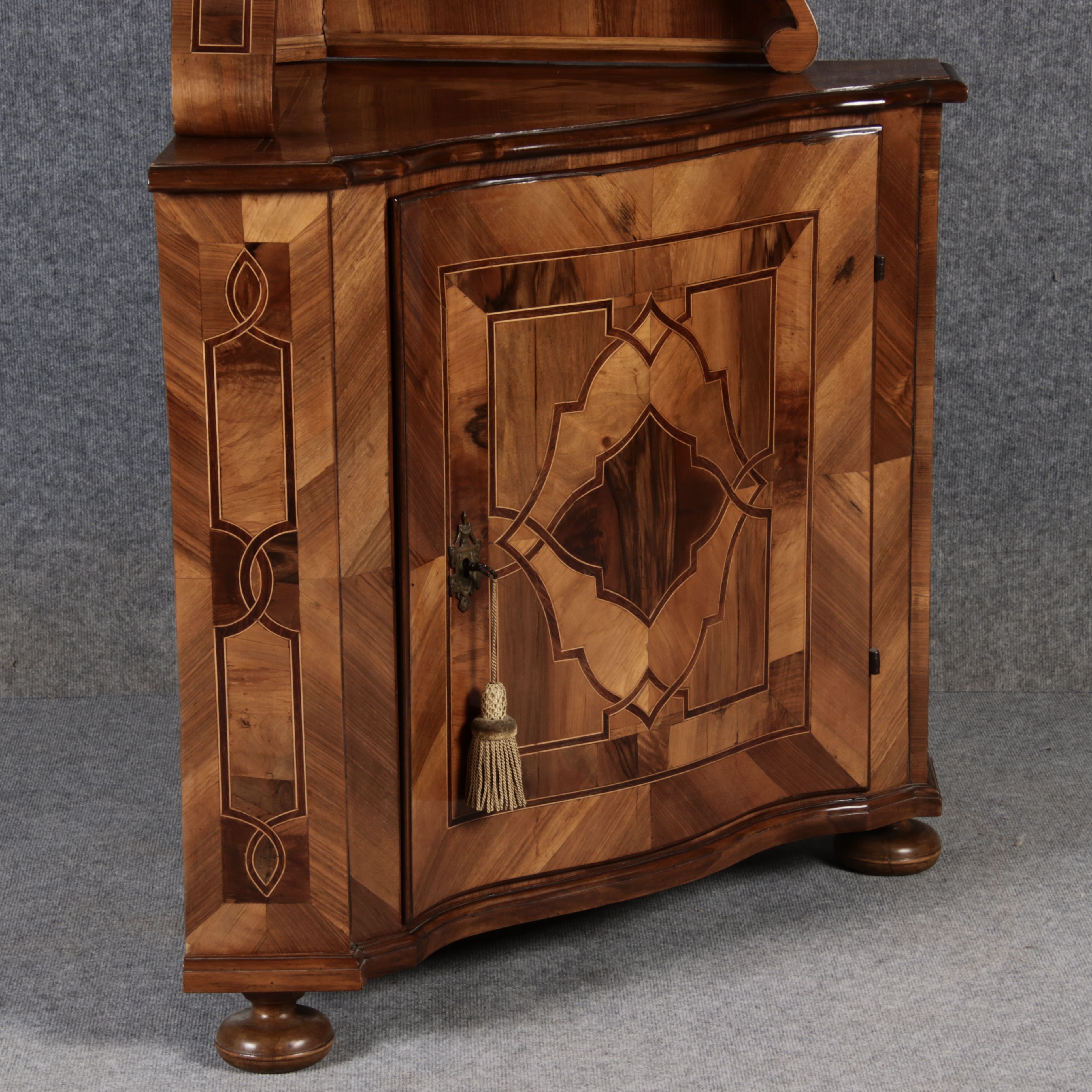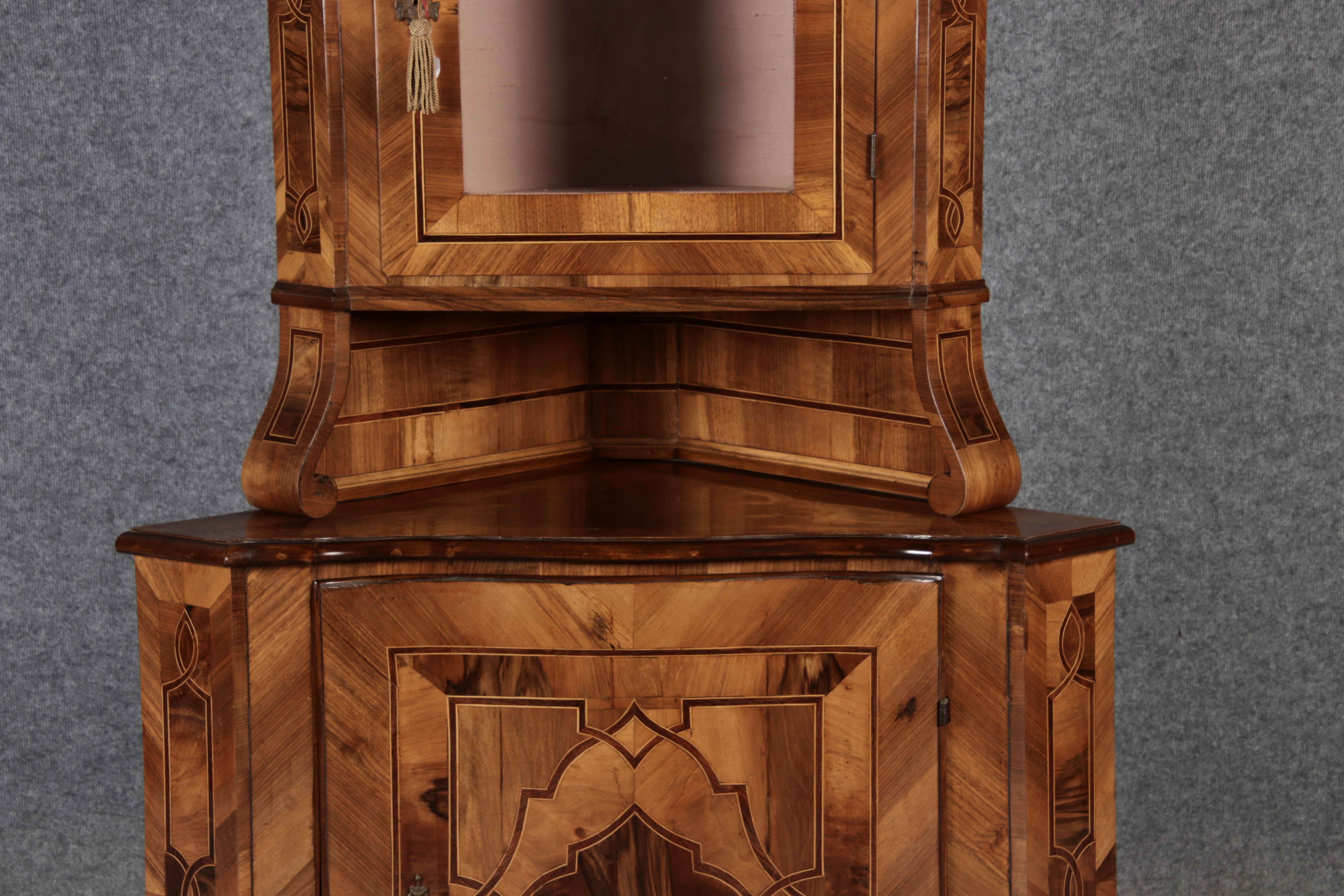 | Antike Barockvitrine 18 Jh. Nussbaum mit Einlegearbeiten | ||