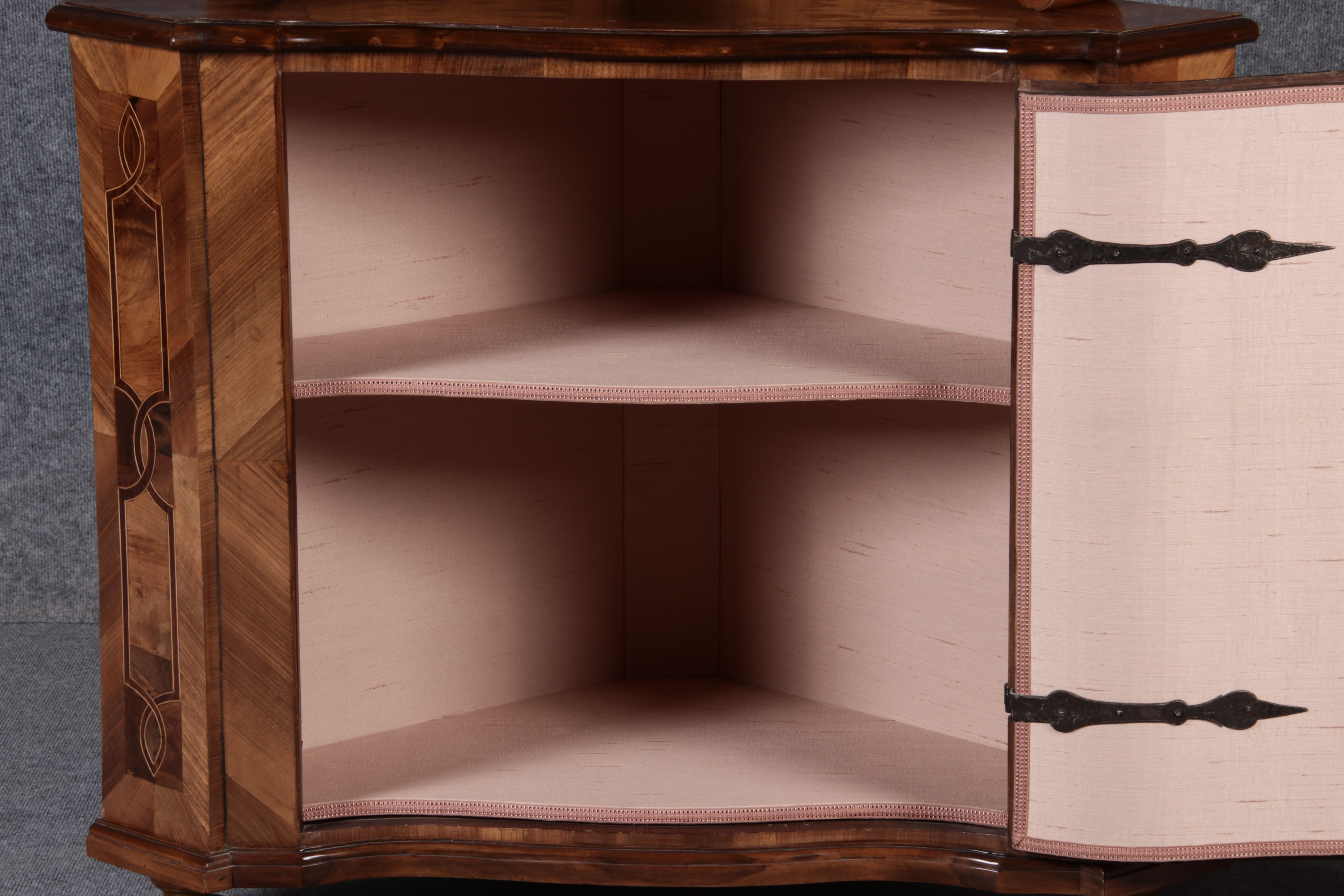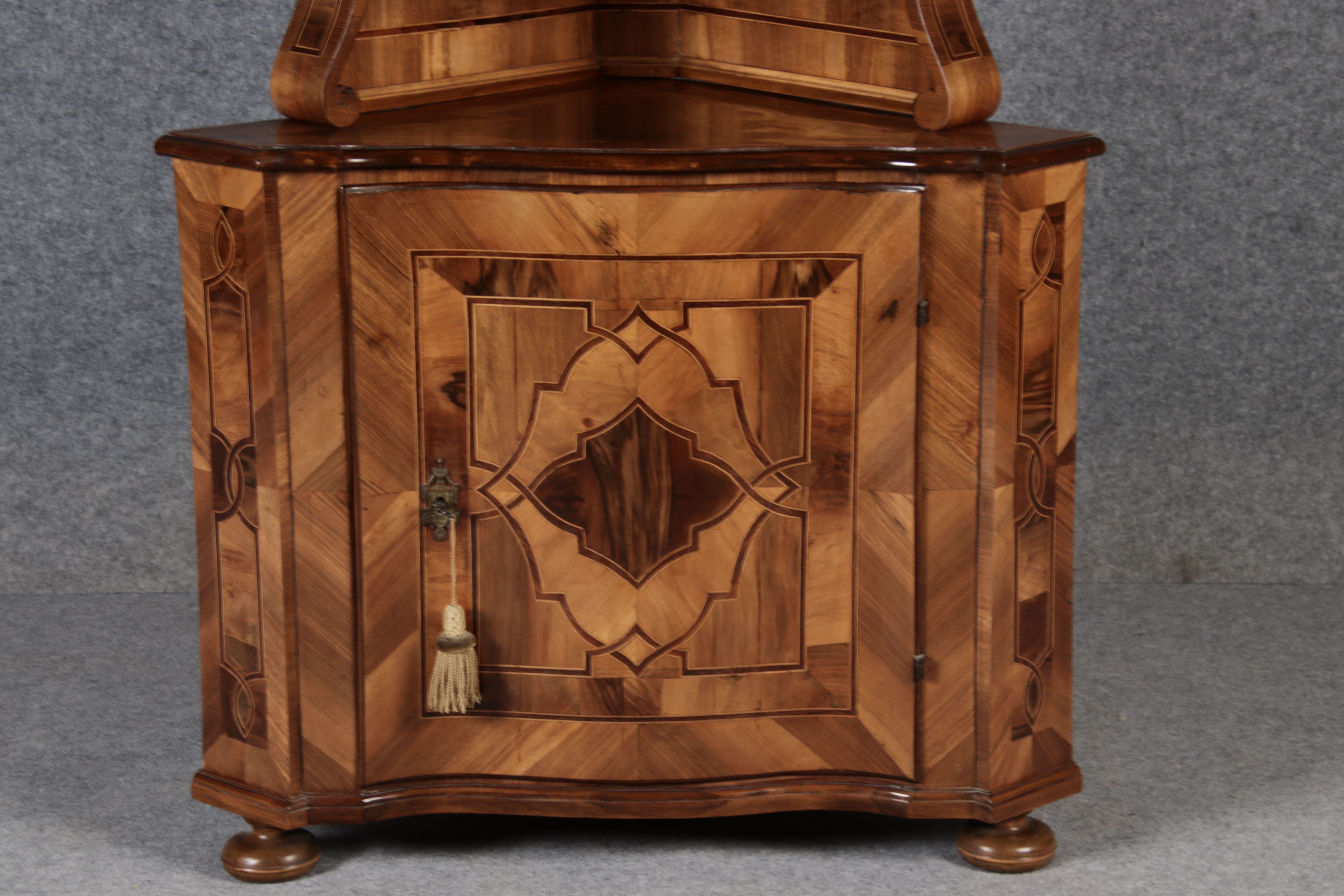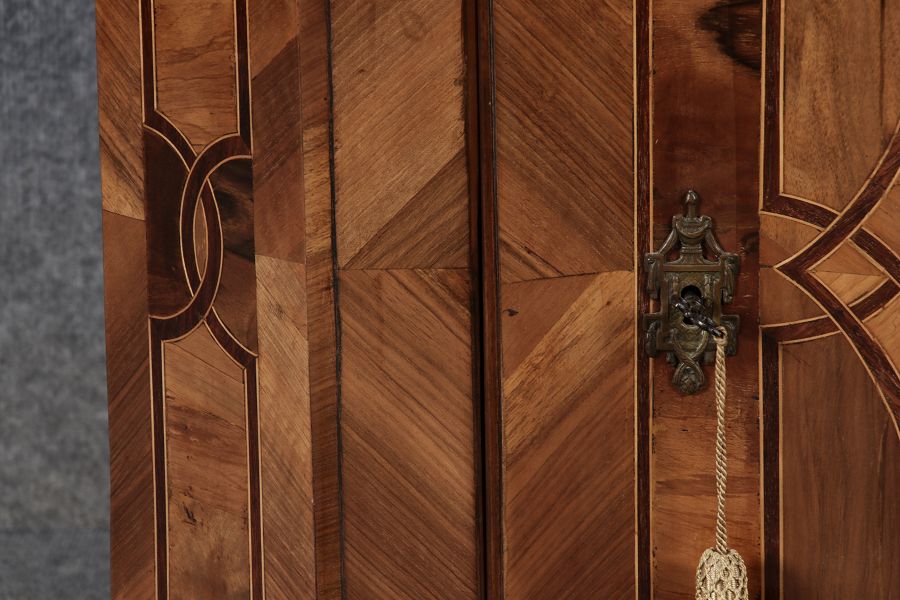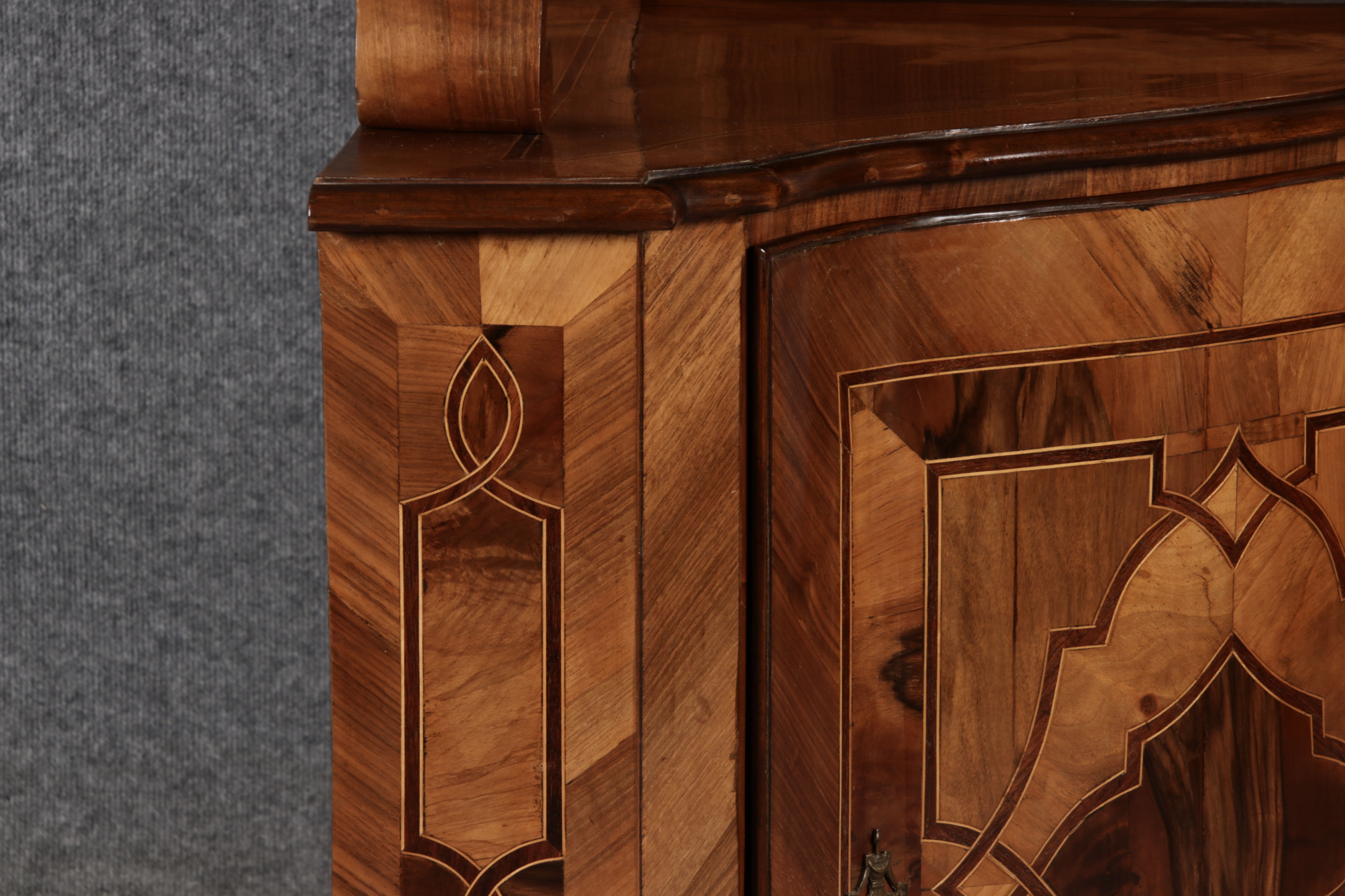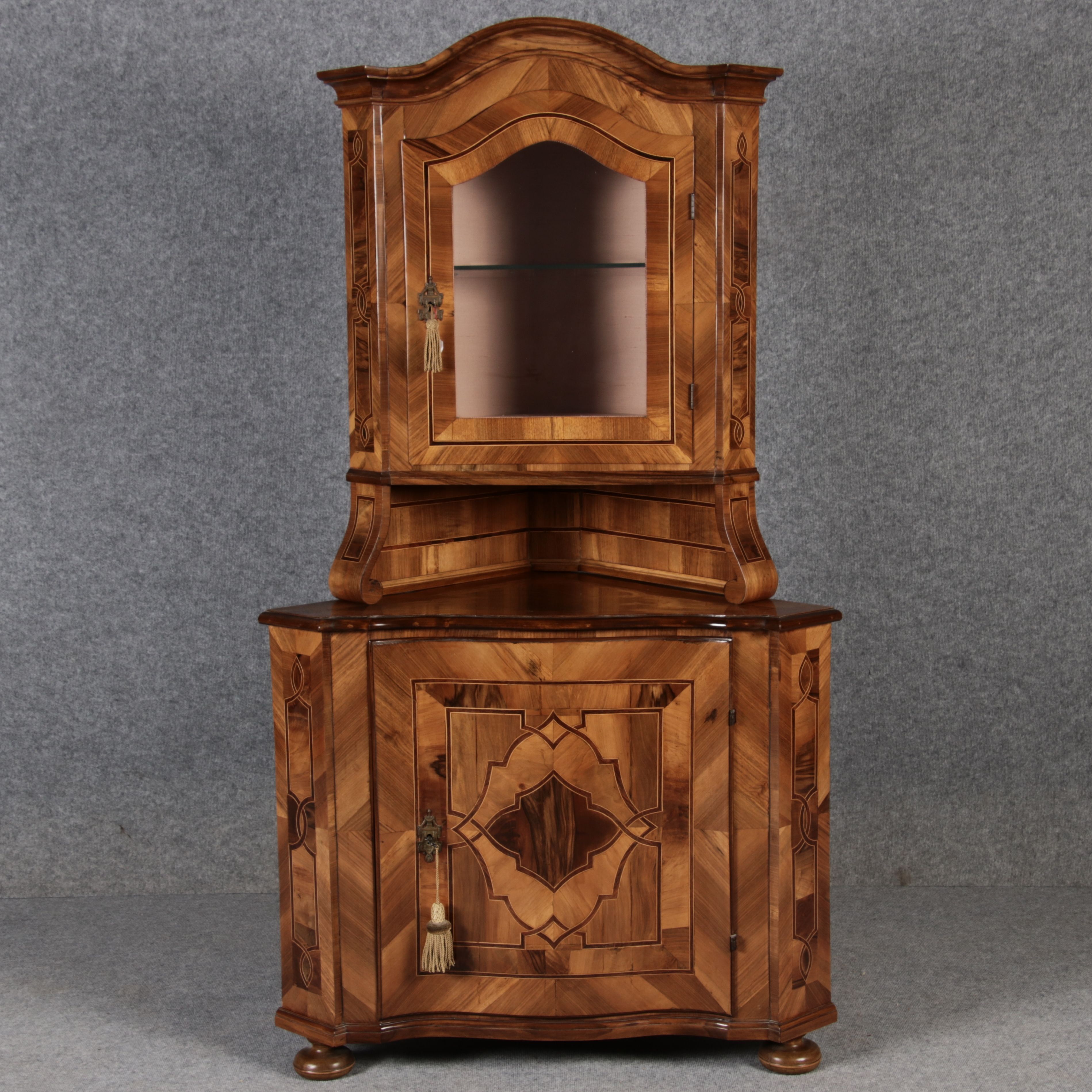 | Antike Barockvitrine 18 Jh. Nussbaum mit Einlegearbeiten | ||