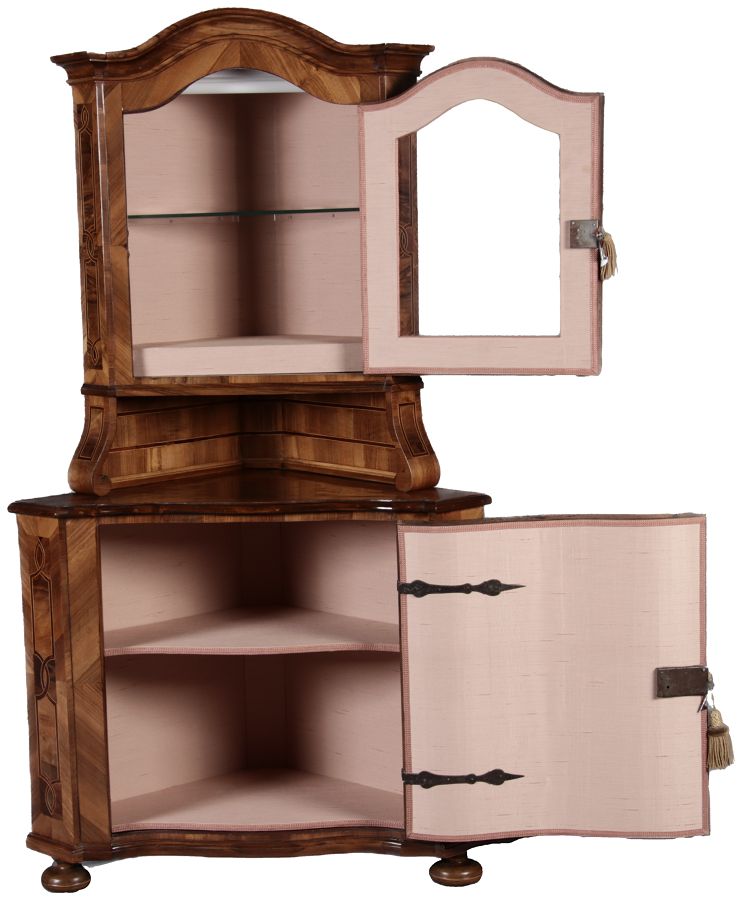und Herkunft/origin: Die Vitrine ist wahrscheinlich aus der Zeit um 1730-50 und die Herkunft ist Süddeutschland
