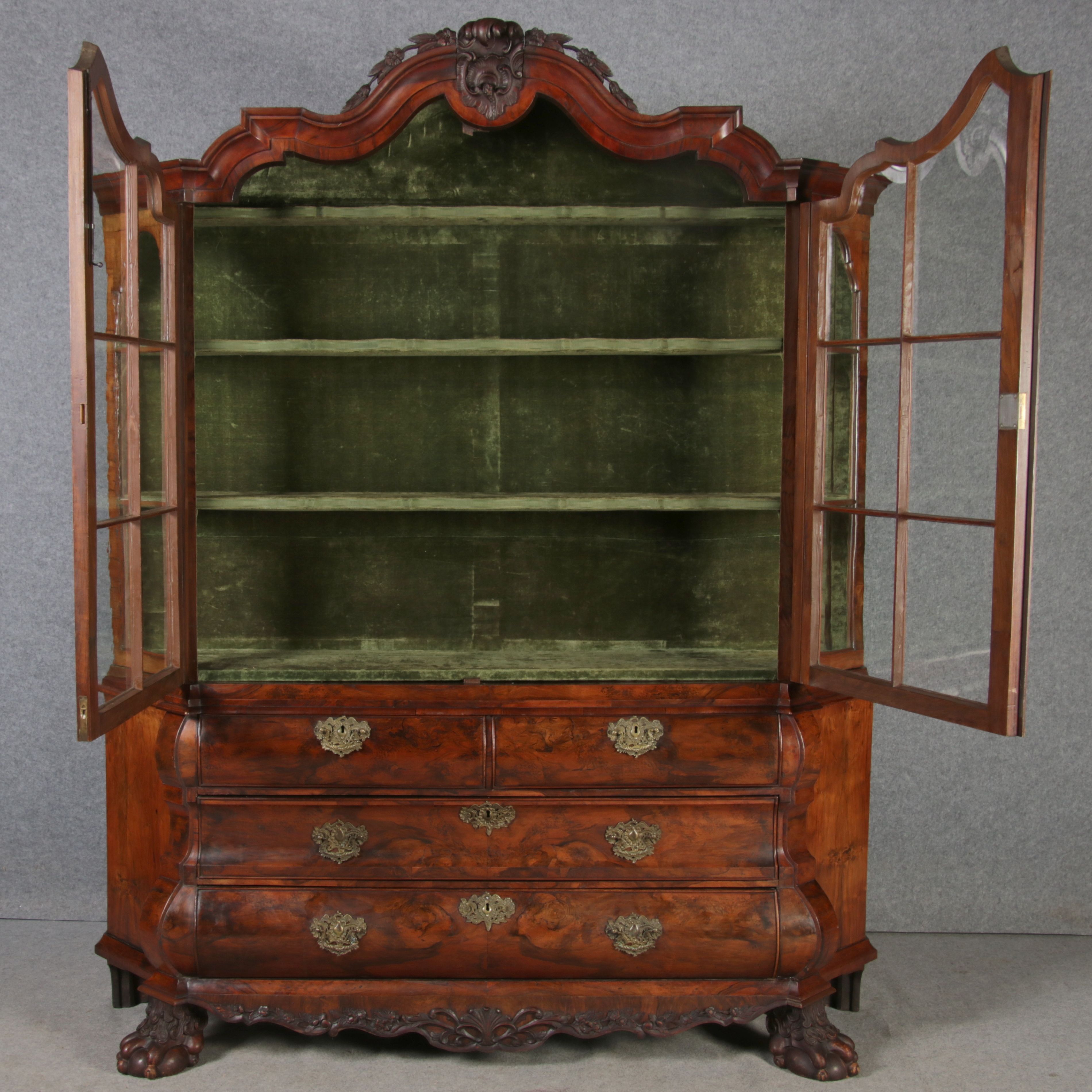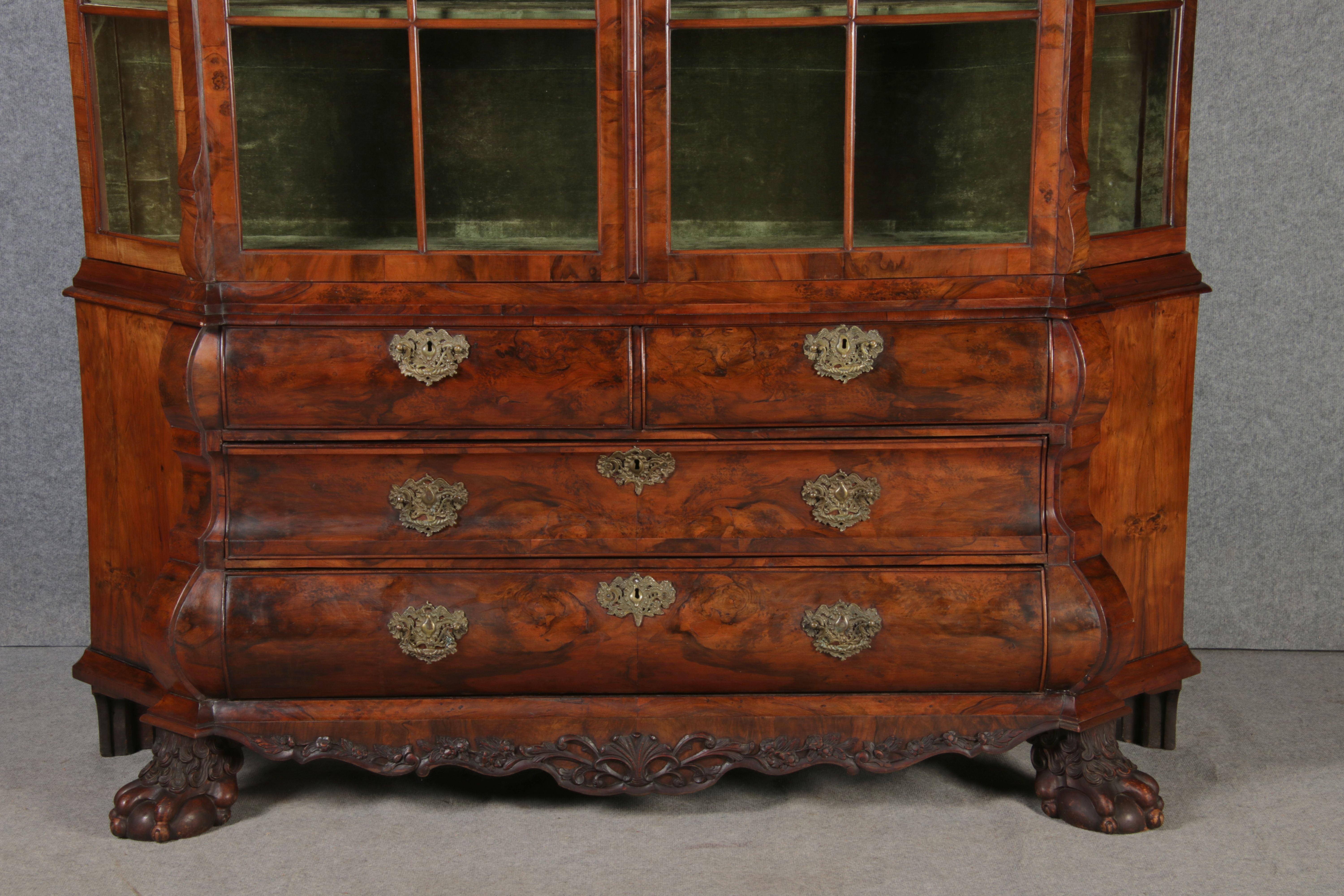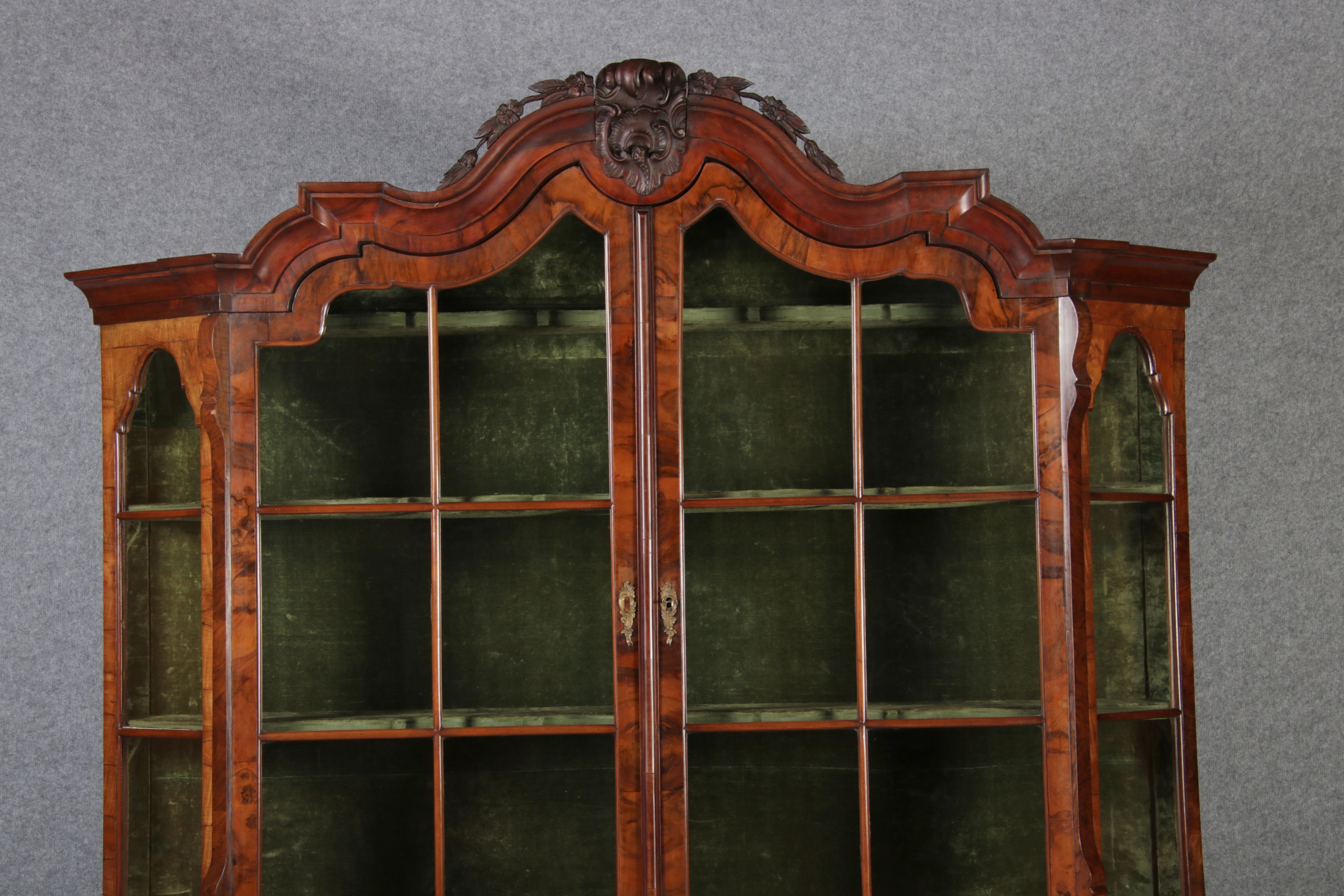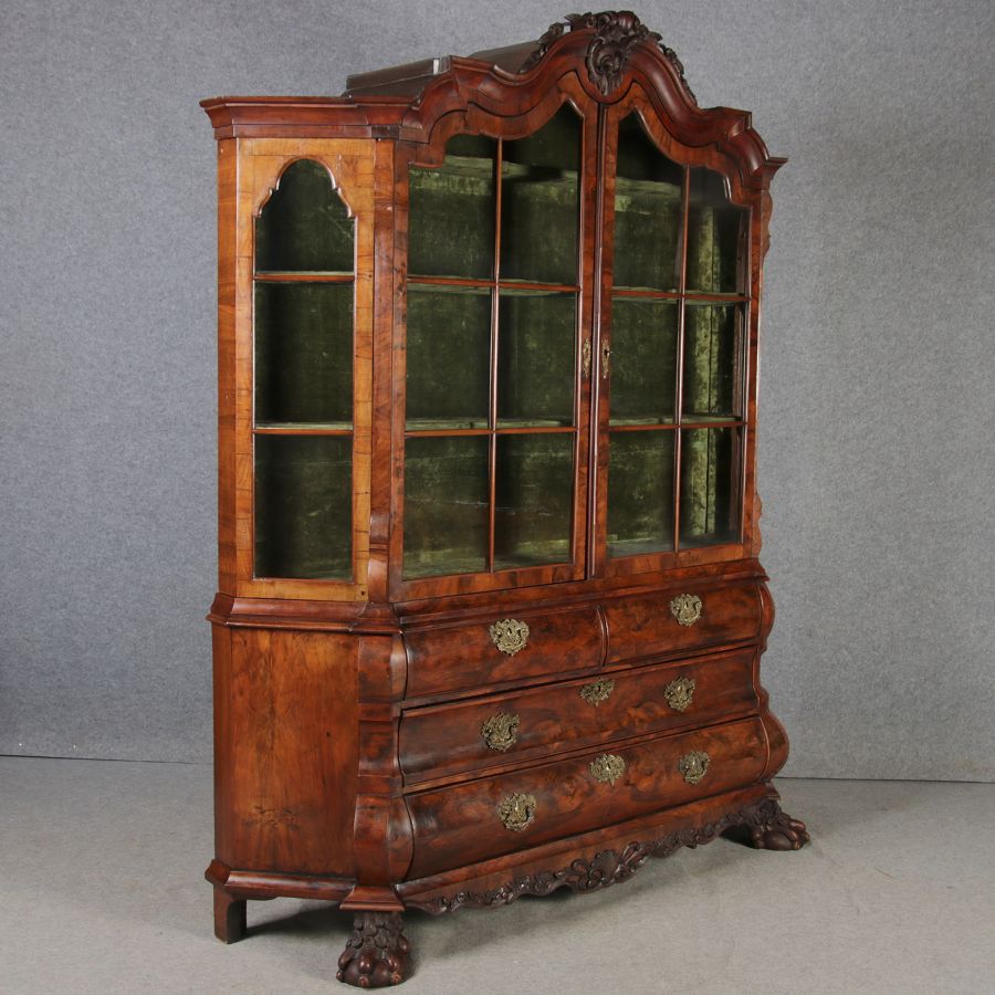 Antike 248 cm Hohe Barock Vitrine Holland 18 Jh. Nussbaum |
