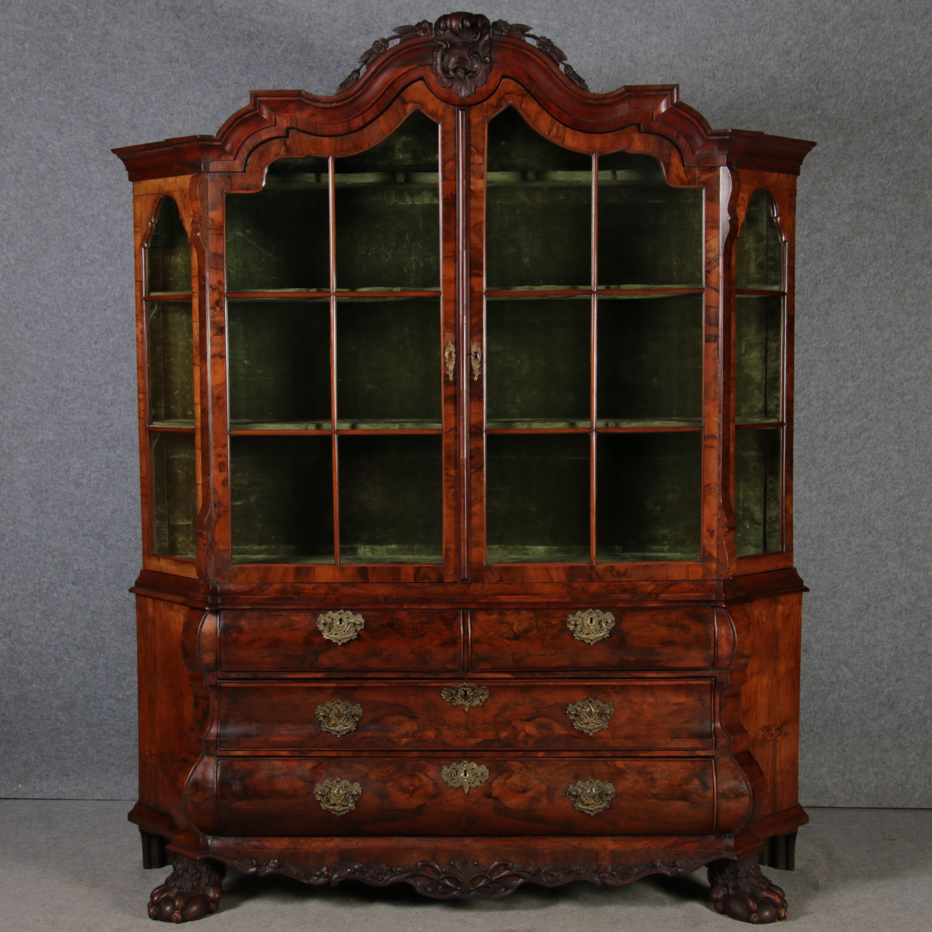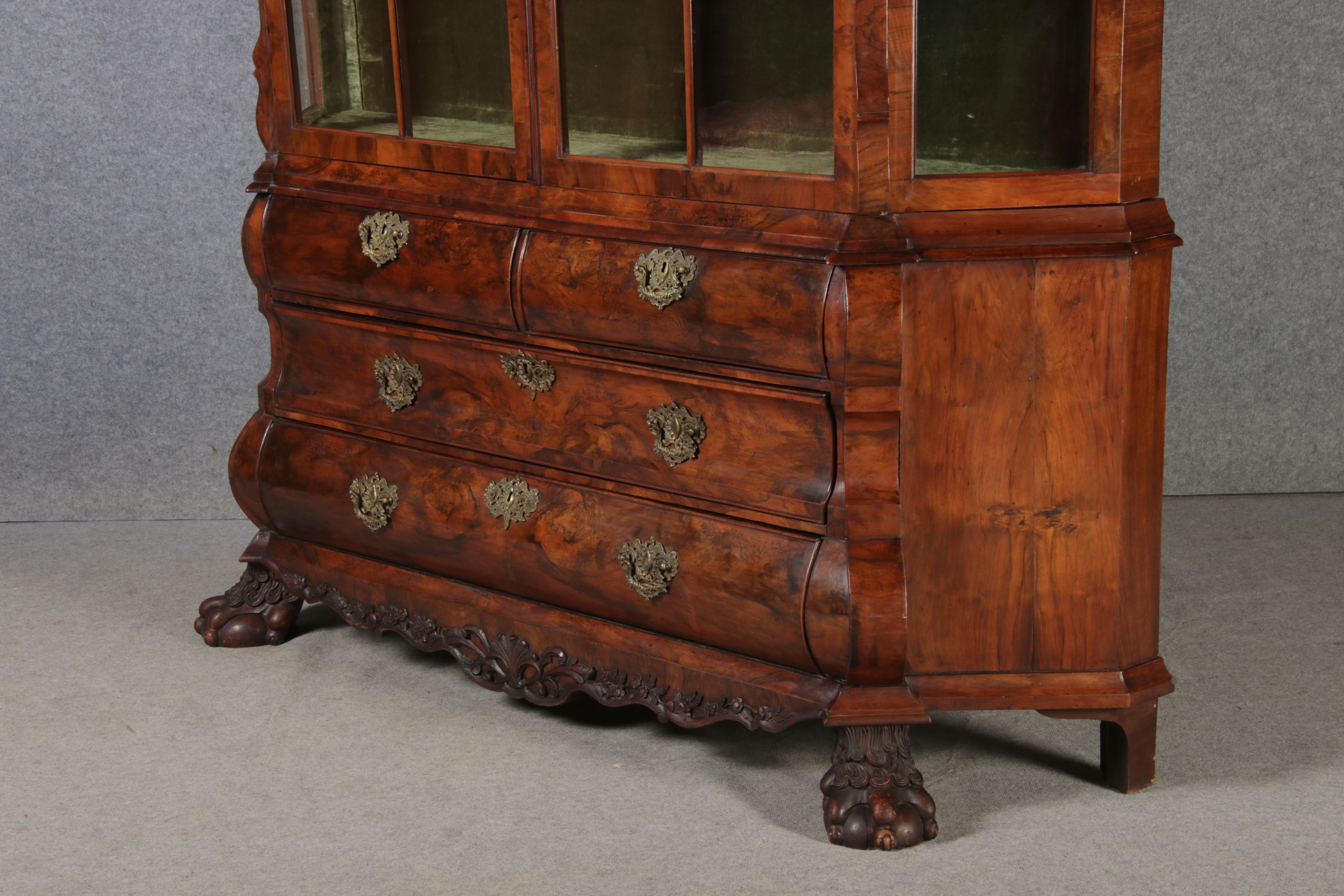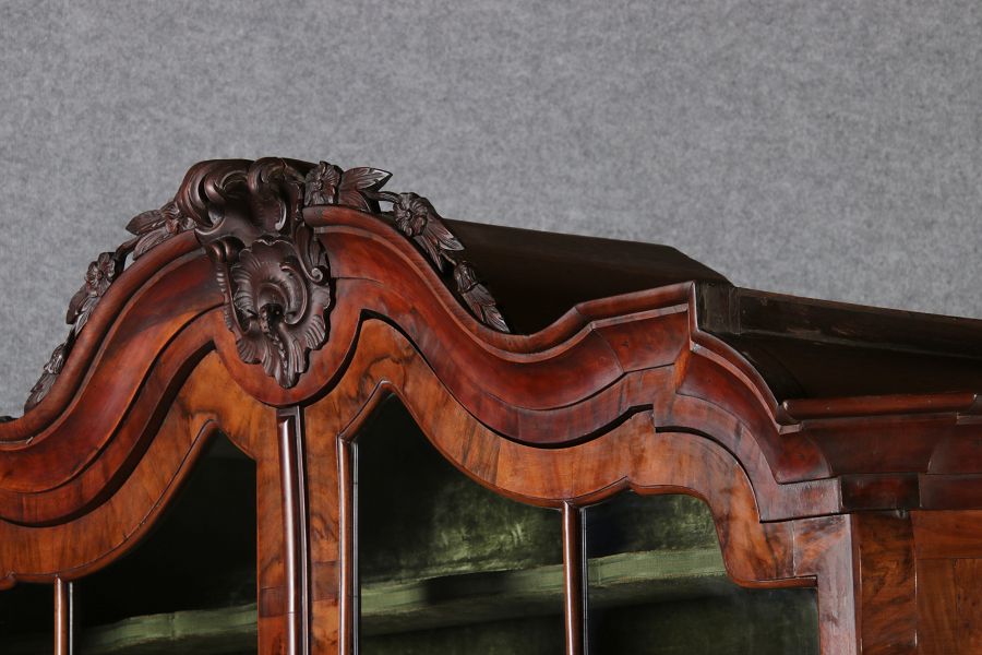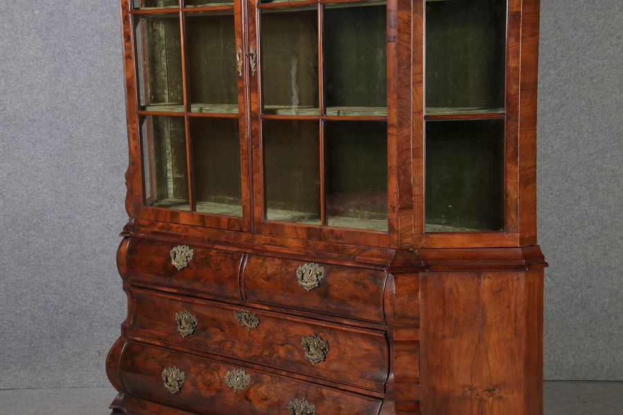 Antike 248 cm Hohe Barock Vitrine Holland 18 Jh. Nussbaum |