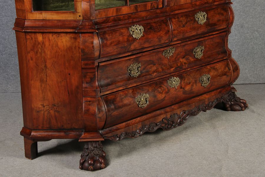 | Antike 248 cm Hohe Barock Vitrine Holland 18 Jh. Nussbaum | ||